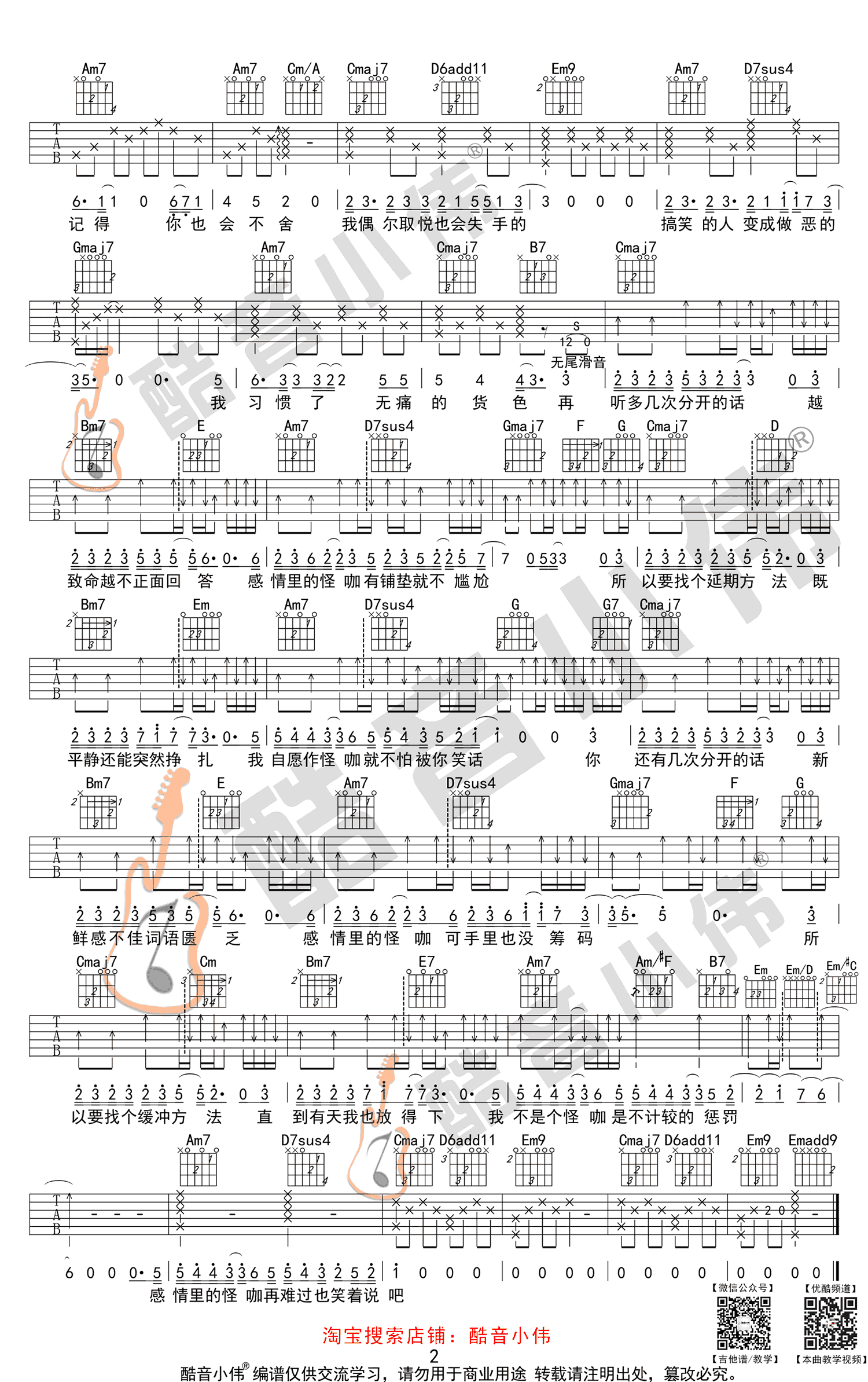 怪咖吉他谱 - 薛之谦 - G调吉他弹唱谱 - 中级版