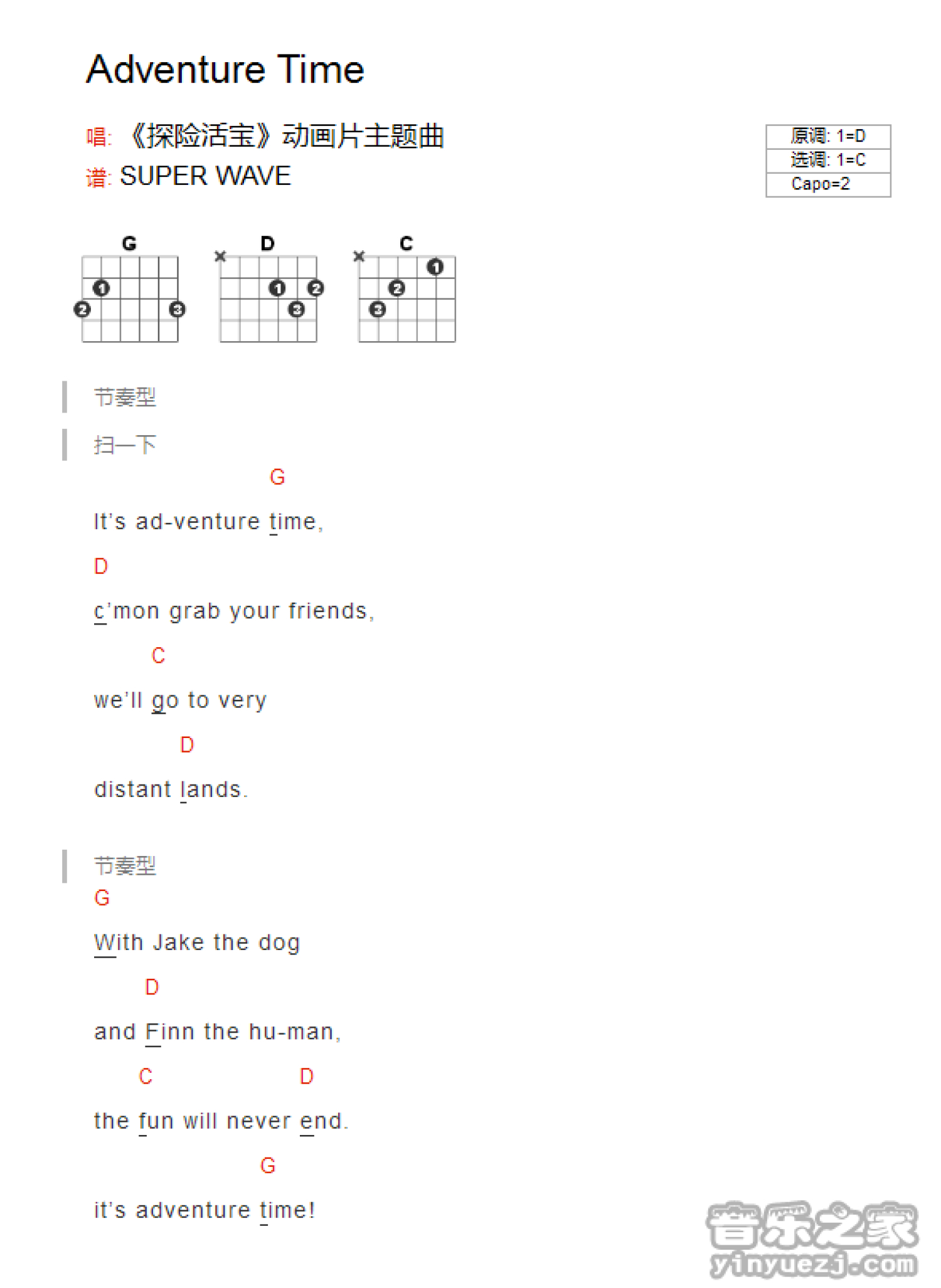 adventure time吉他谱 - 探险活宝主题曲 - C调吉他弹唱谱 - 和弦谱
