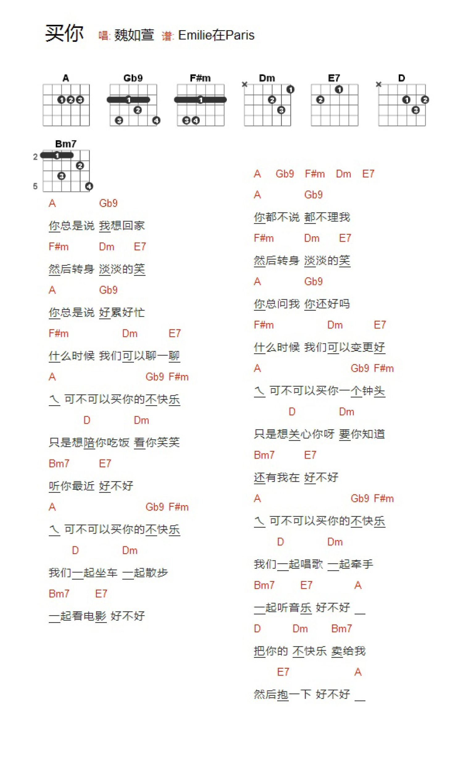 曲谱介绍: 《买你》吉他和弦弹唱谱