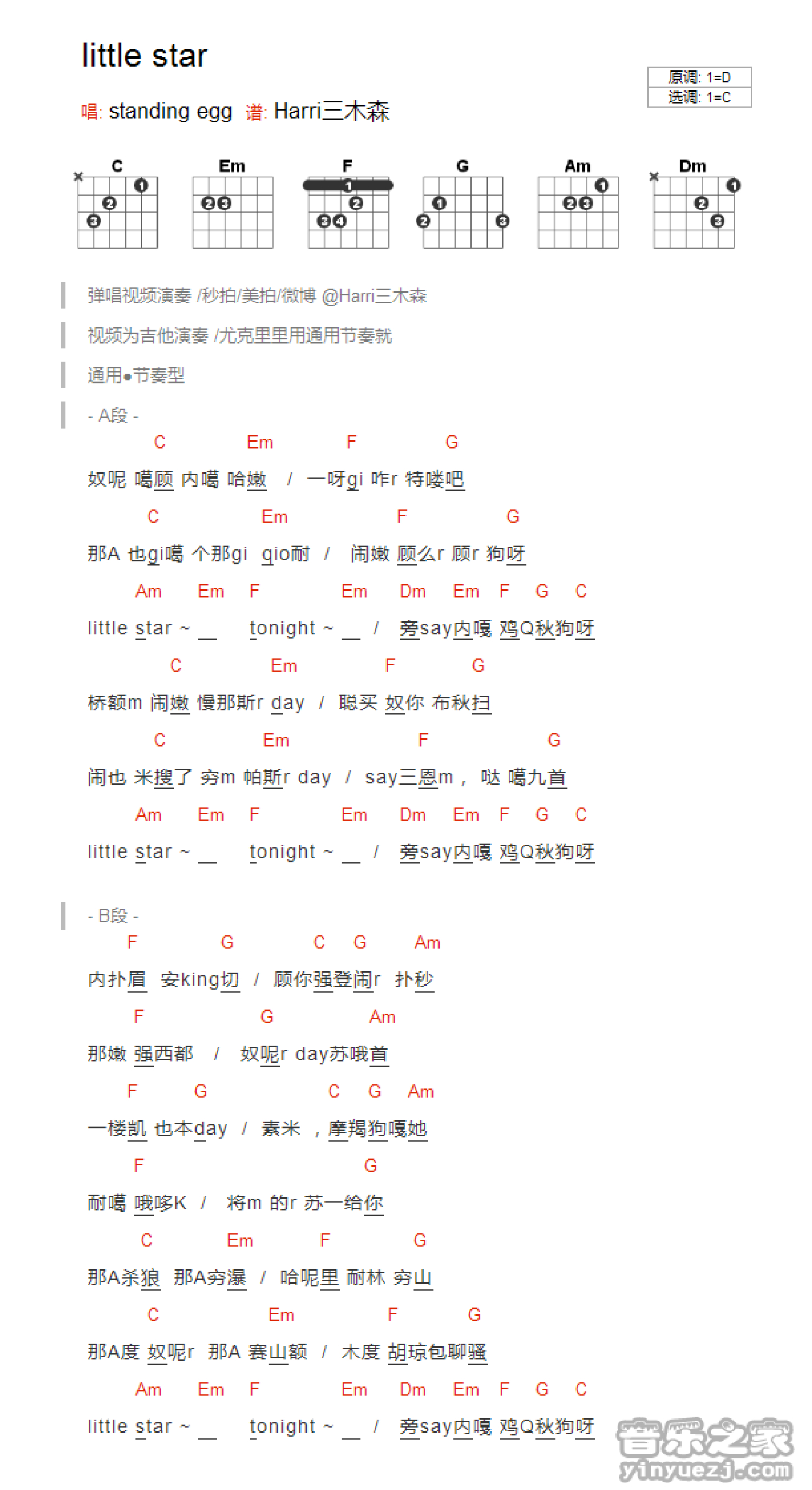 little star吉他谱 - StandingEgg - C调吉他弹唱谱 - 和弦谱