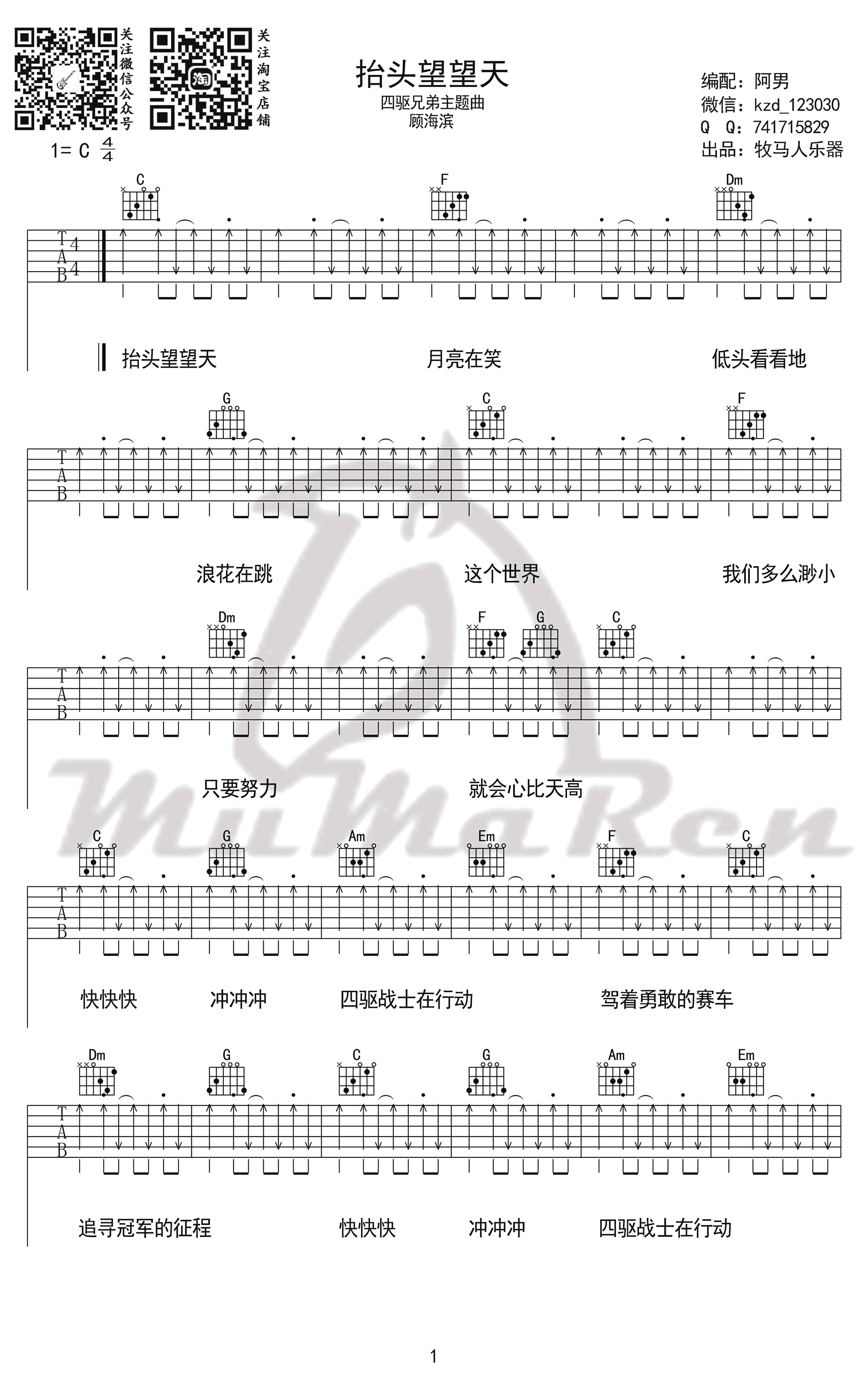 吉他弹唱C调来源:牧马人乐器--阿男787 浏览2018-09-12 11:10发布图谱共2页