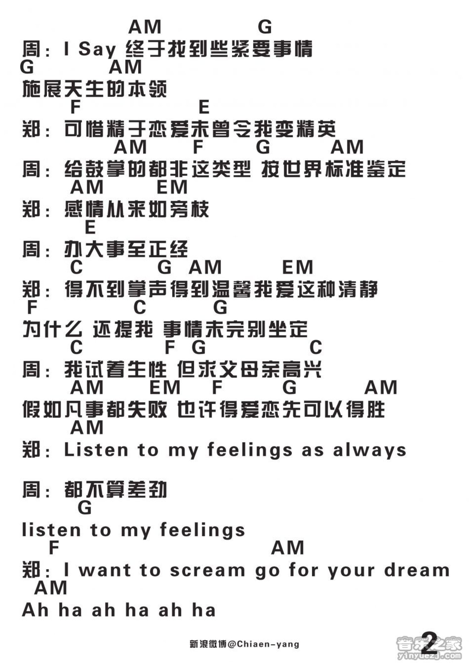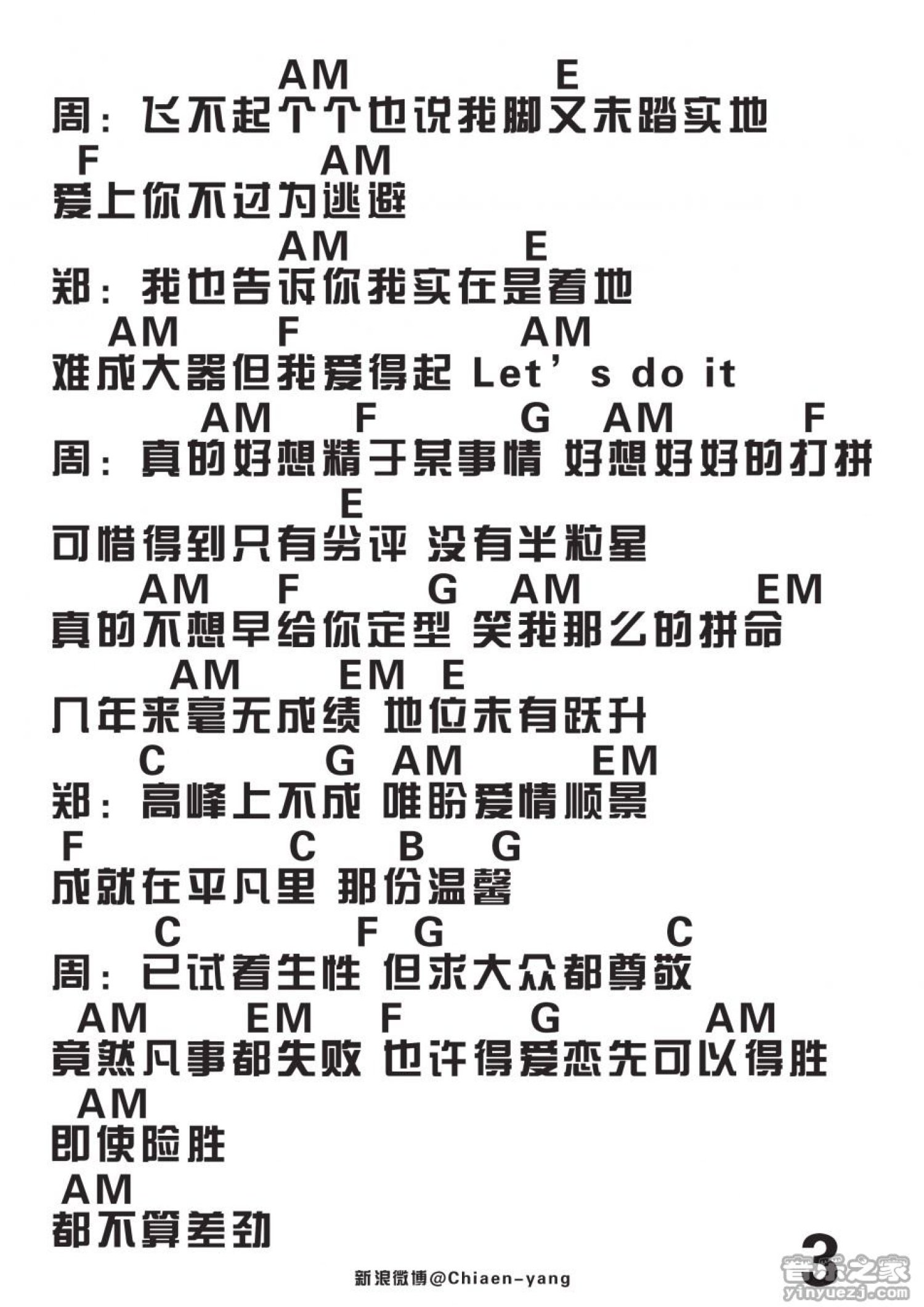 曲谱介绍: 郑融/周柏豪《一事无成》吉他和弦弹唱谱