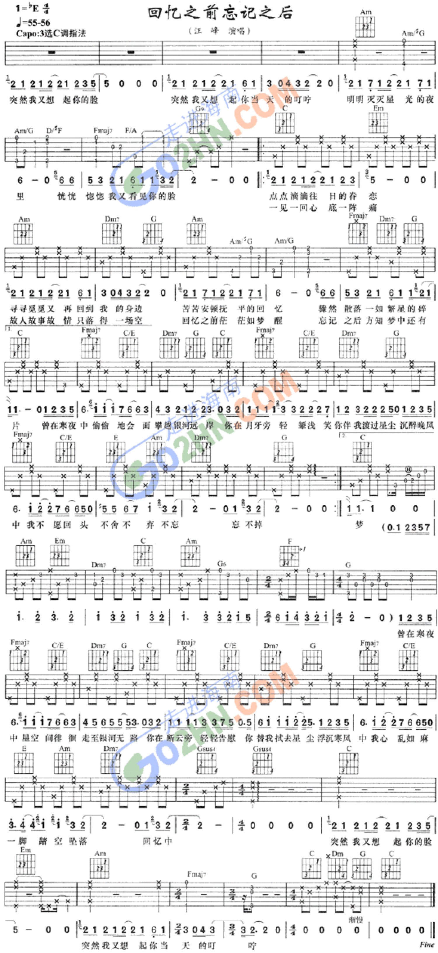 曲谱介绍: C调简单版汪峰《回忆之前忘记之后》吉他弹唱谱