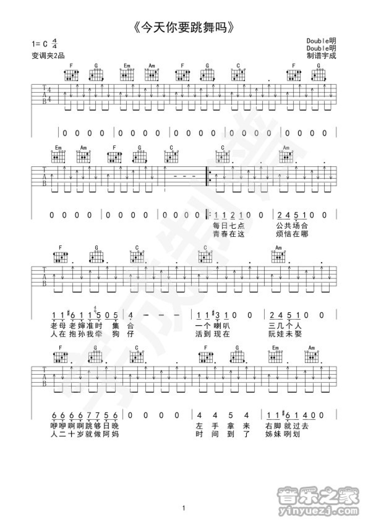 今天你要跳舞吗吉他谱 - Double明 - C调吉他弹唱谱