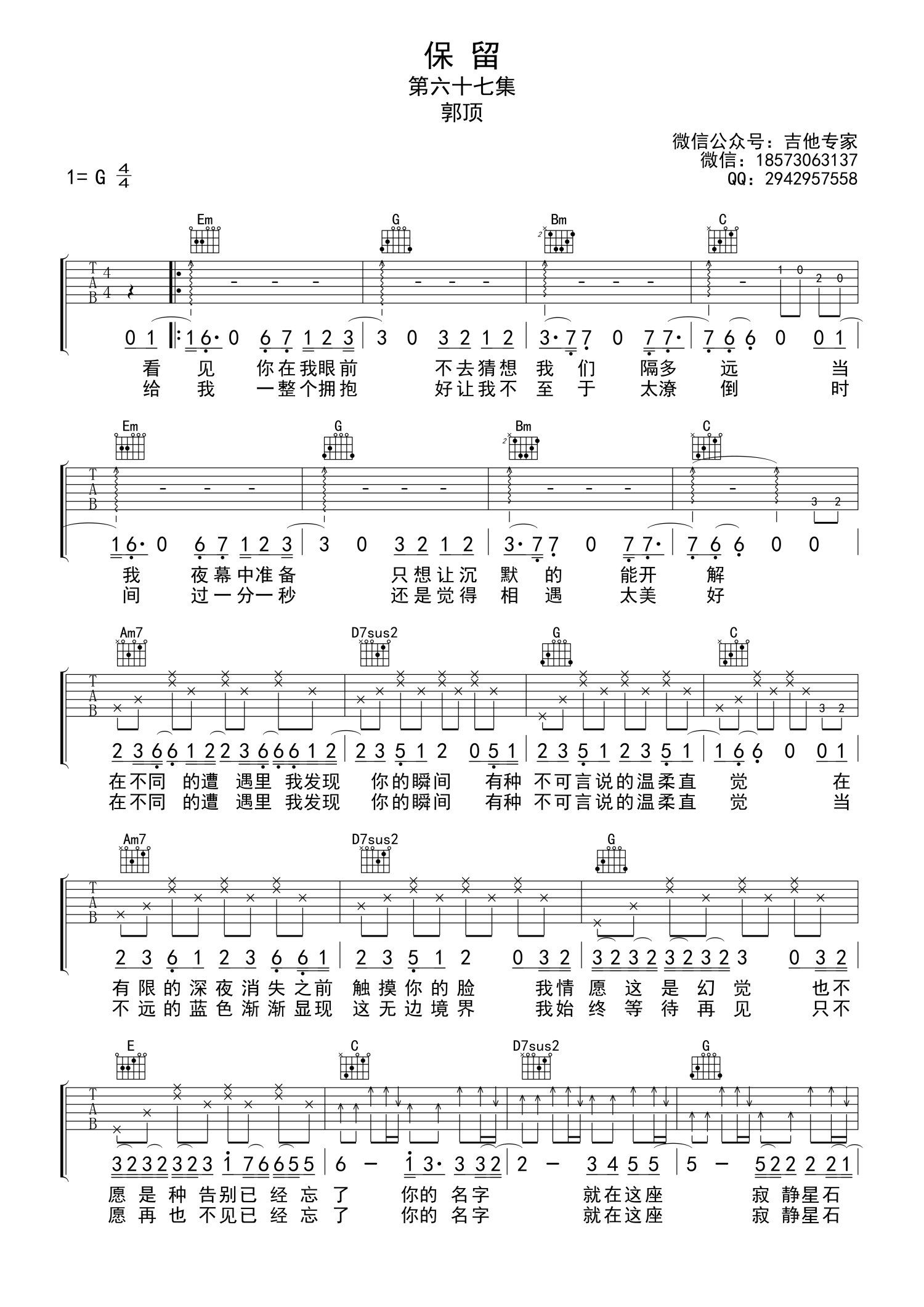 • 保留吉他谱 - 郭顶 - G调吉他弹唱谱第1张