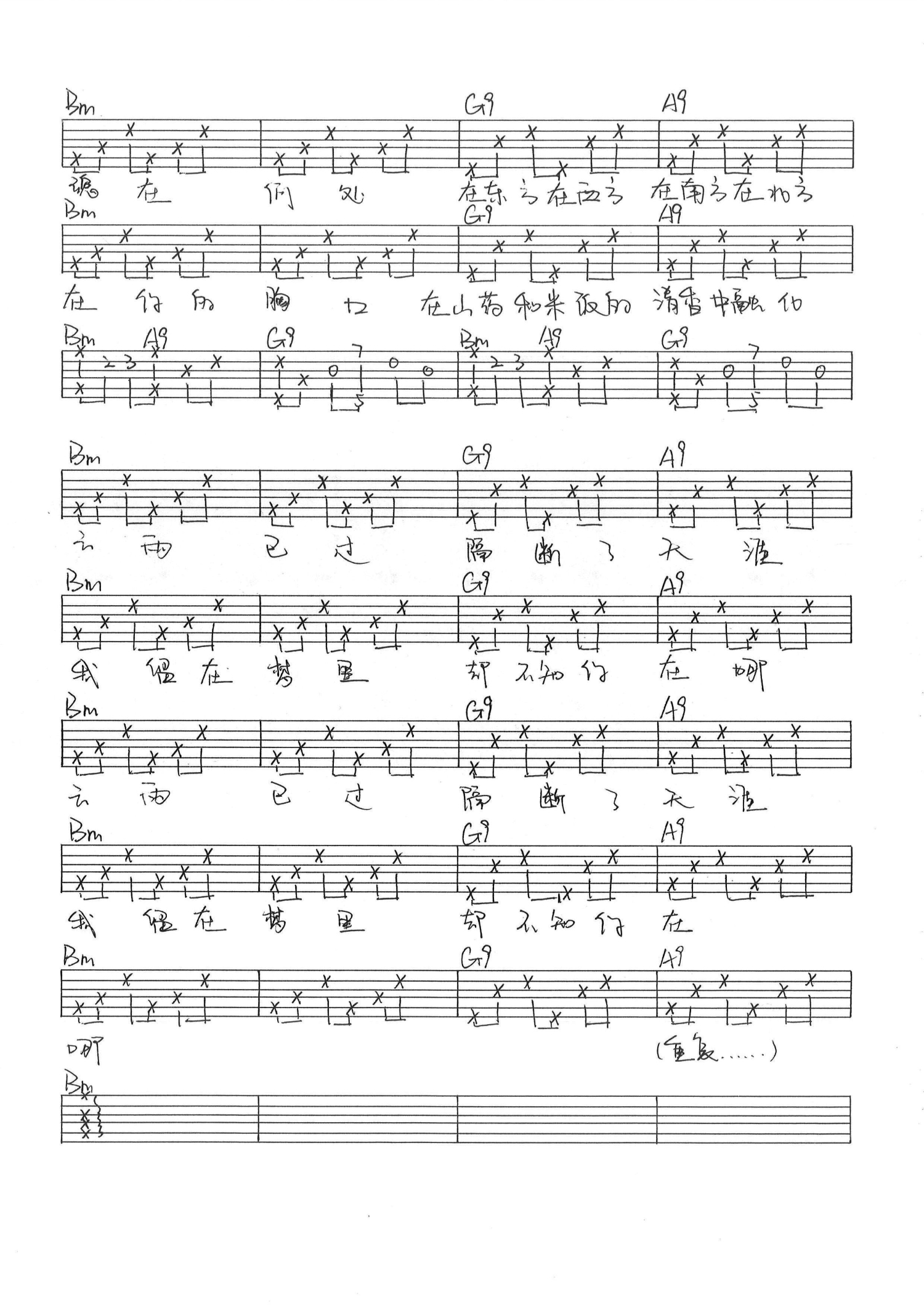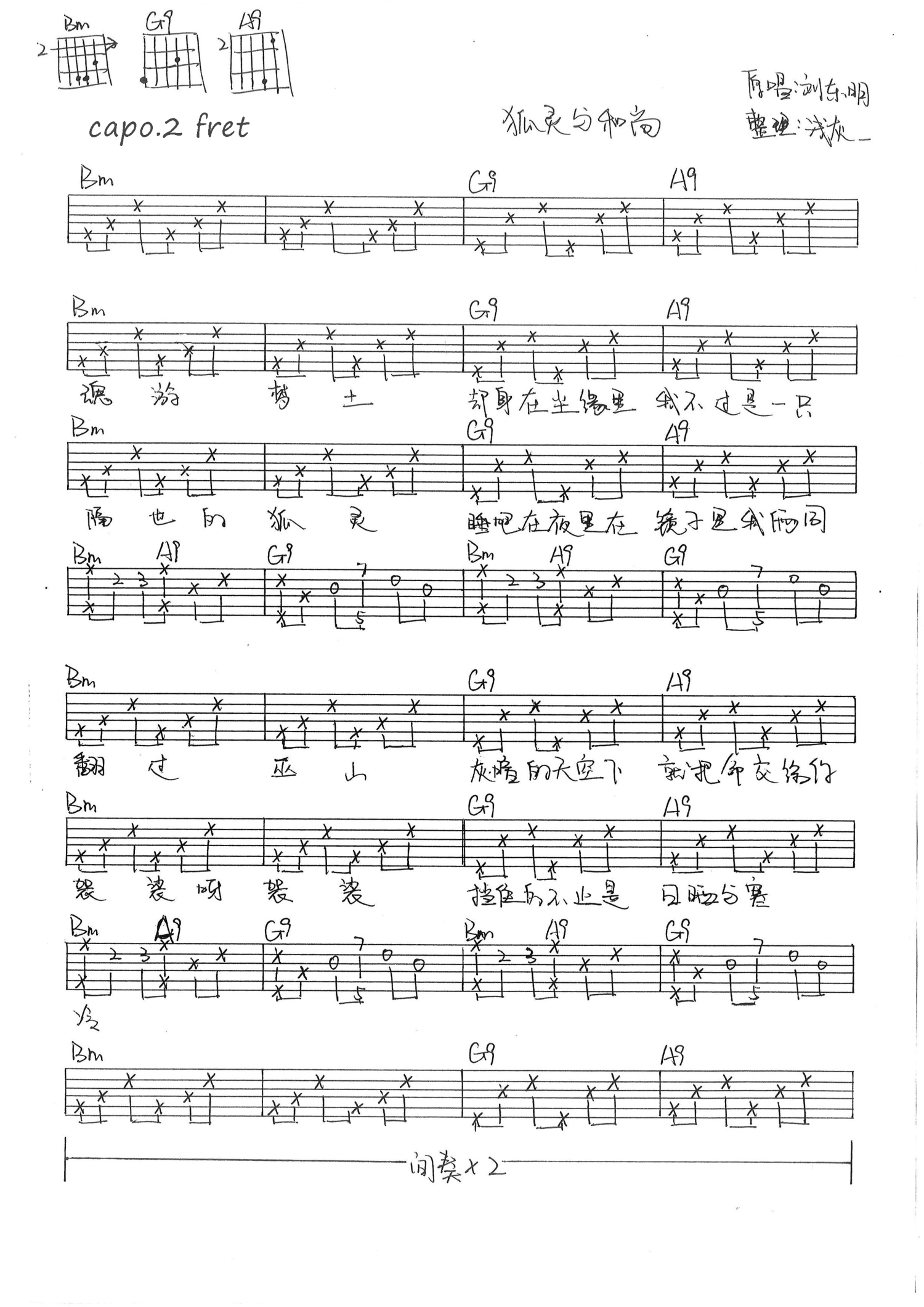 狐灵与和尚吉他谱 - 吉他弹唱谱 - 手写版