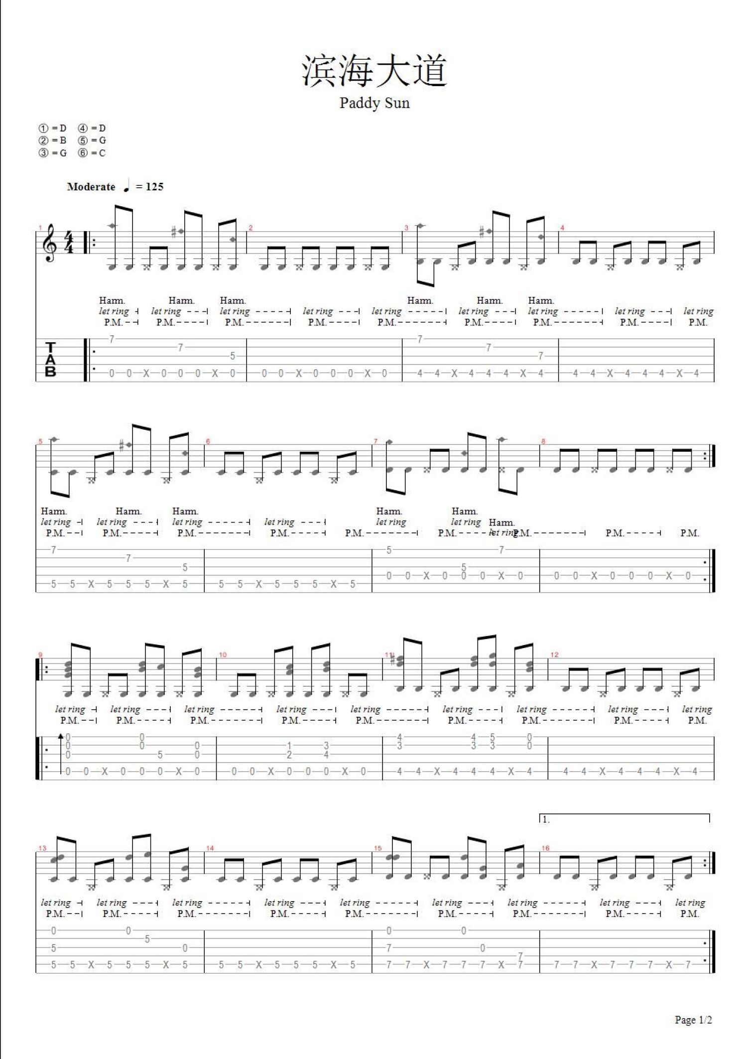 滨海大道吉他谱 - 孙培博 - 吉他独奏谱