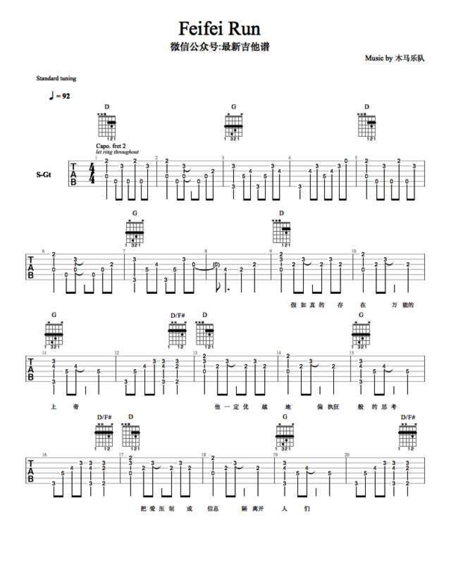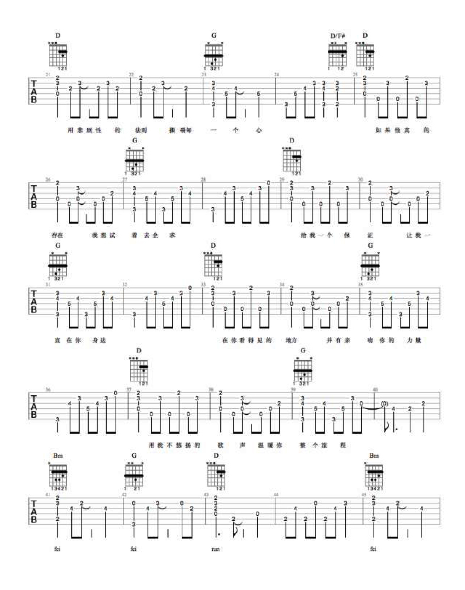 曲谱介绍: 最新版《FeifeiRun》吉他弹唱六线谱