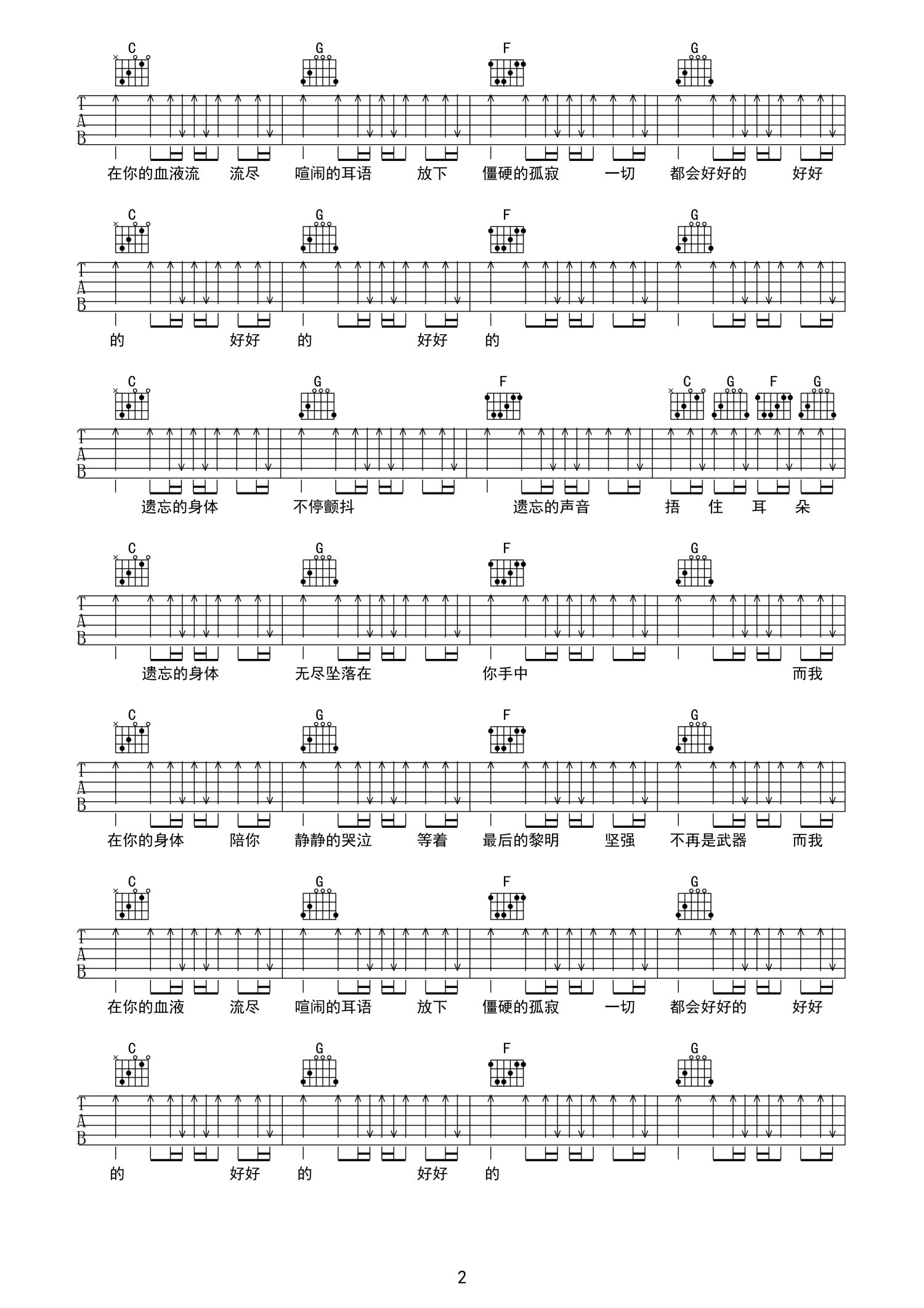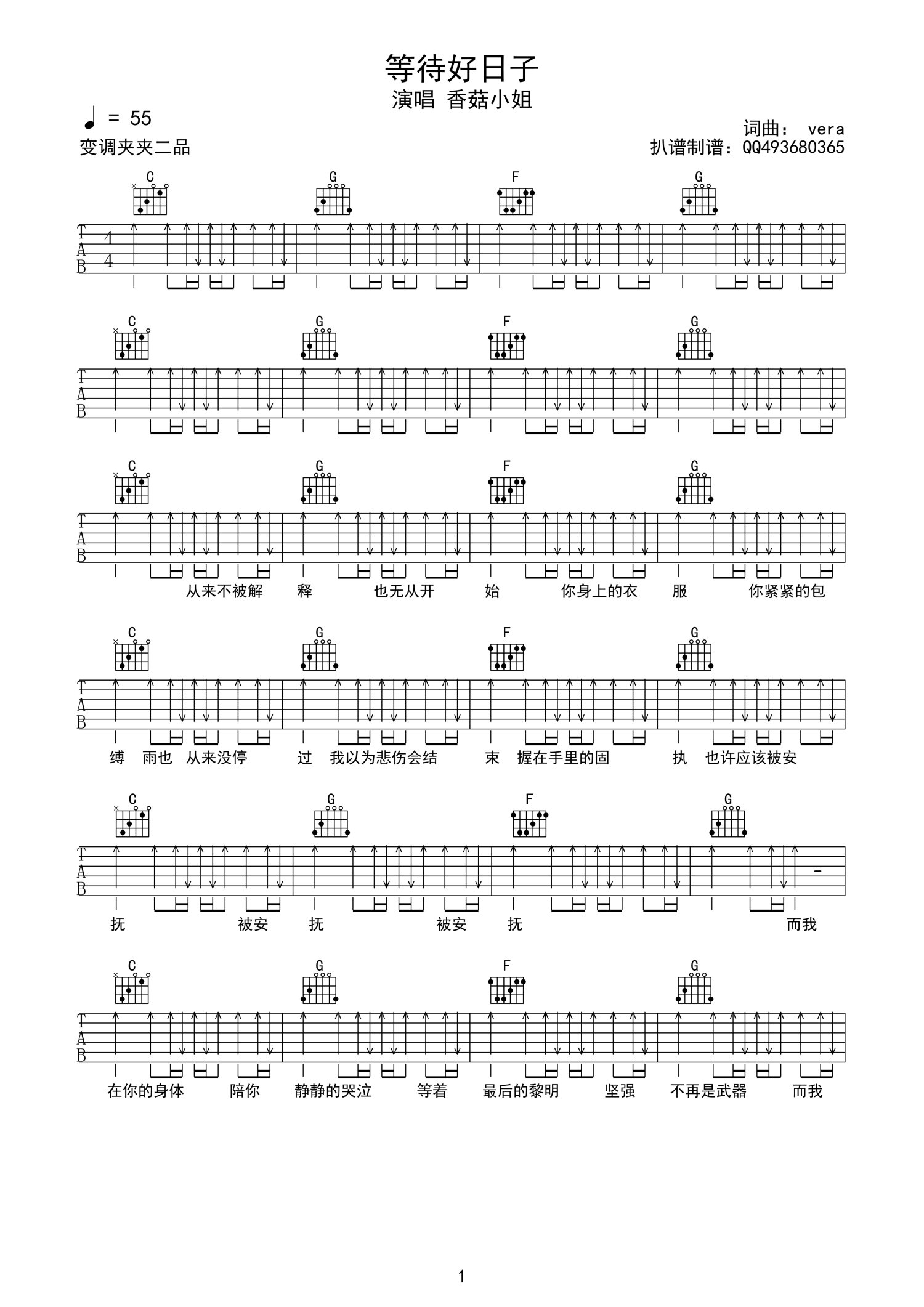 曲谱介绍: C调简单原版《等待好日子》吉他弹唱六线谱