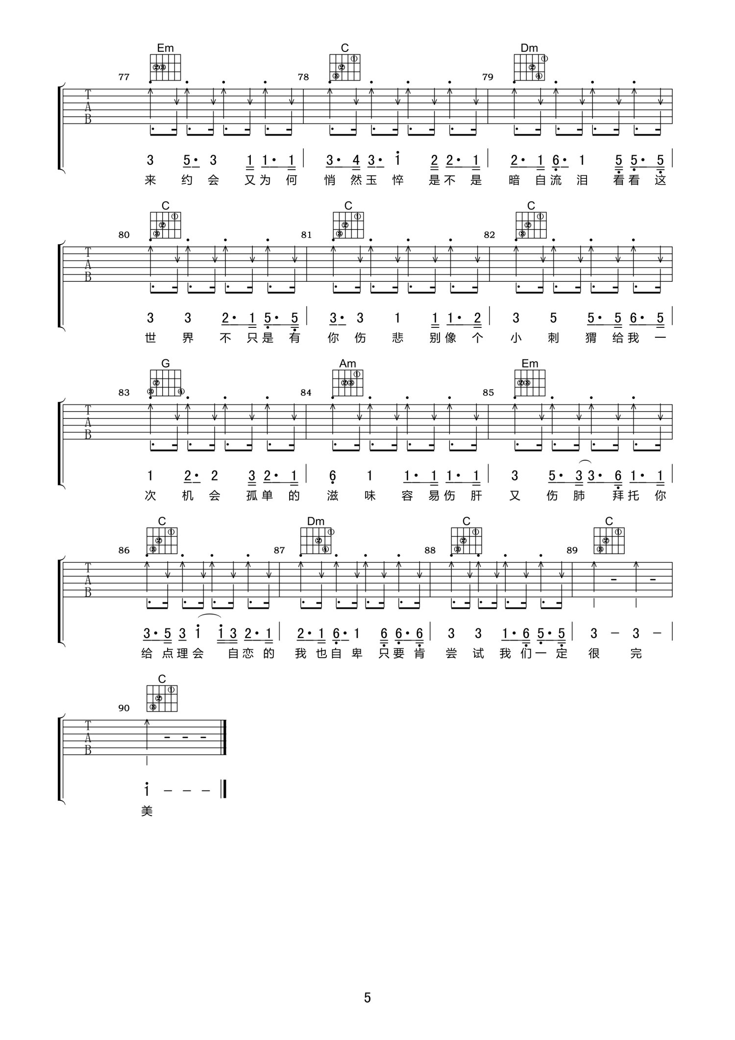 吉他弹唱C调来源:小叶歌469 浏览2021-01-15 16:37发布图谱共5页