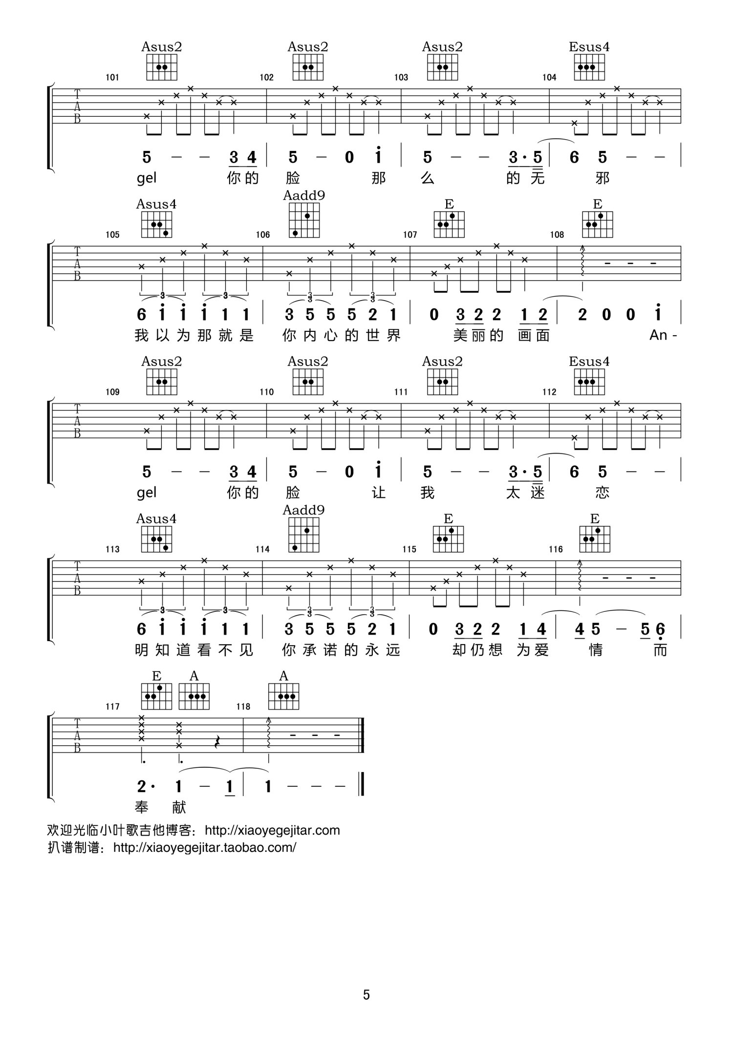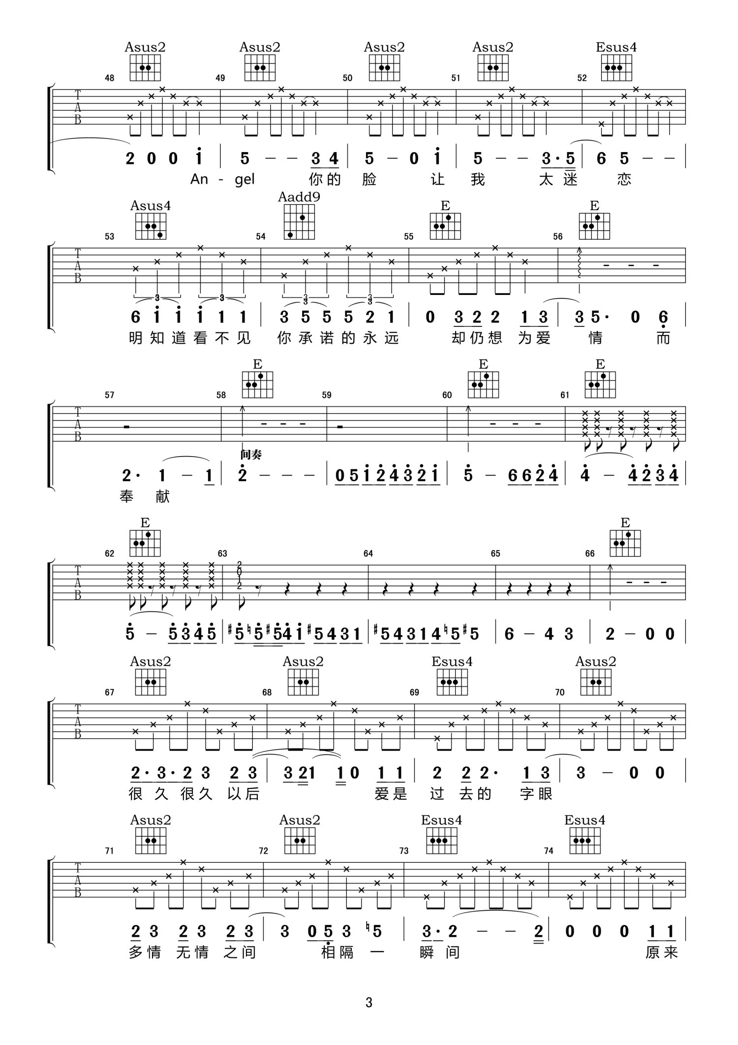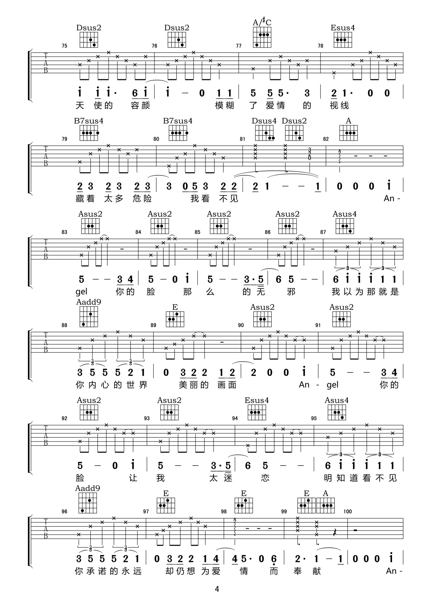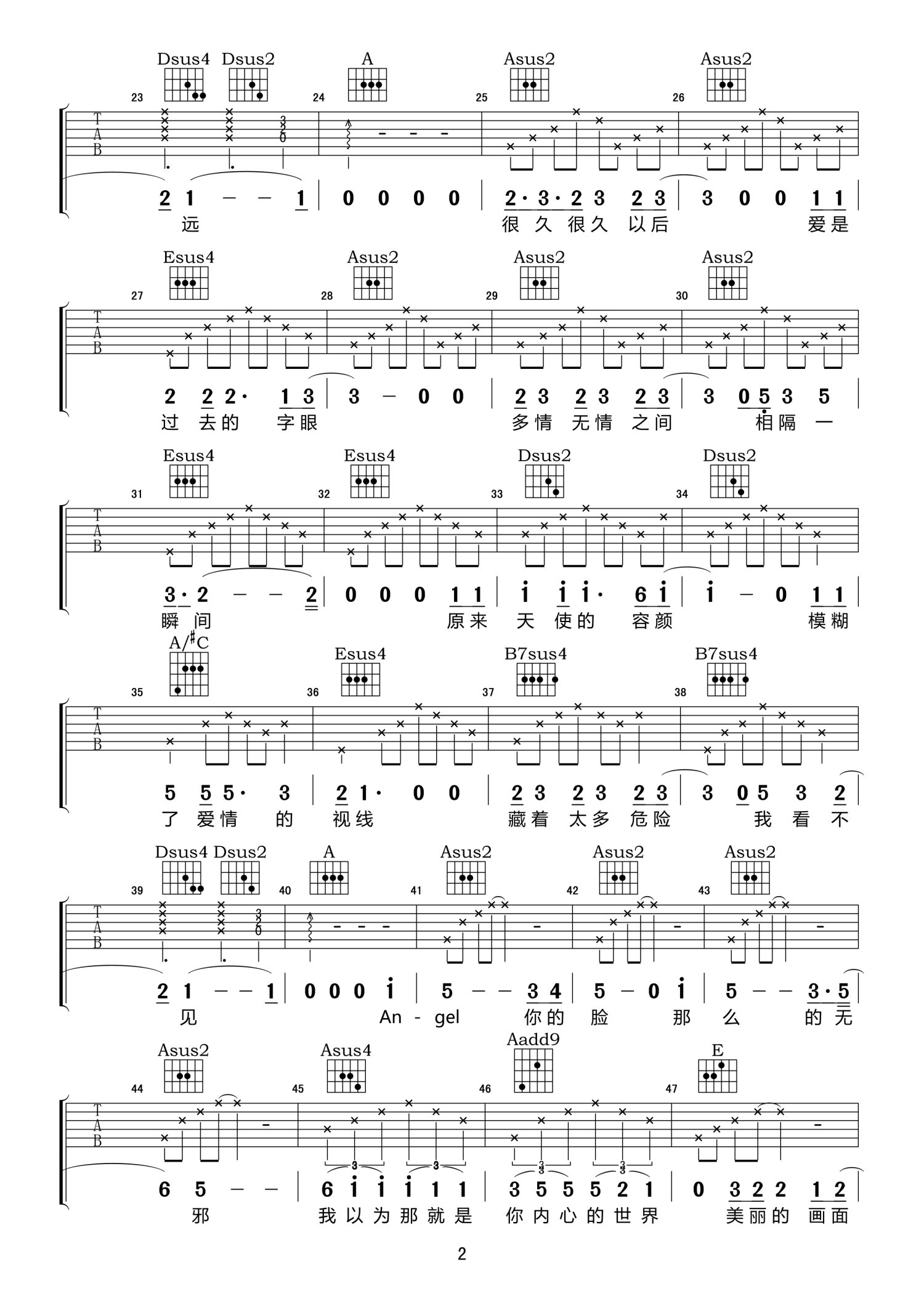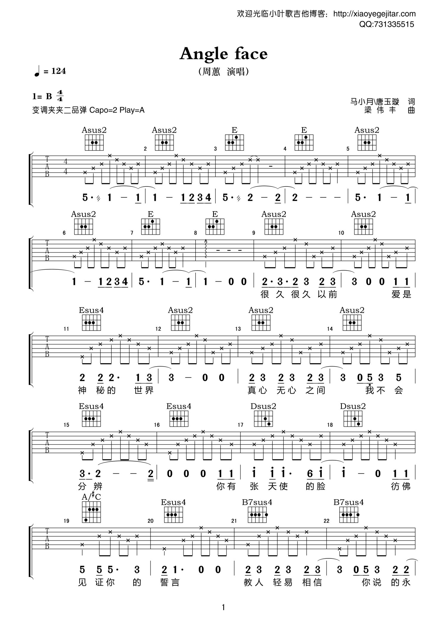 曲谱介绍: A调版《AngelFace》吉他弹唱六线谱
