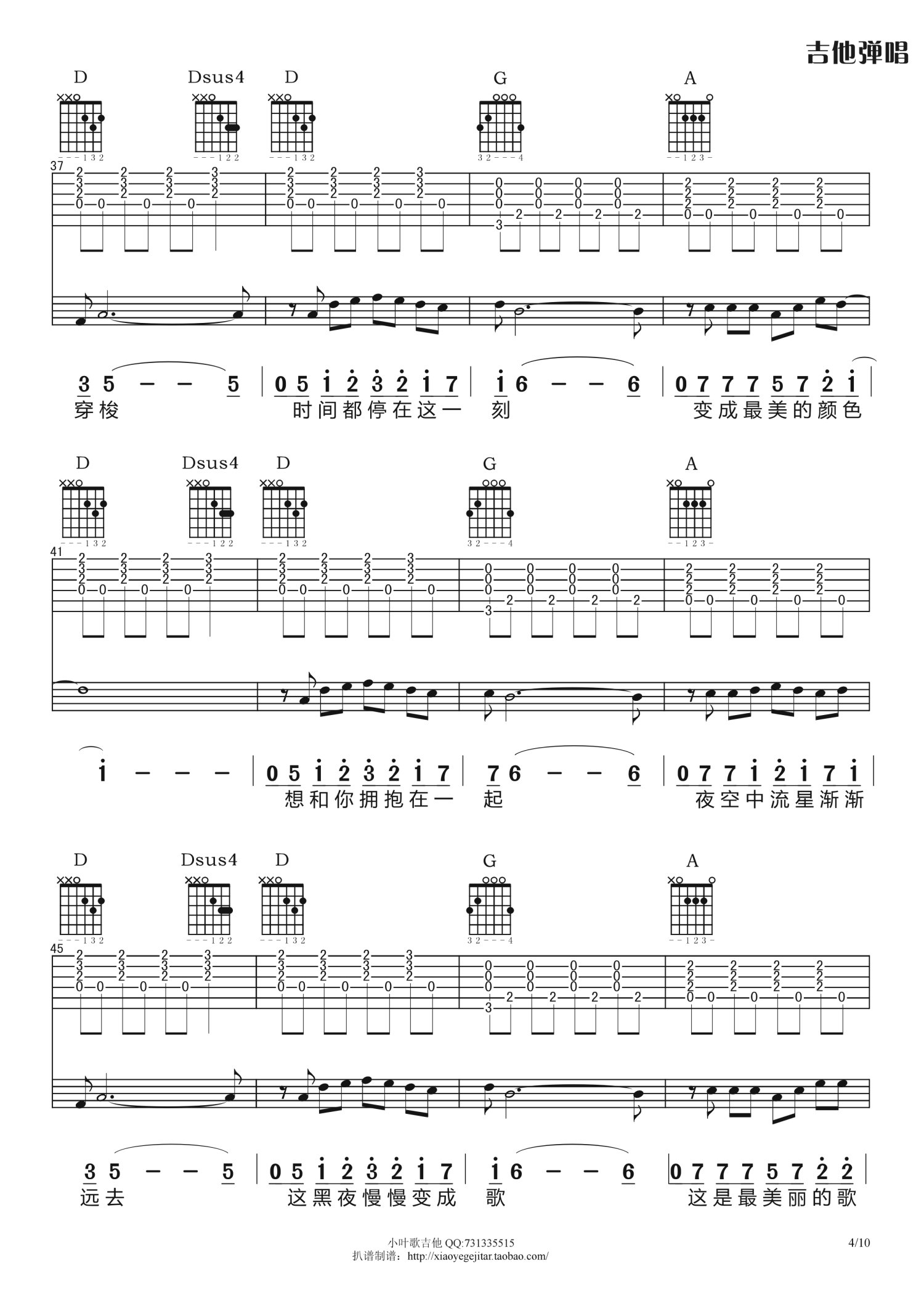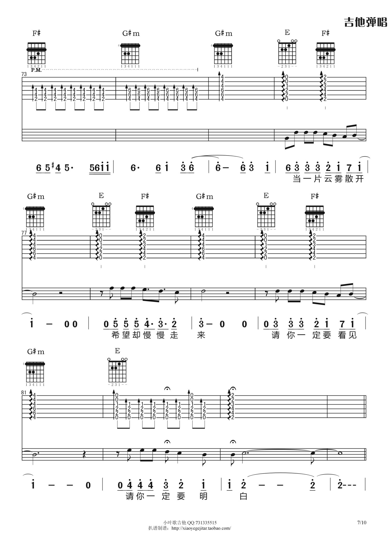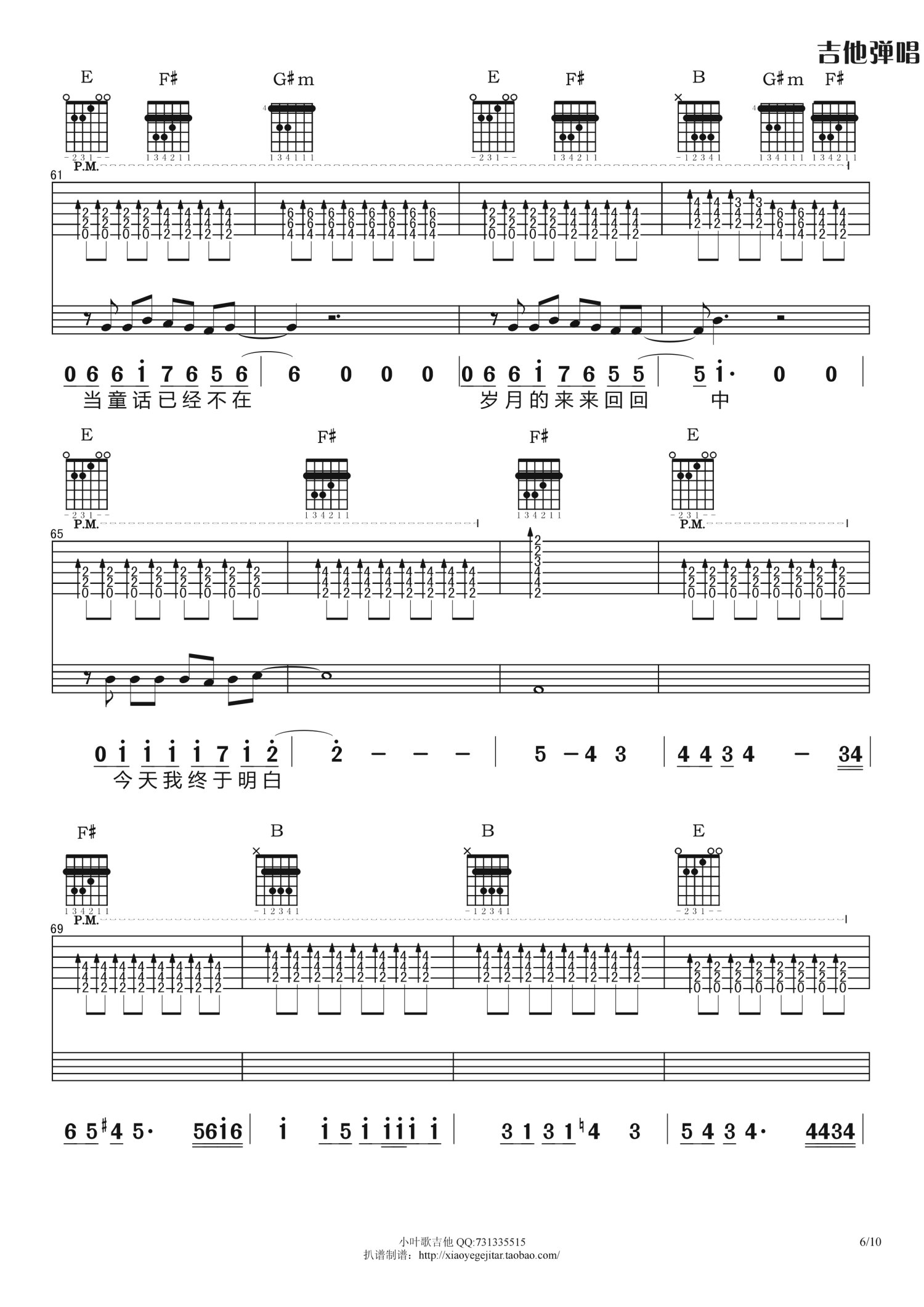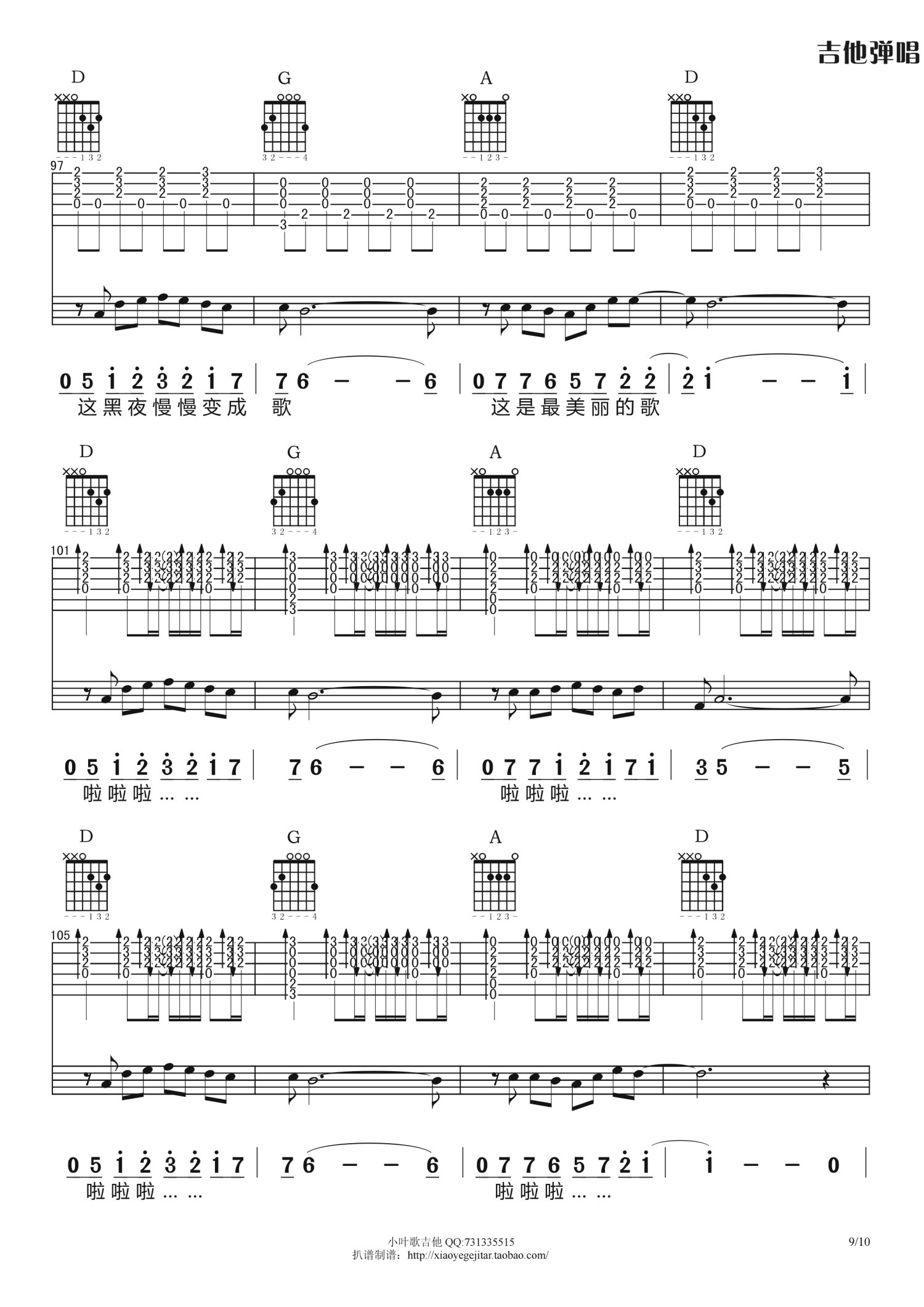 曲谱介绍: B调版《夜已如歌》吉他弹唱六线谱