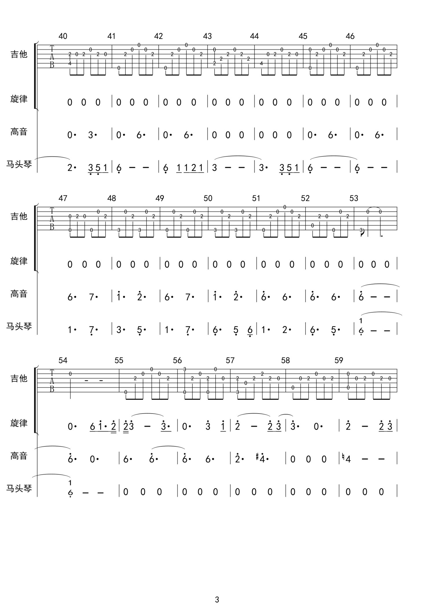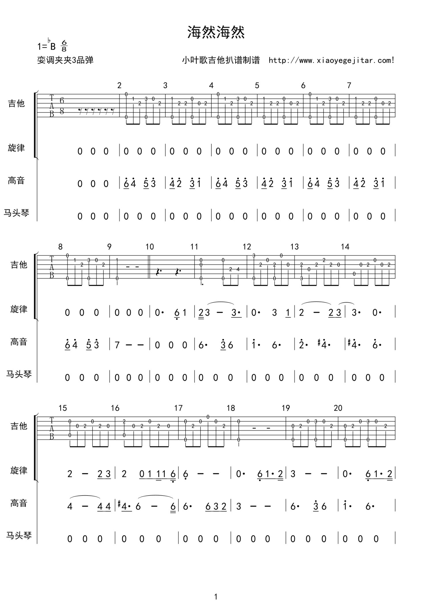 曲谱介绍: bB调版《海然海然》吉他弹唱六线谱