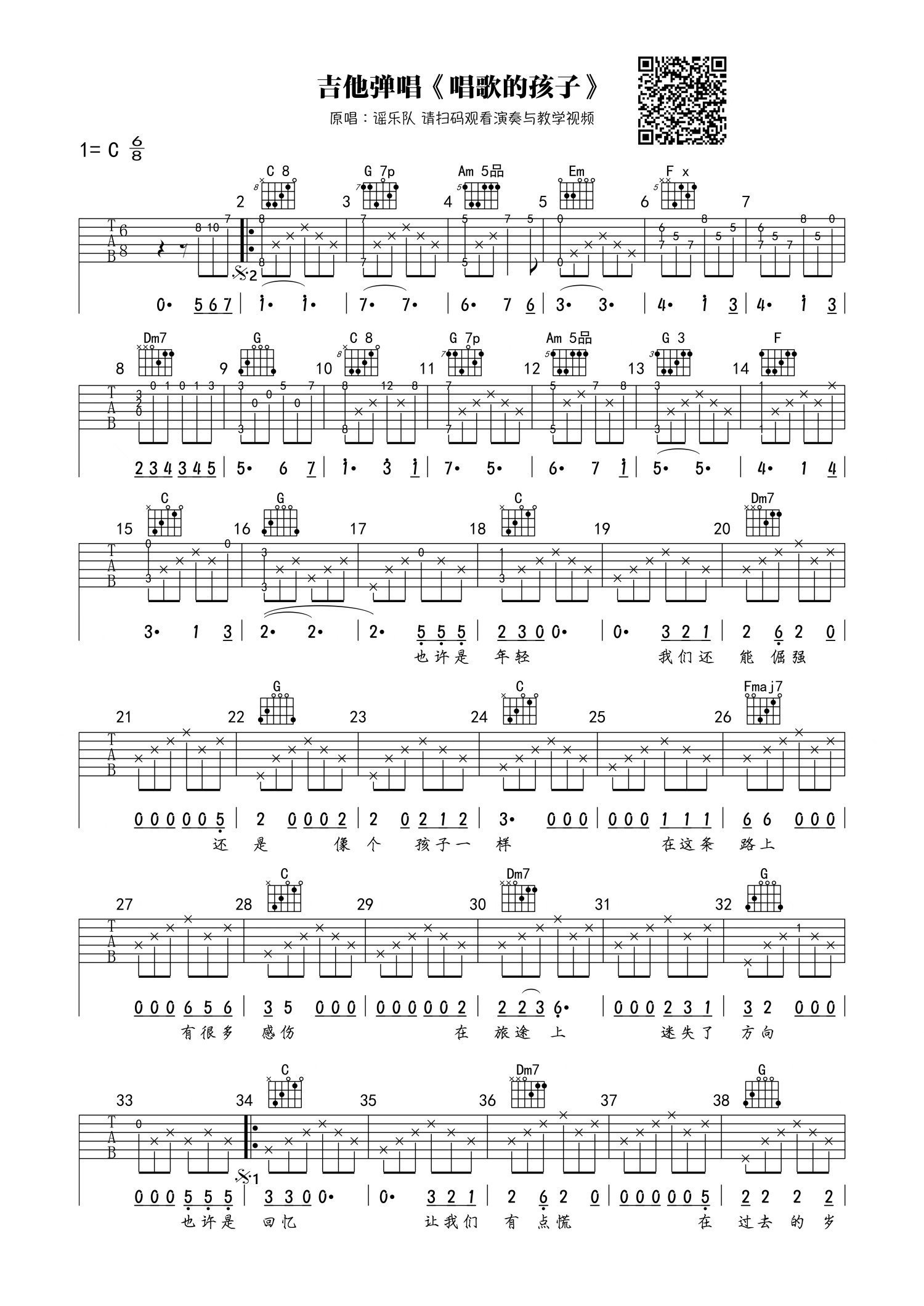 • 唱歌的孩子吉他谱 - 谣乐队 - C调吉他弹唱谱第1张