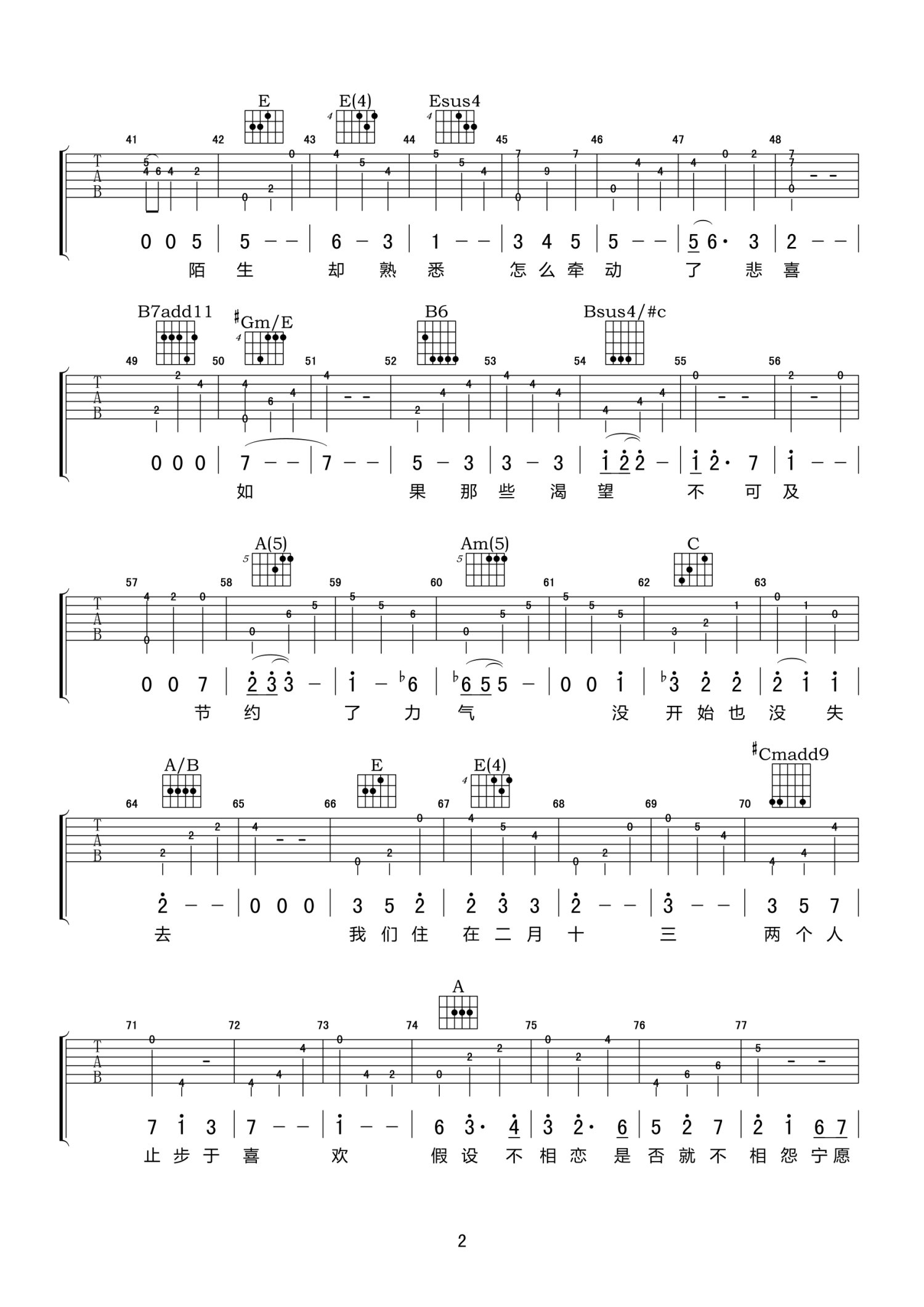 吉他弹唱E调来源:小叶歌787 浏览2021-01-15 16:28发布图谱共5页