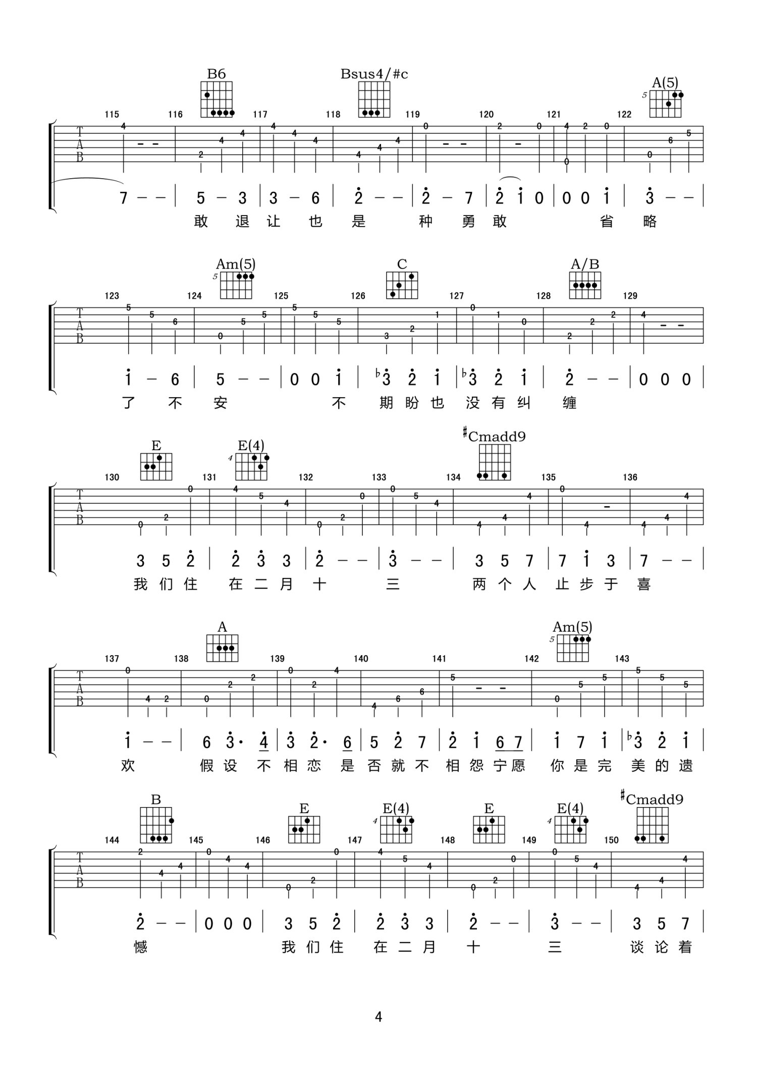 曲谱介绍: E调版《13》吉他弹唱六线谱
