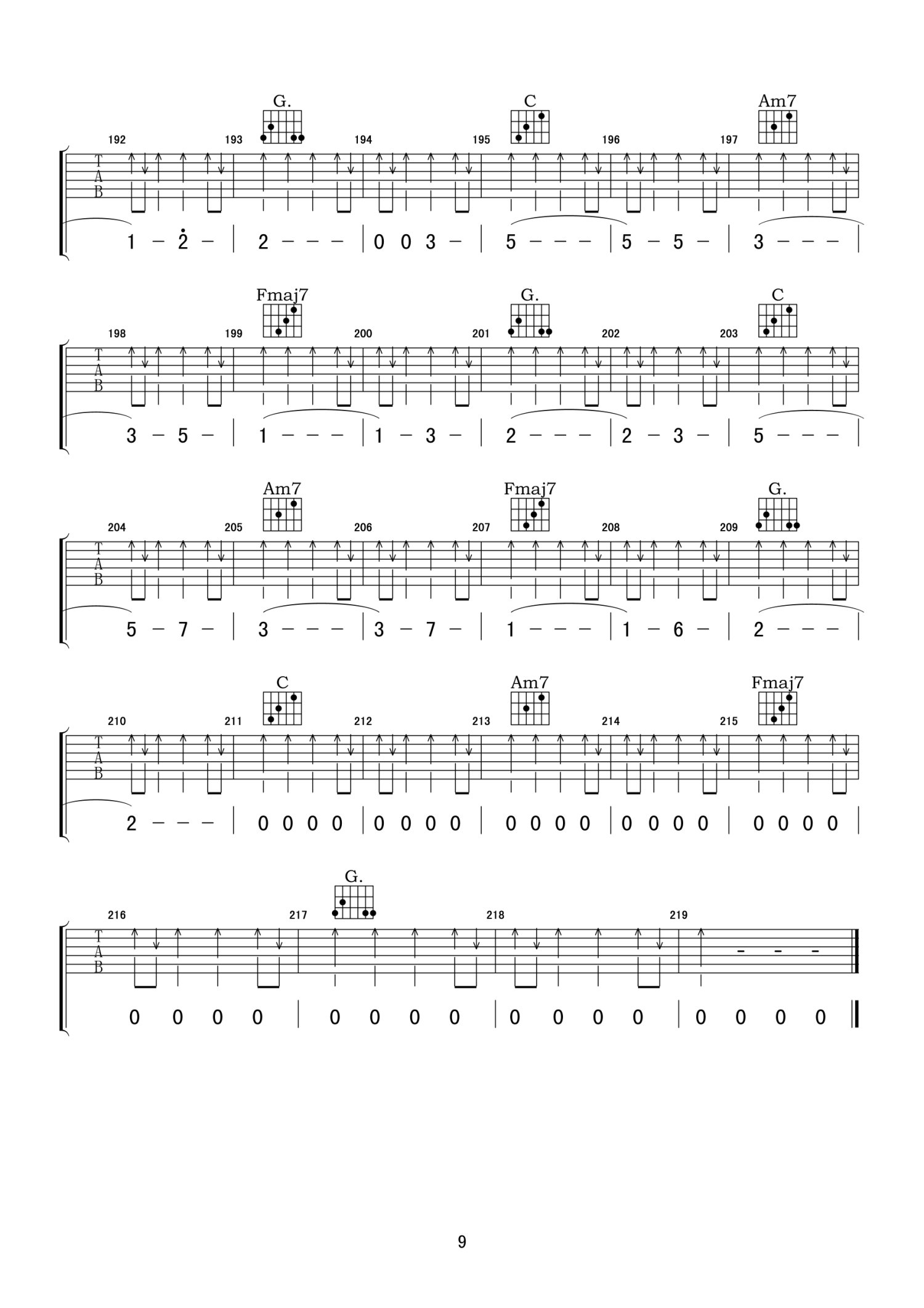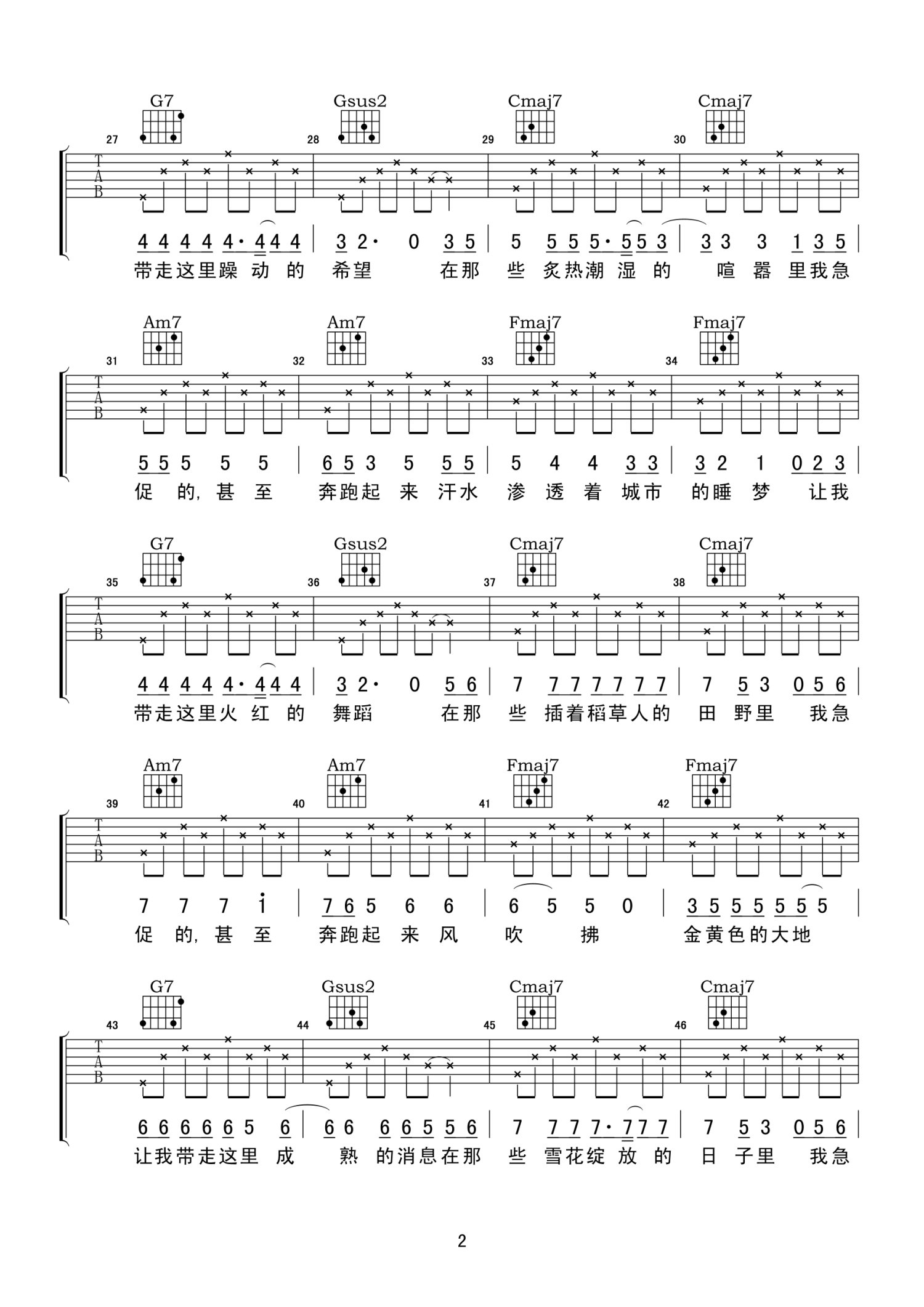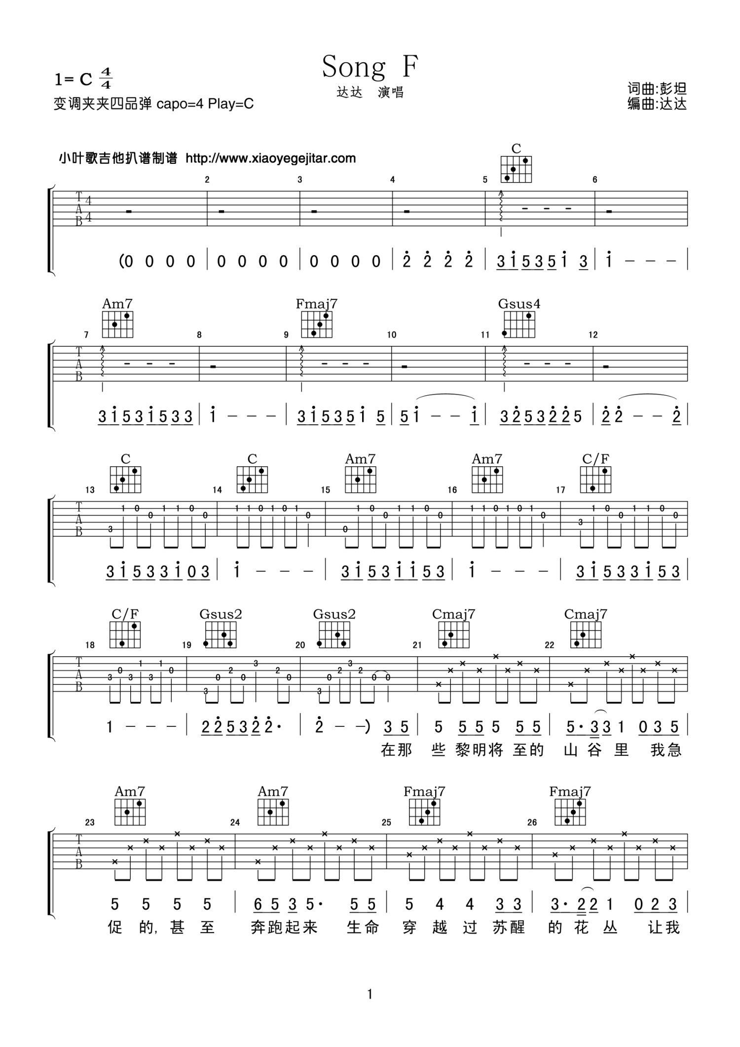 曲谱介绍: C调版《SongF》吉他弹唱六线谱