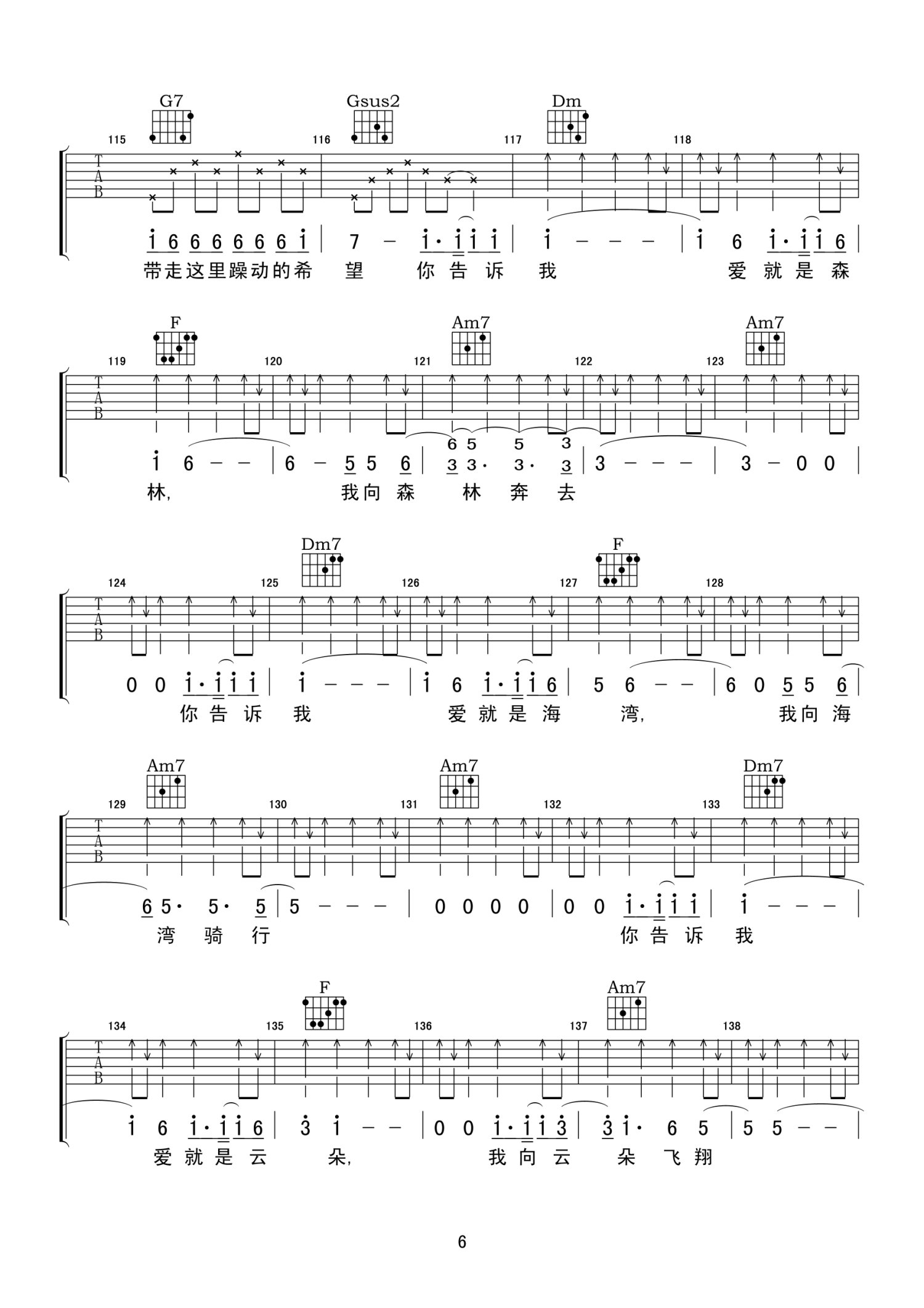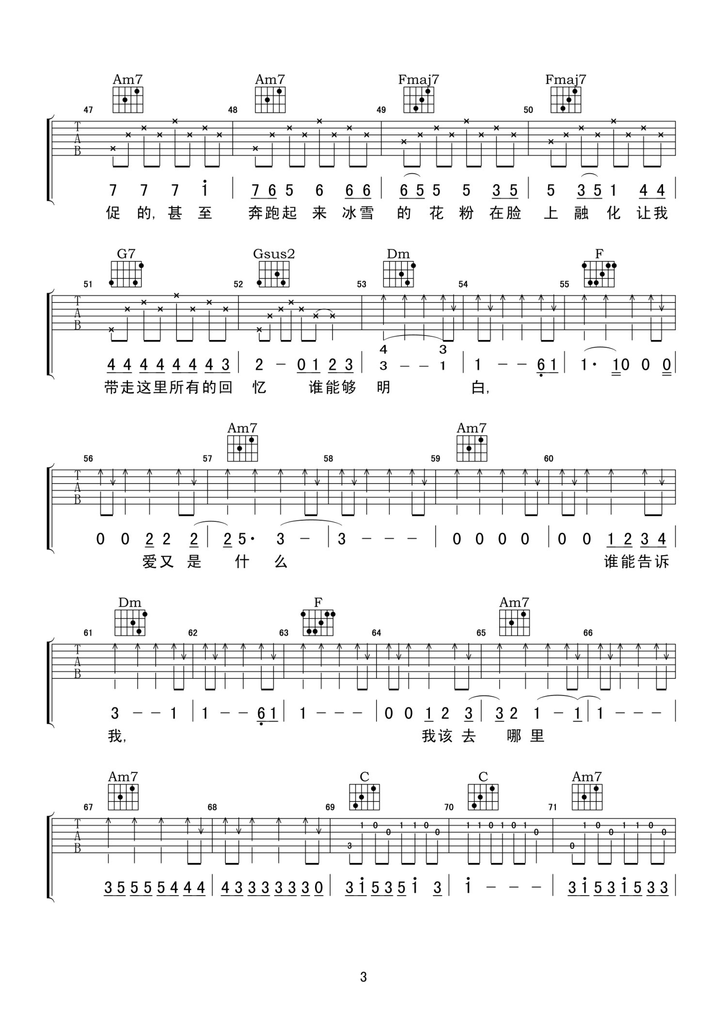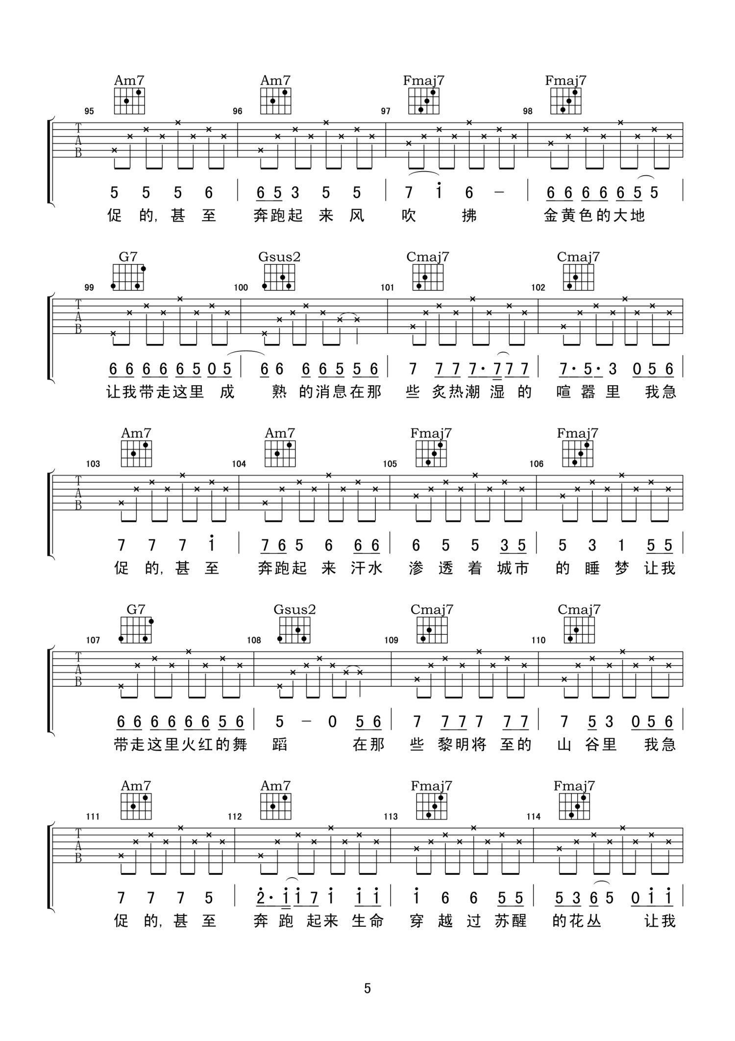 曲谱介绍: C调版《SongF》吉他弹唱六线谱