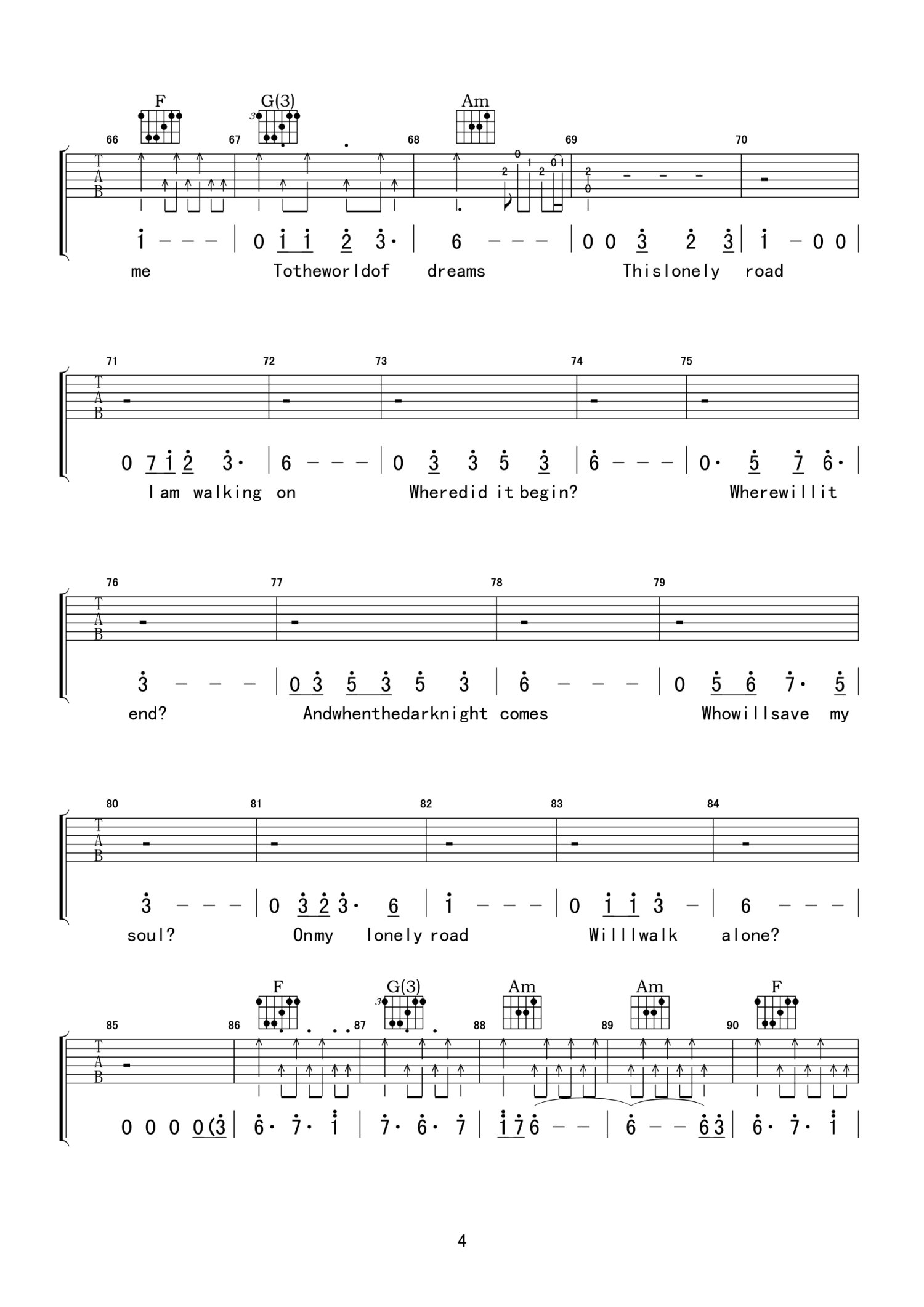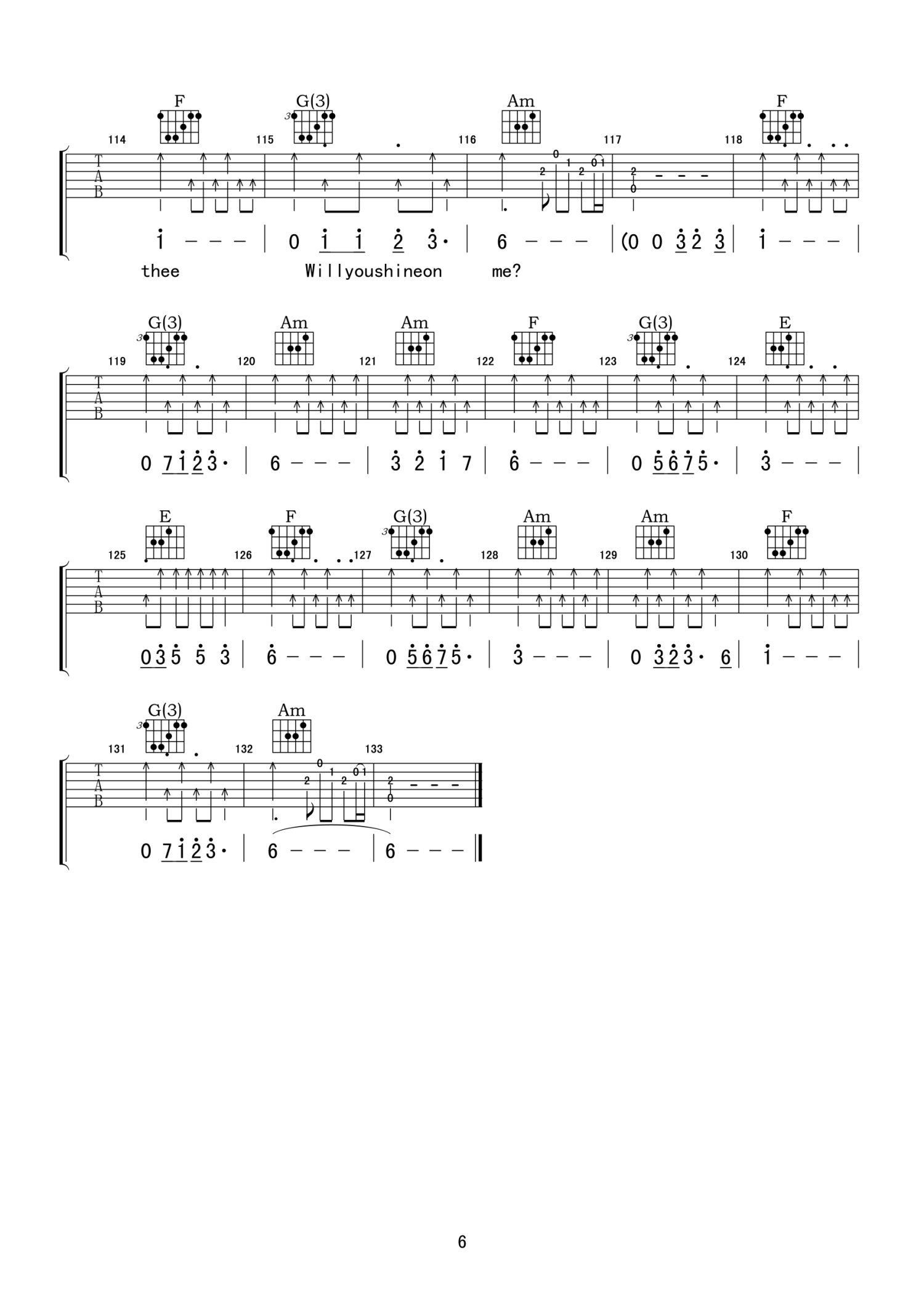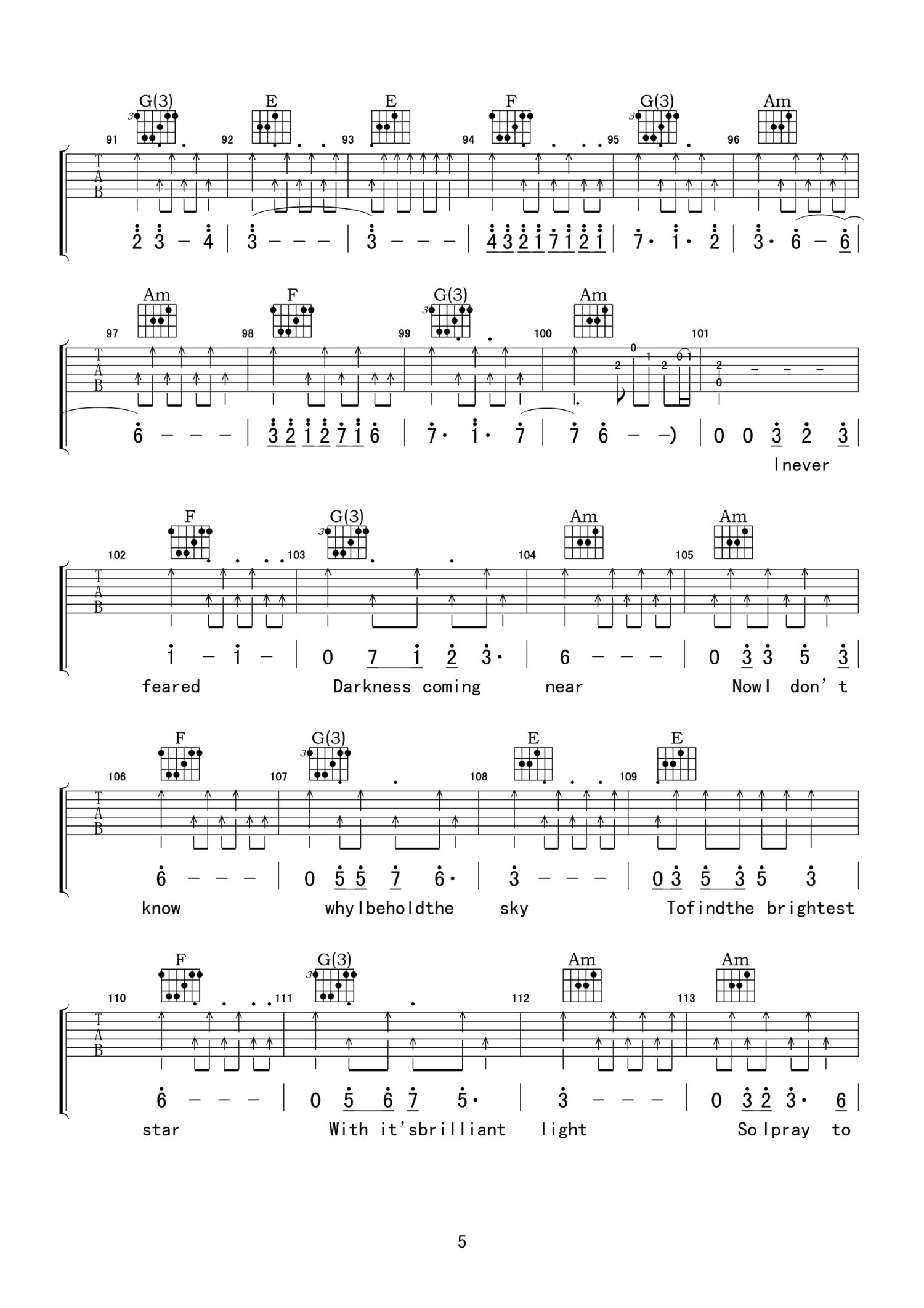 曲谱介绍: C调版《NightPrayer》吉他弹唱六线谱