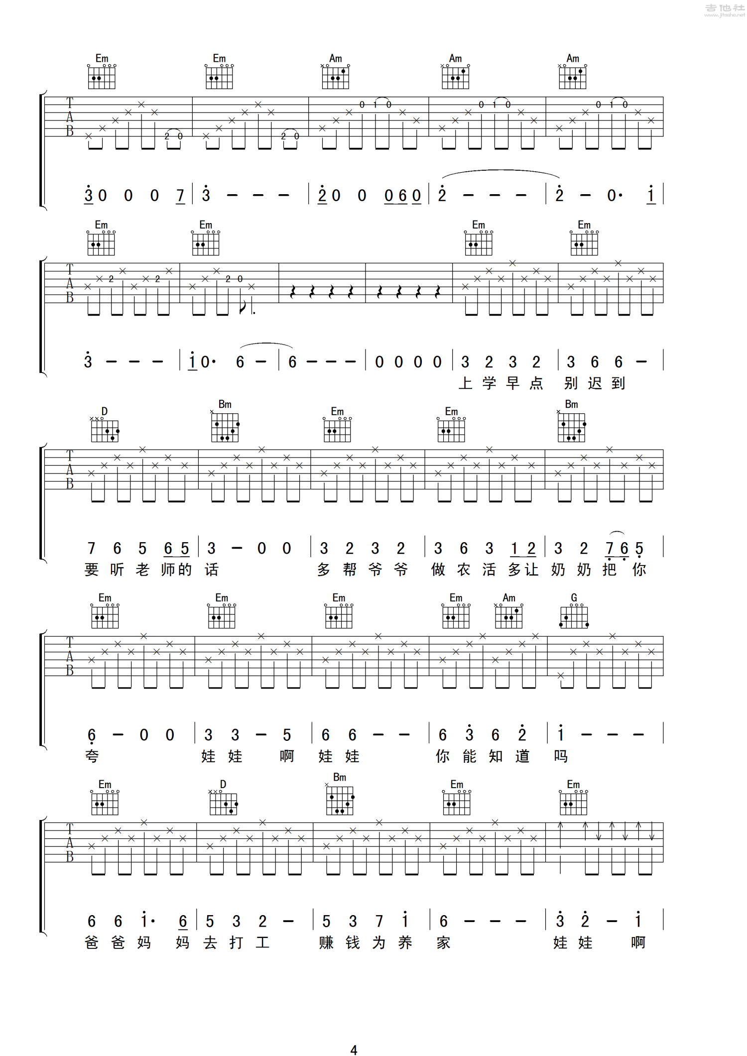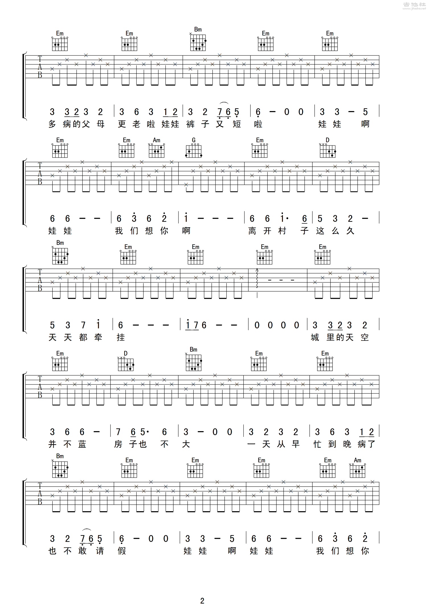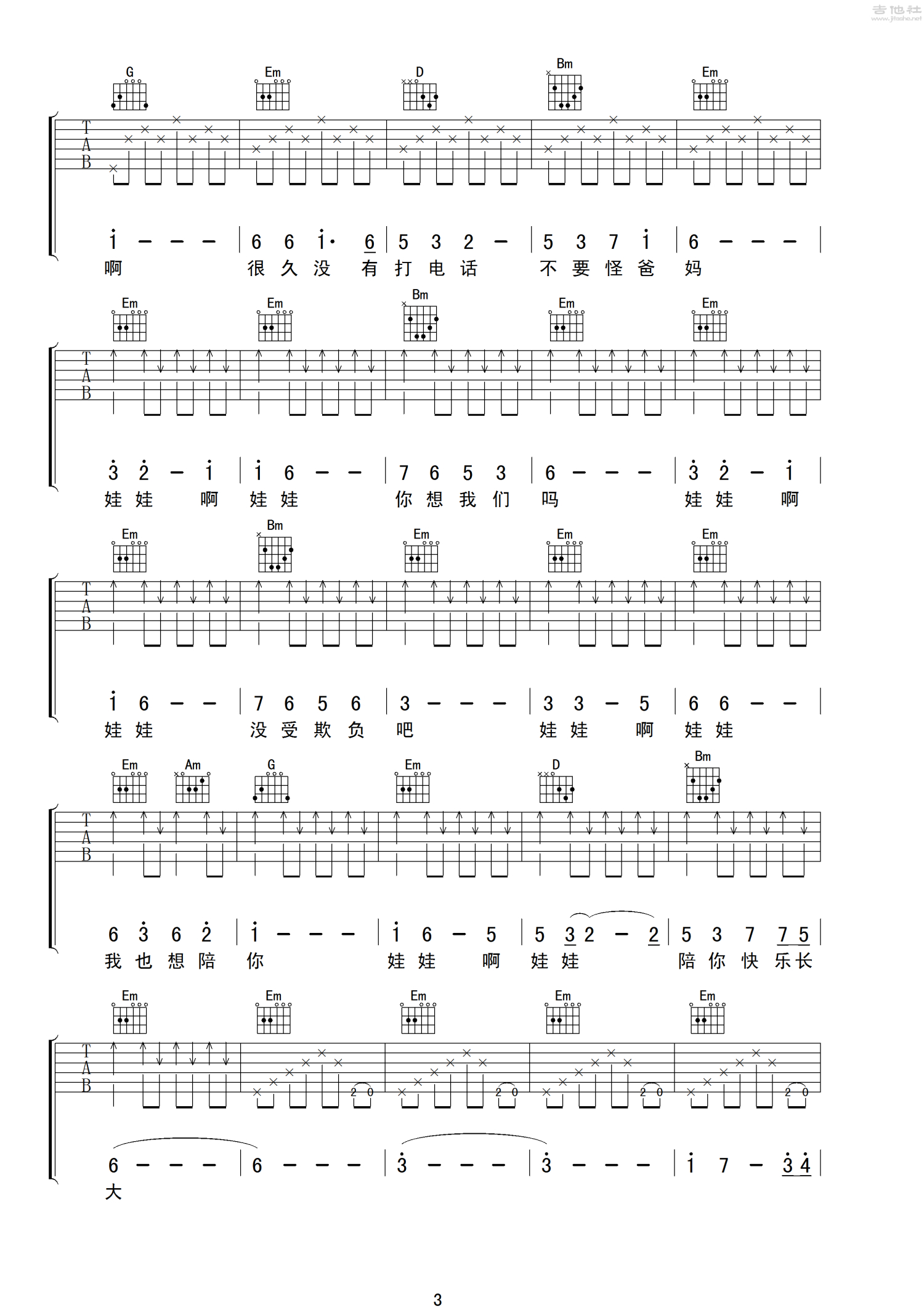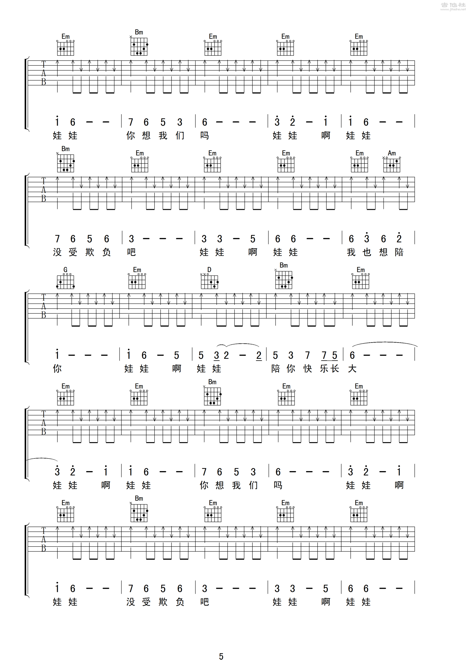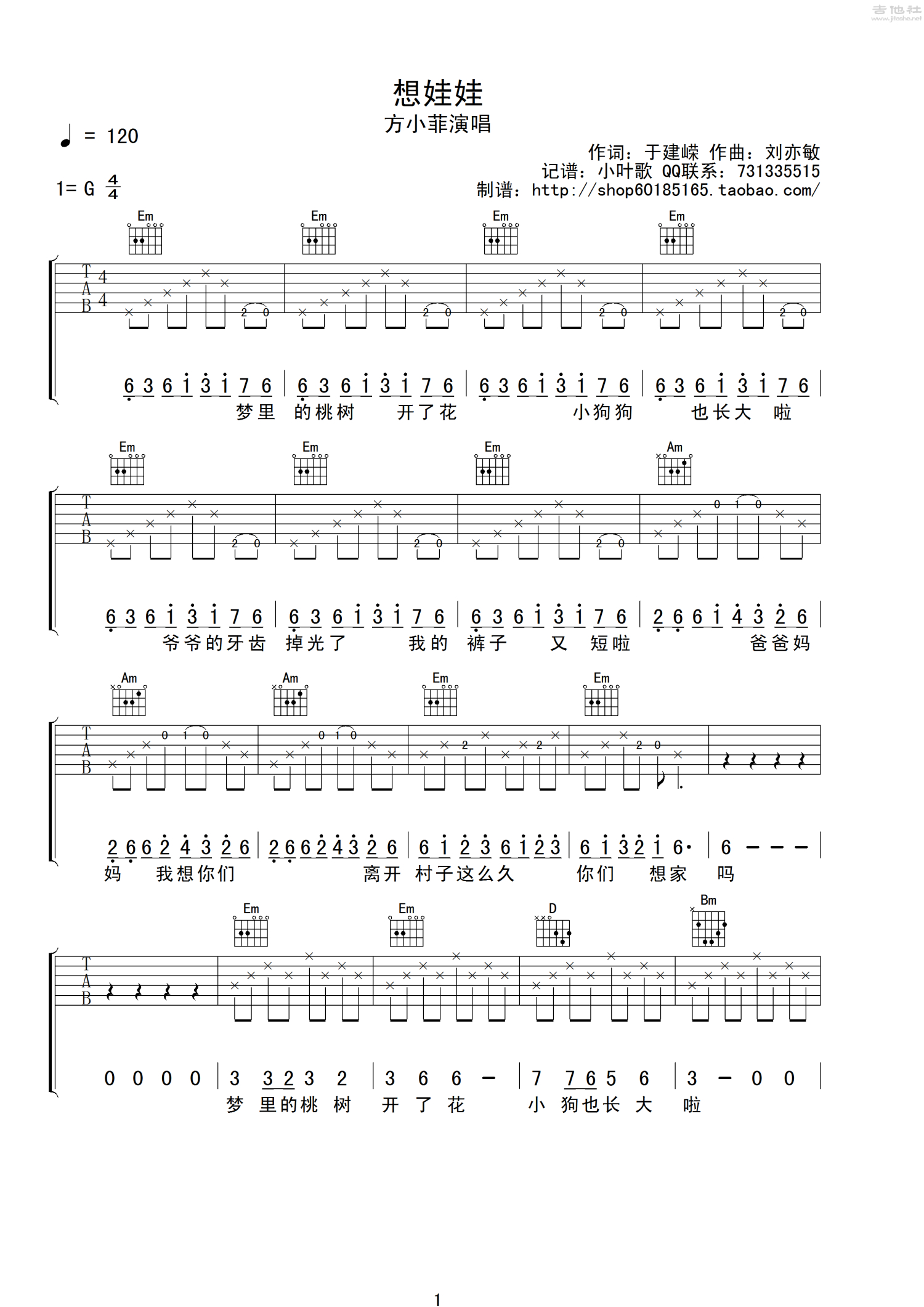 曲谱介绍: G调版方《想娃娃》吉他弹唱六线谱