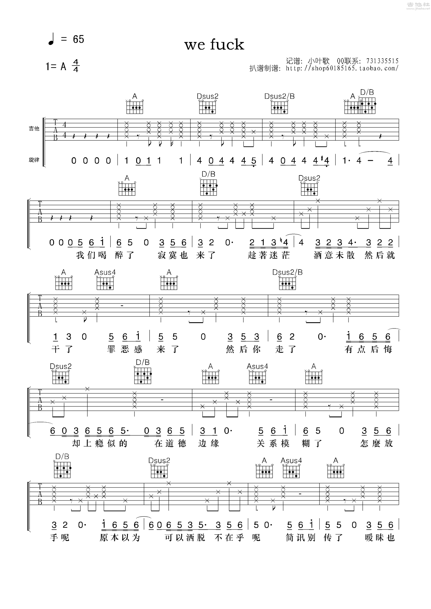曲谱介绍: A调版《WeFuck》吉他弹唱六线谱