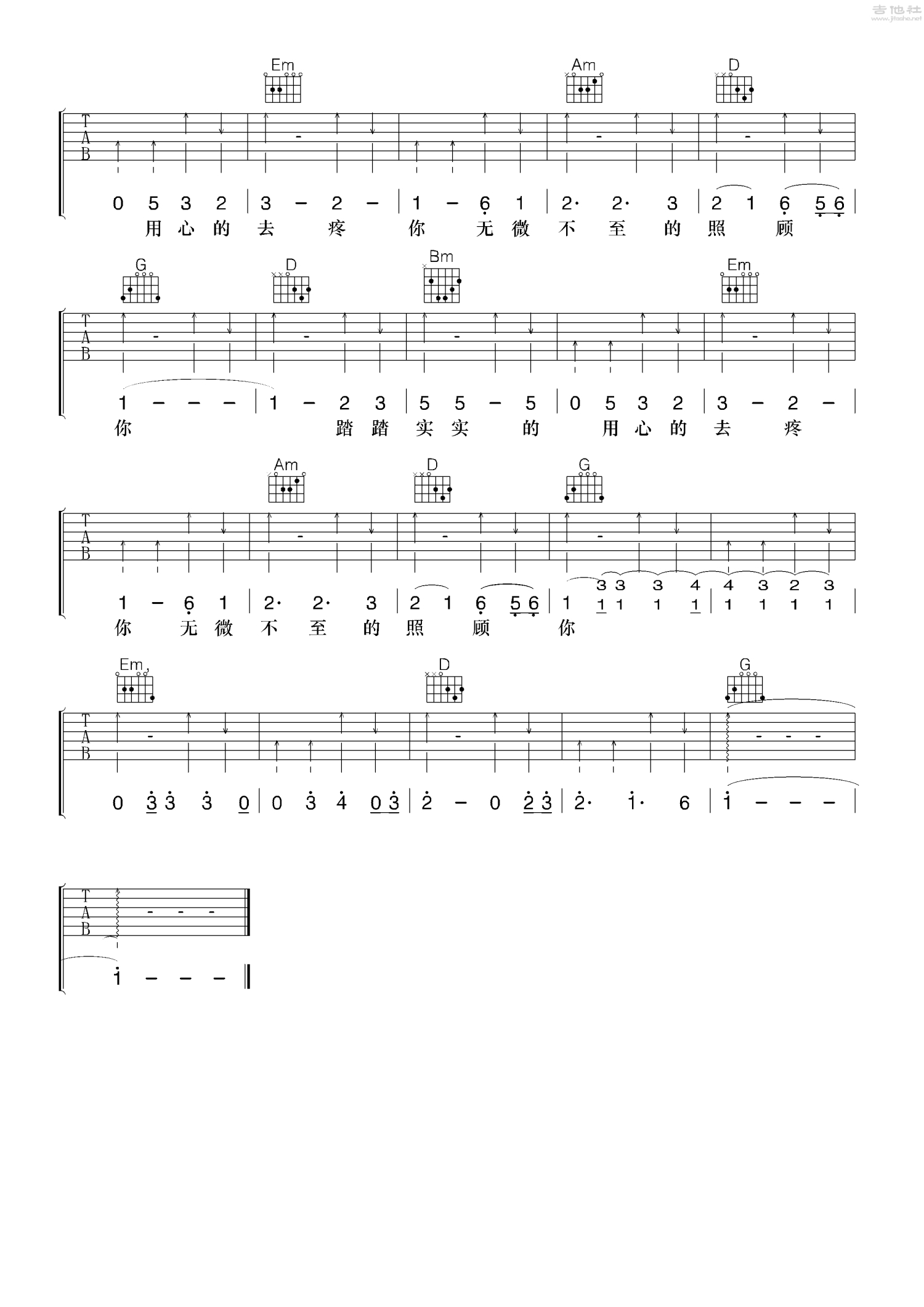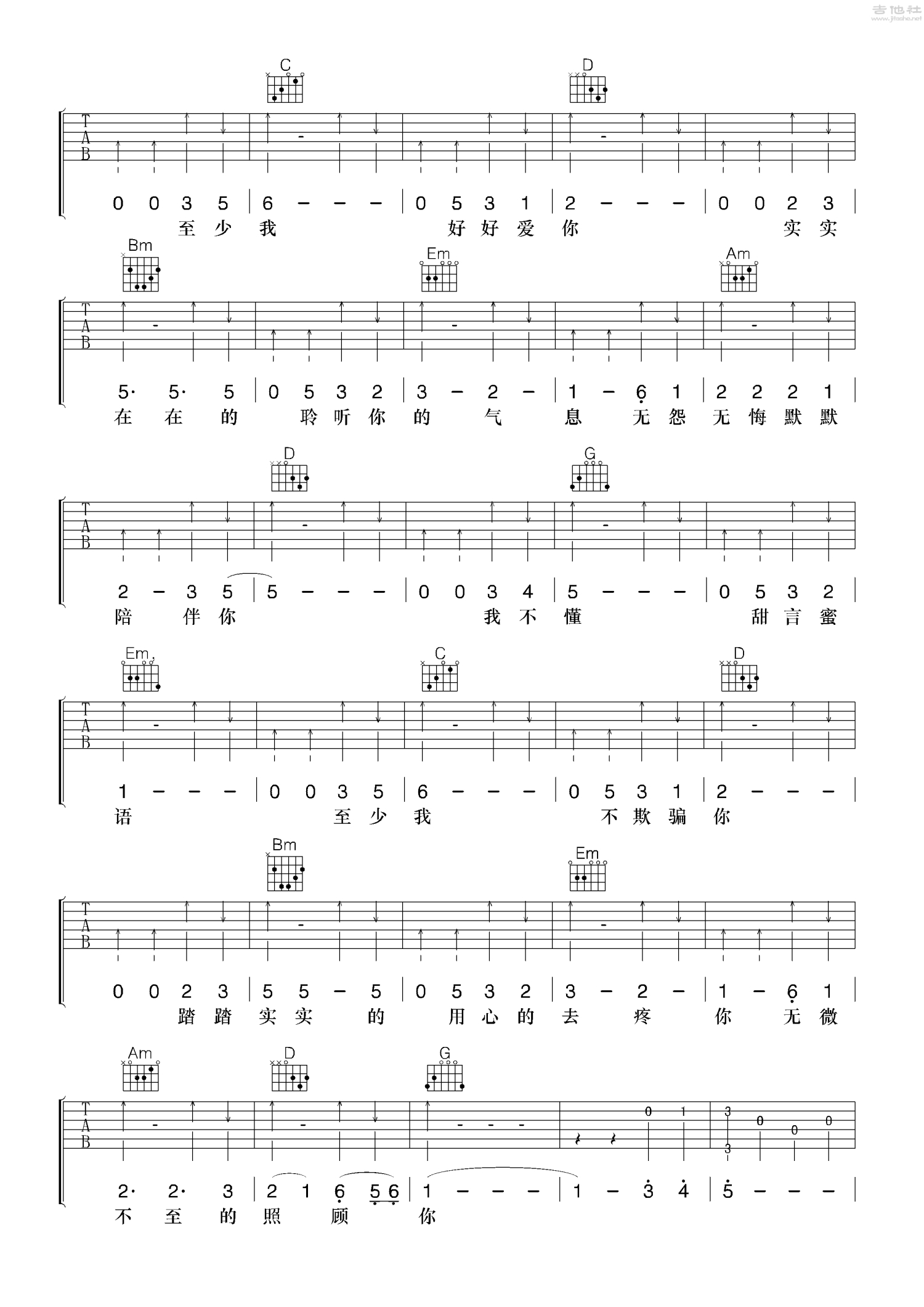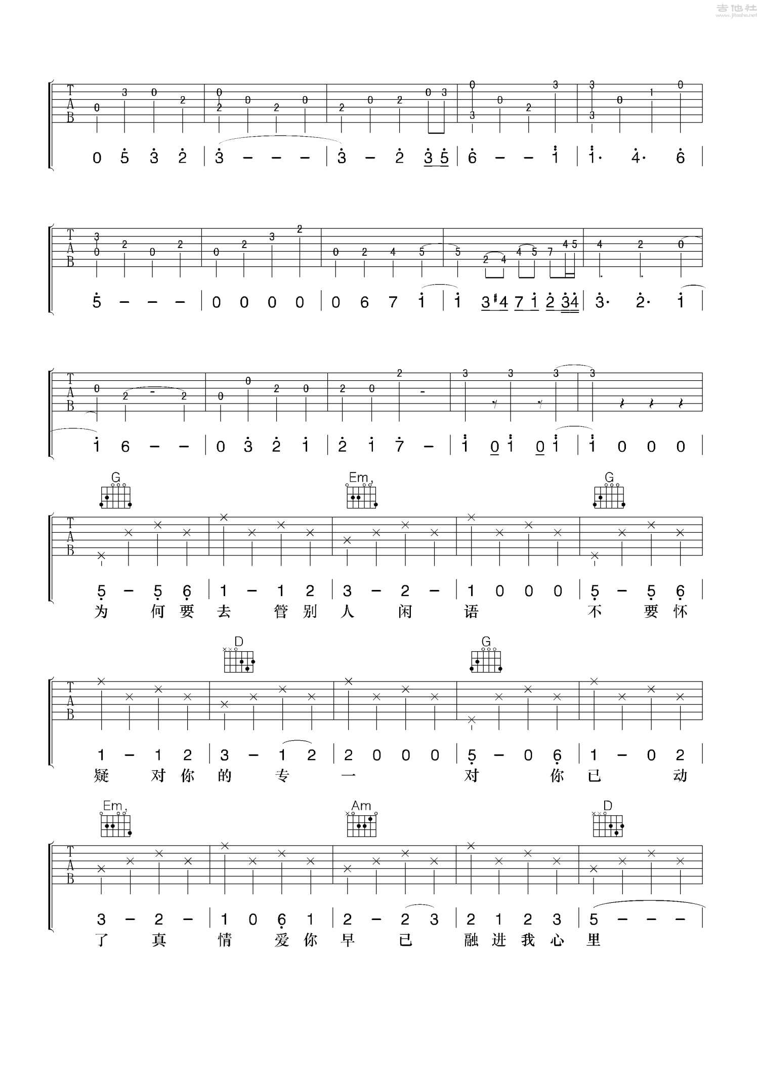曲谱介绍: G调版《甜言蜜语》吉他弹唱六线谱
