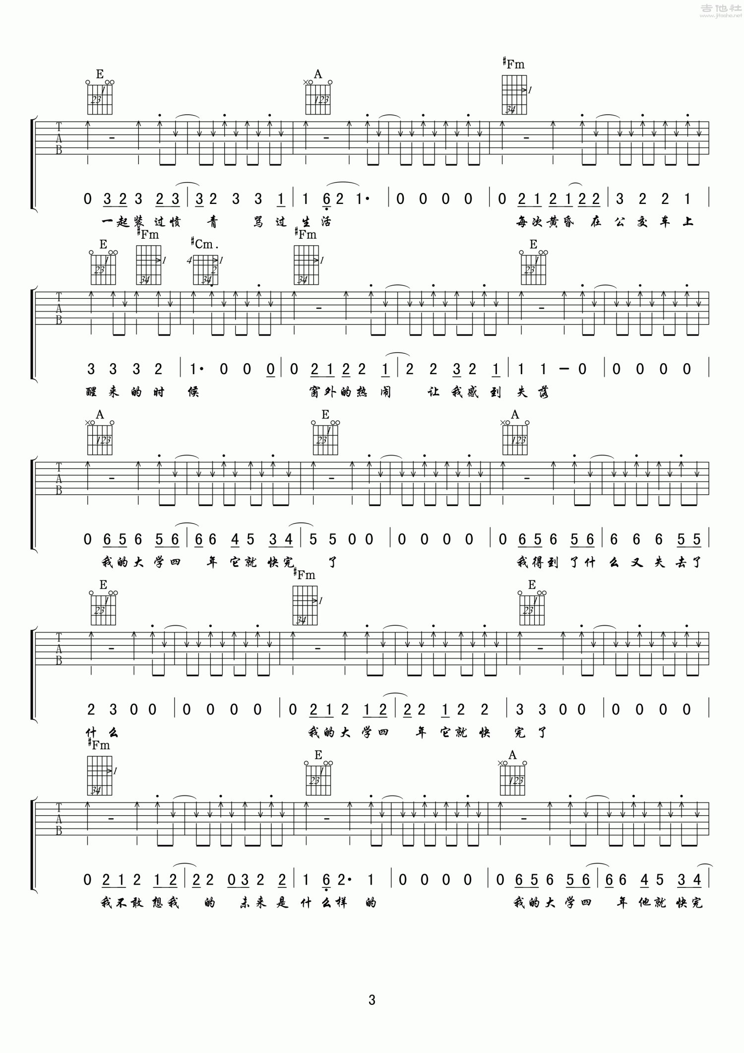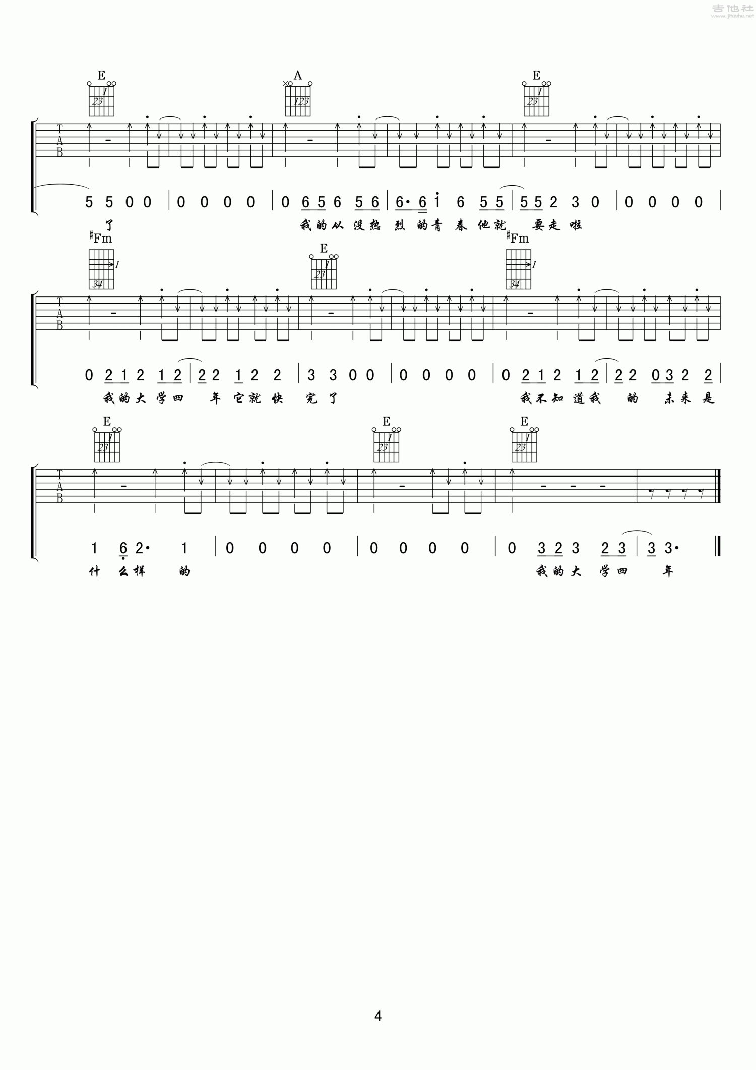 我的大学四年他就快完了吉他谱 - E调吉他弹唱谱