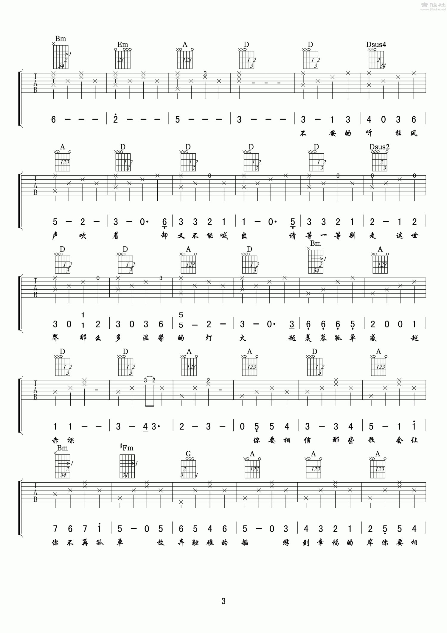 吉他弹唱D调来源:小叶歌545 浏览2021-01-15 16:20发布图谱共6页