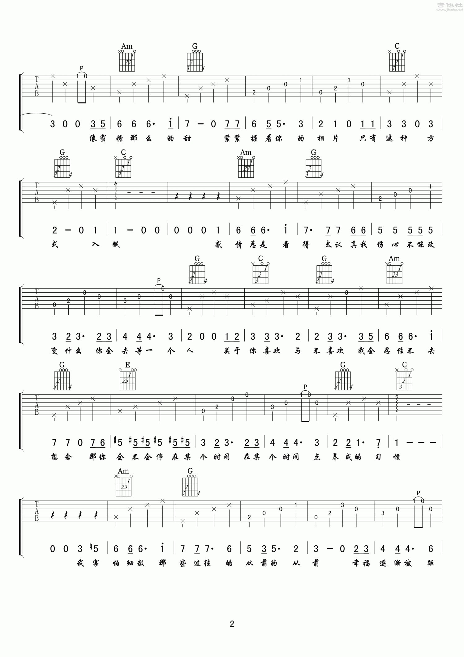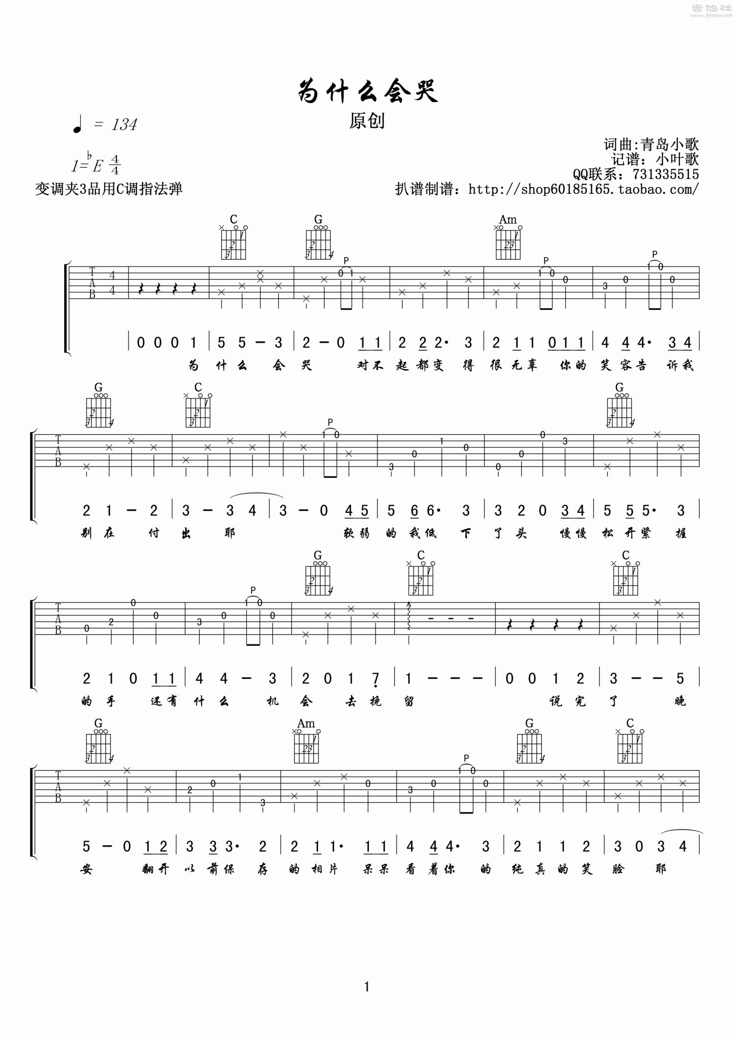 曲谱介绍: C调版《为什么会哭》吉他弹唱六线谱