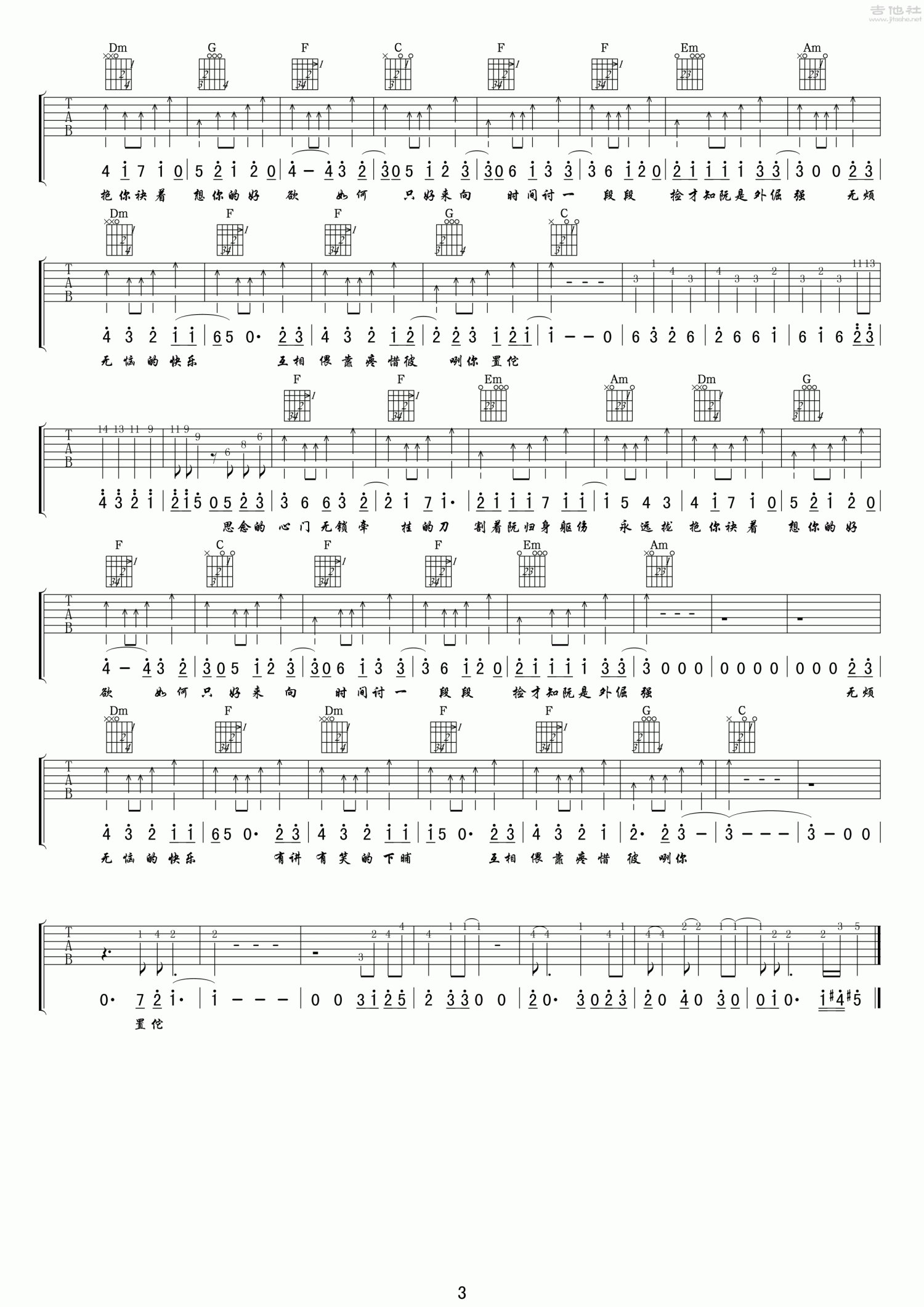 吉他弹唱C调来源:小叶歌366 浏览2021-01-15 16:15发布图谱共3页