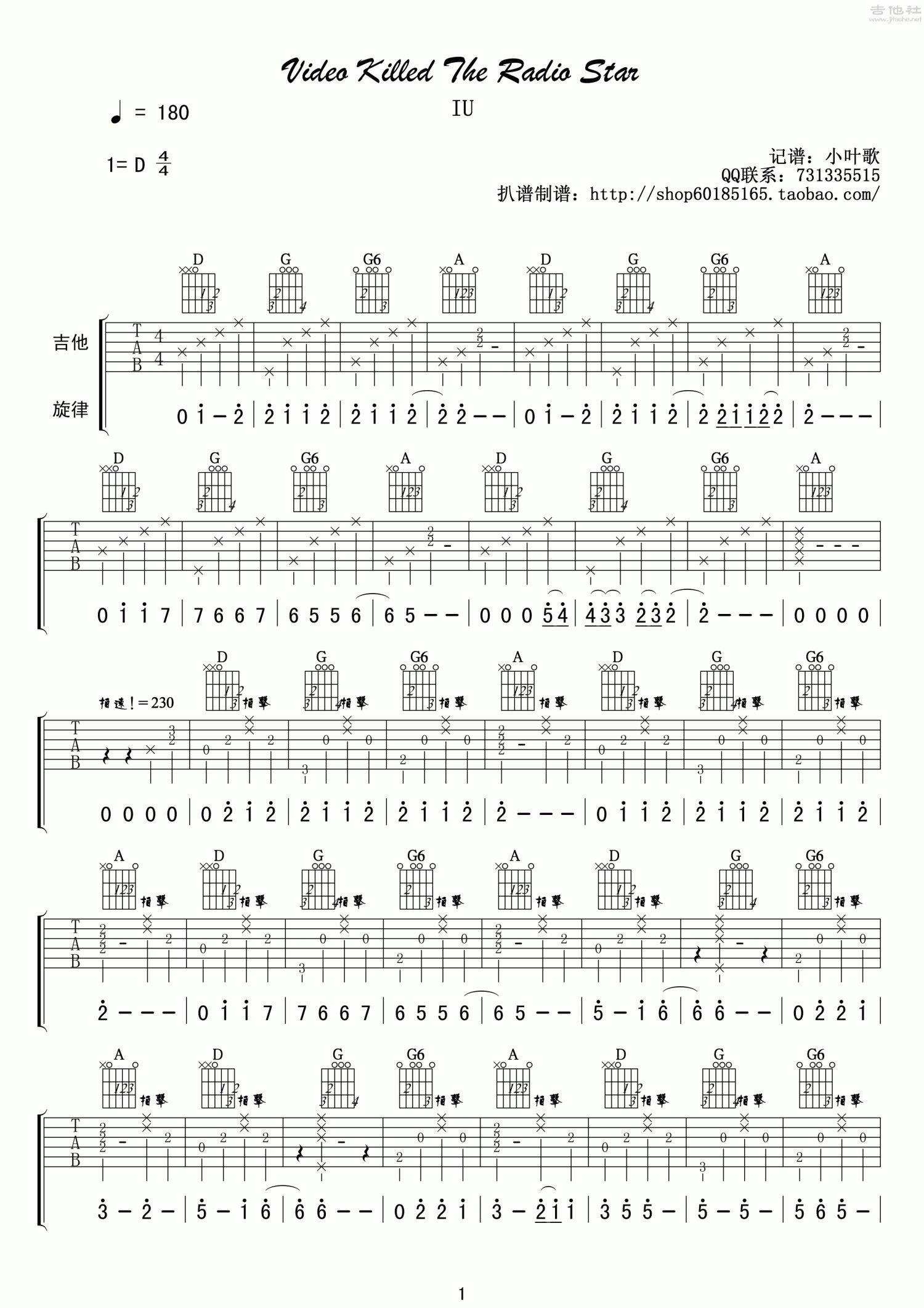 曲谱介绍: 版《VideoKilledTheRadioStar》吉他弹唱六线谱