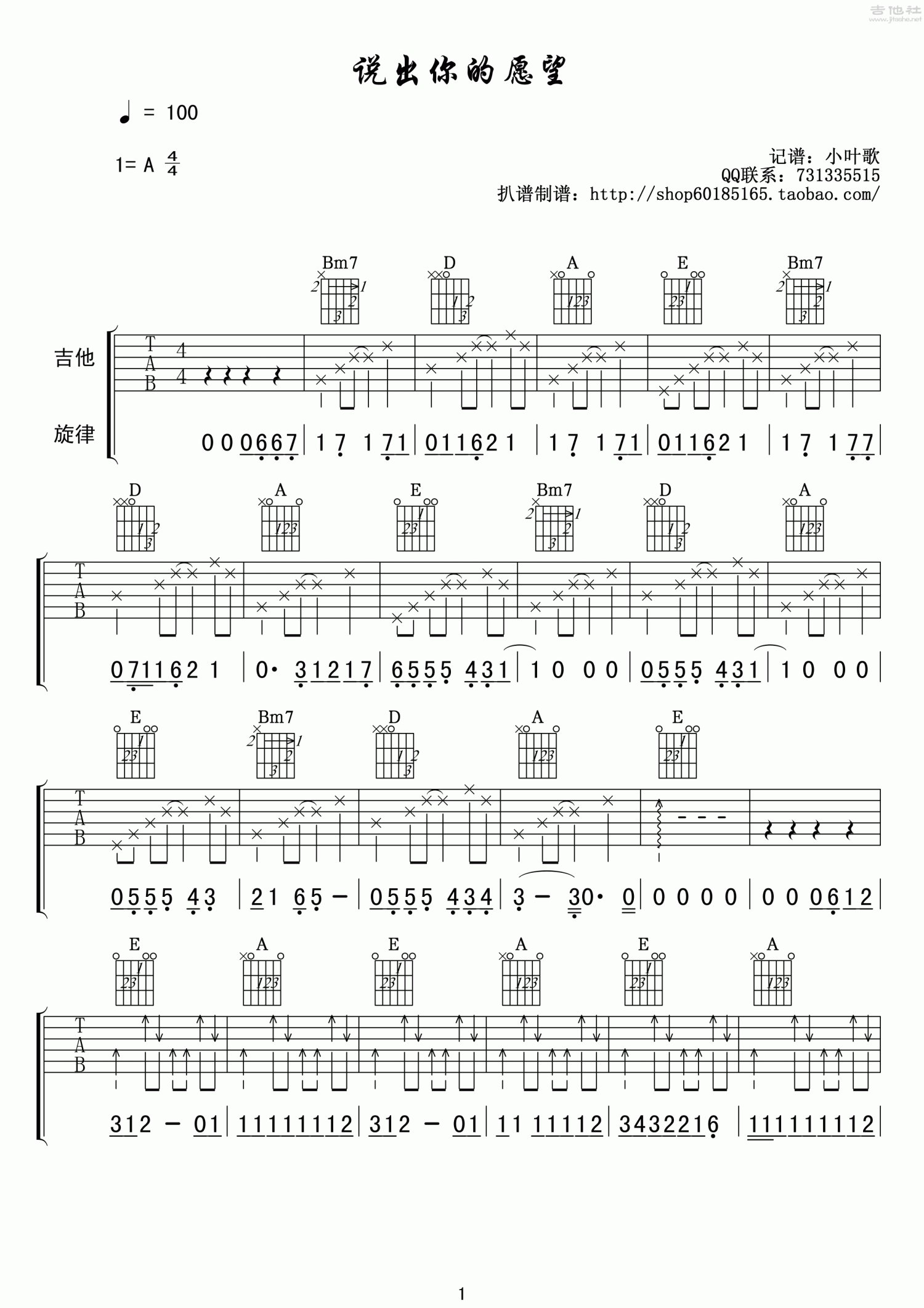 曲谱介绍: A调版《TellMeYourWish》吉他弹唱六线谱
