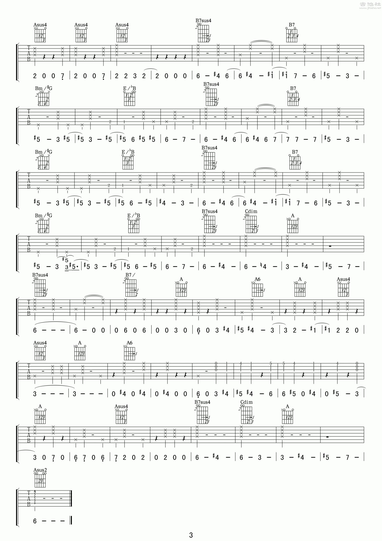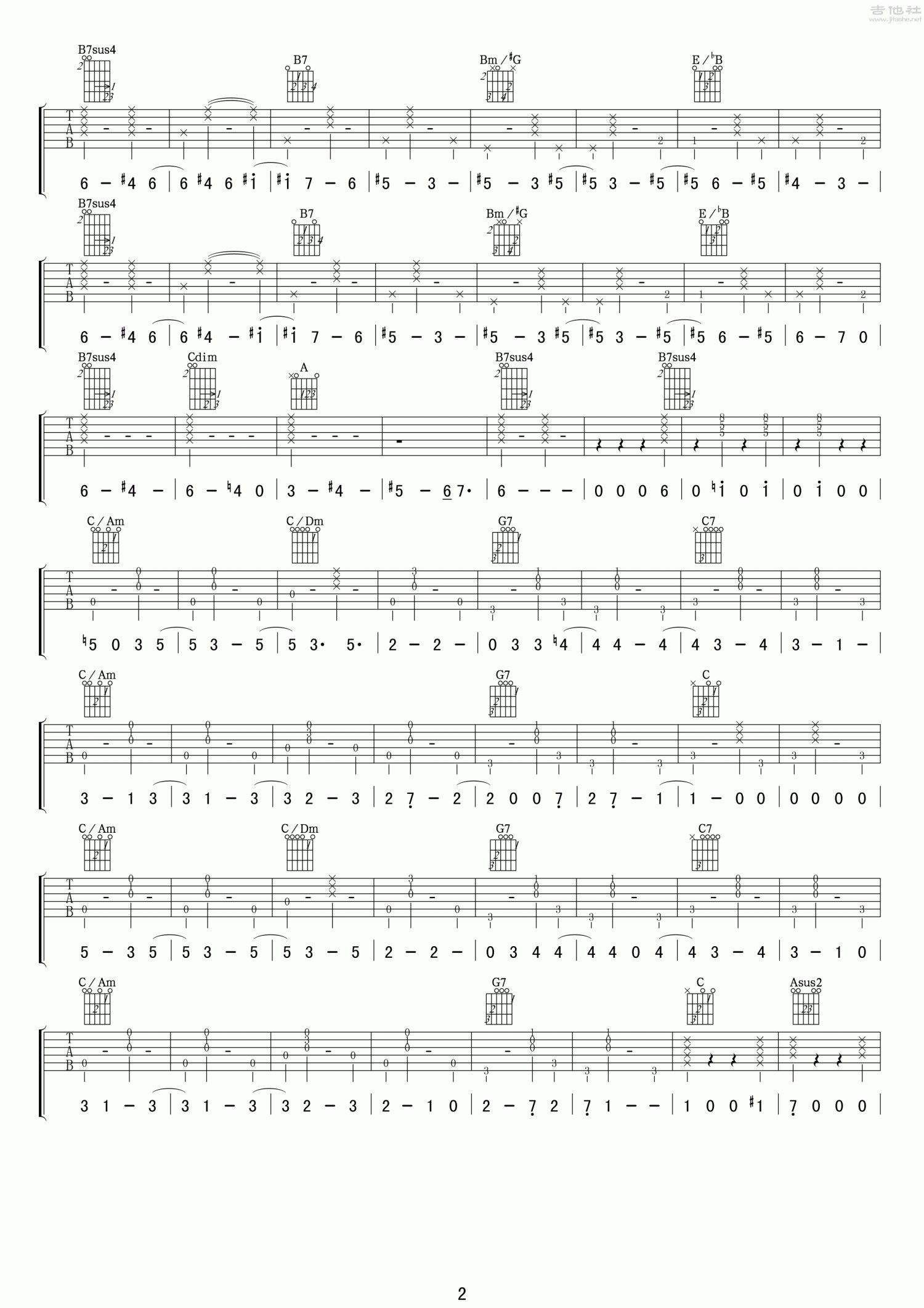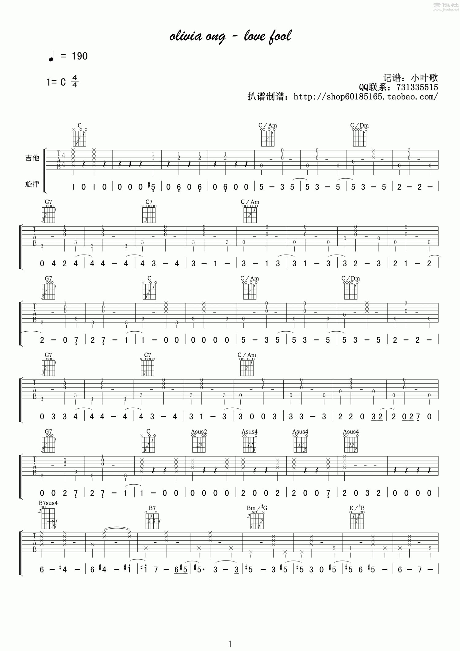曲谱介绍: C调版《LoveFool》吉他弹唱六线谱