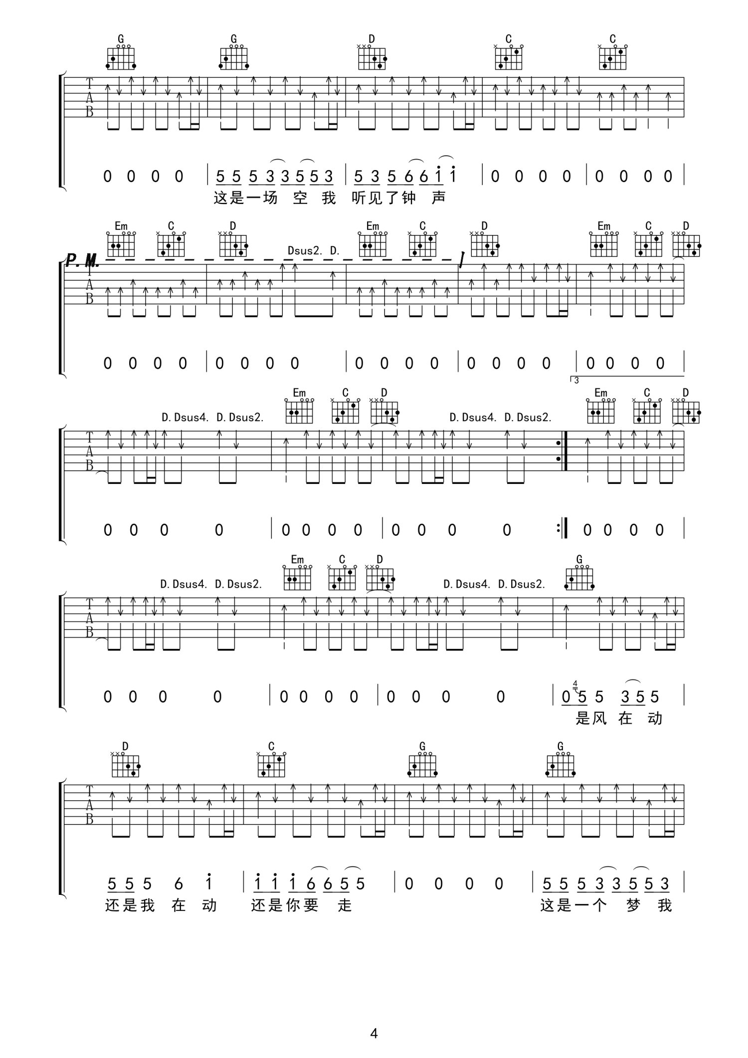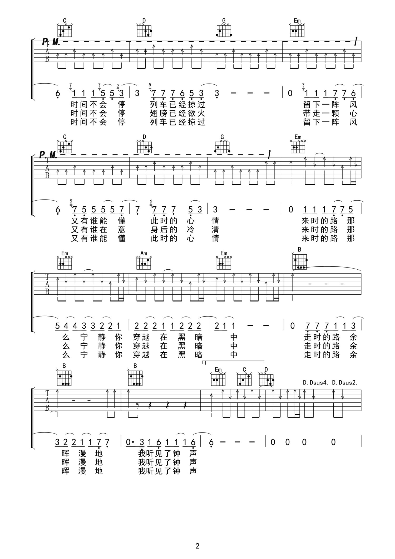 曲谱介绍: G调建微版《钟》吉他弹唱六线谱