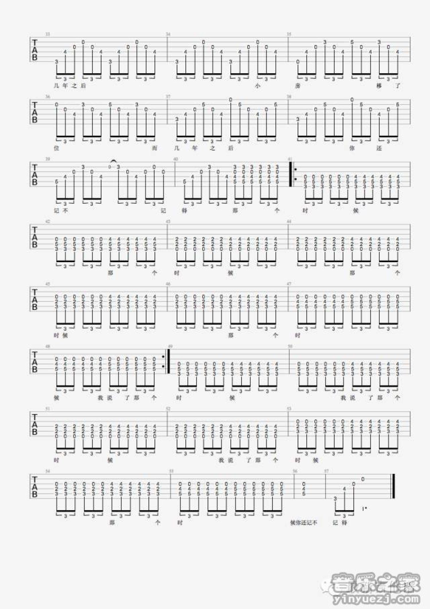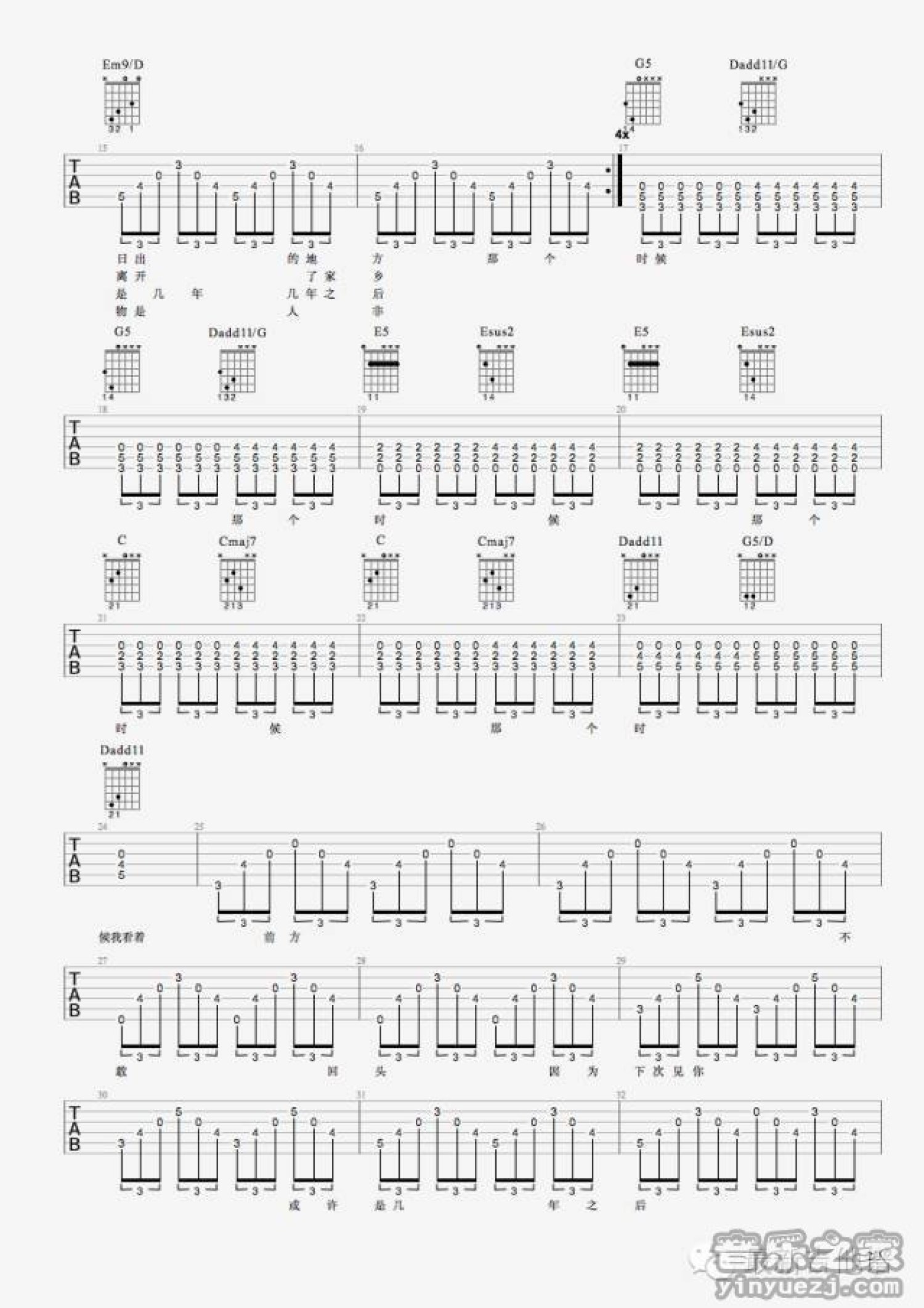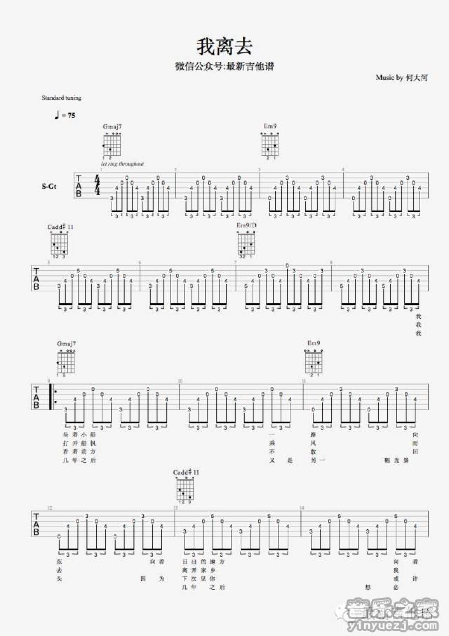 曲谱介绍: 《我离去》吉他弹唱六线谱