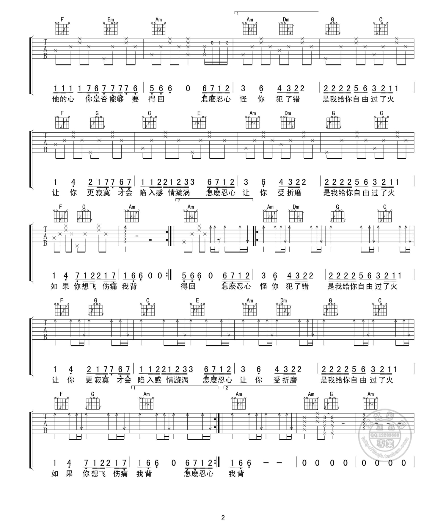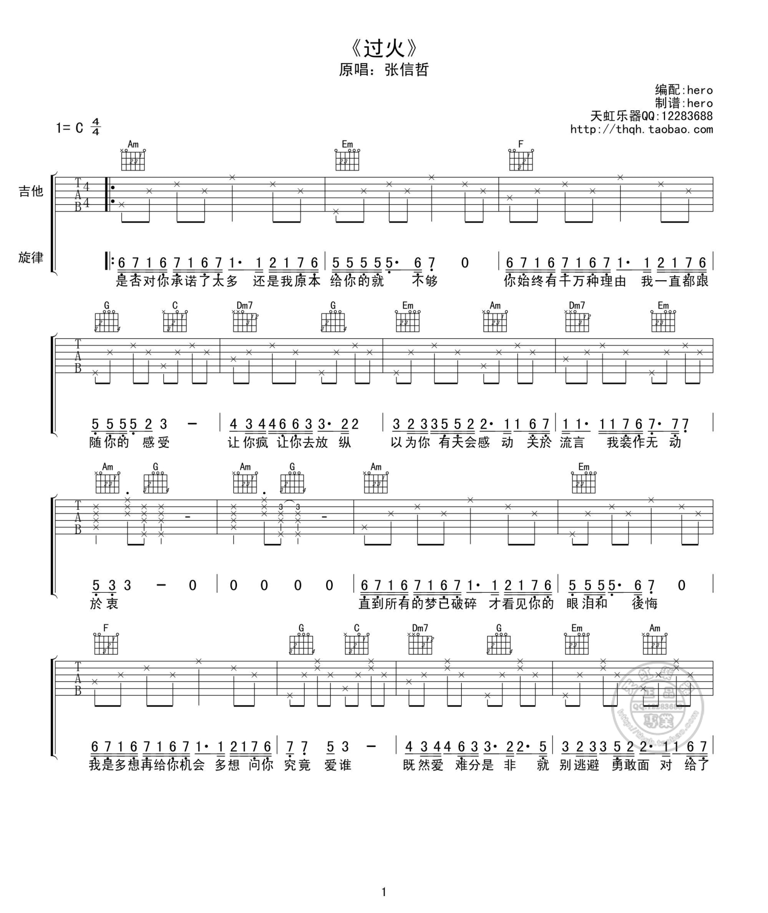 曲谱介绍: 张信哲《过火》吉他谱_C调吉他弹唱谱