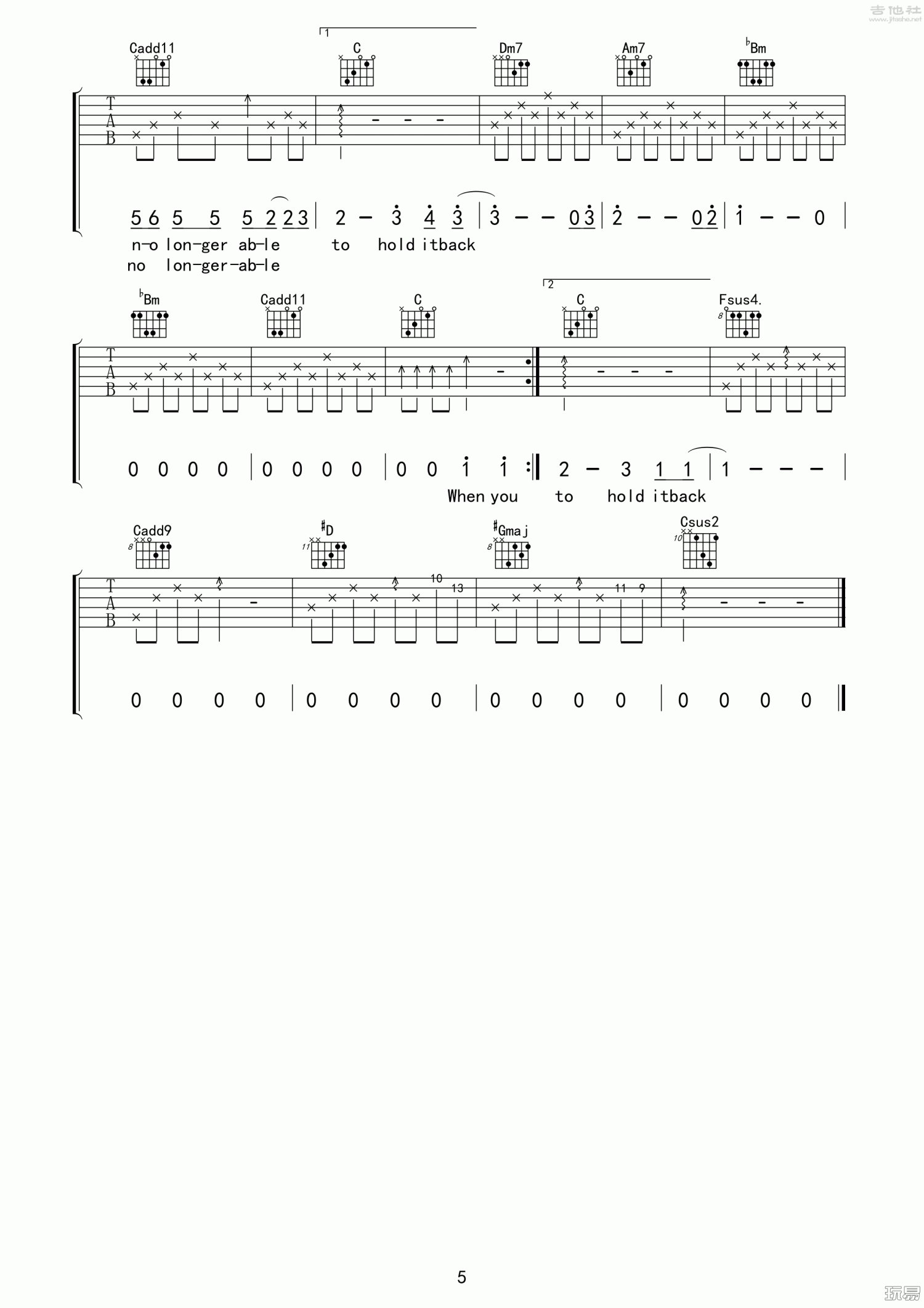 吉他弹唱F调来源:玩易537 浏览2021-01-15 14:30发布图谱共5页