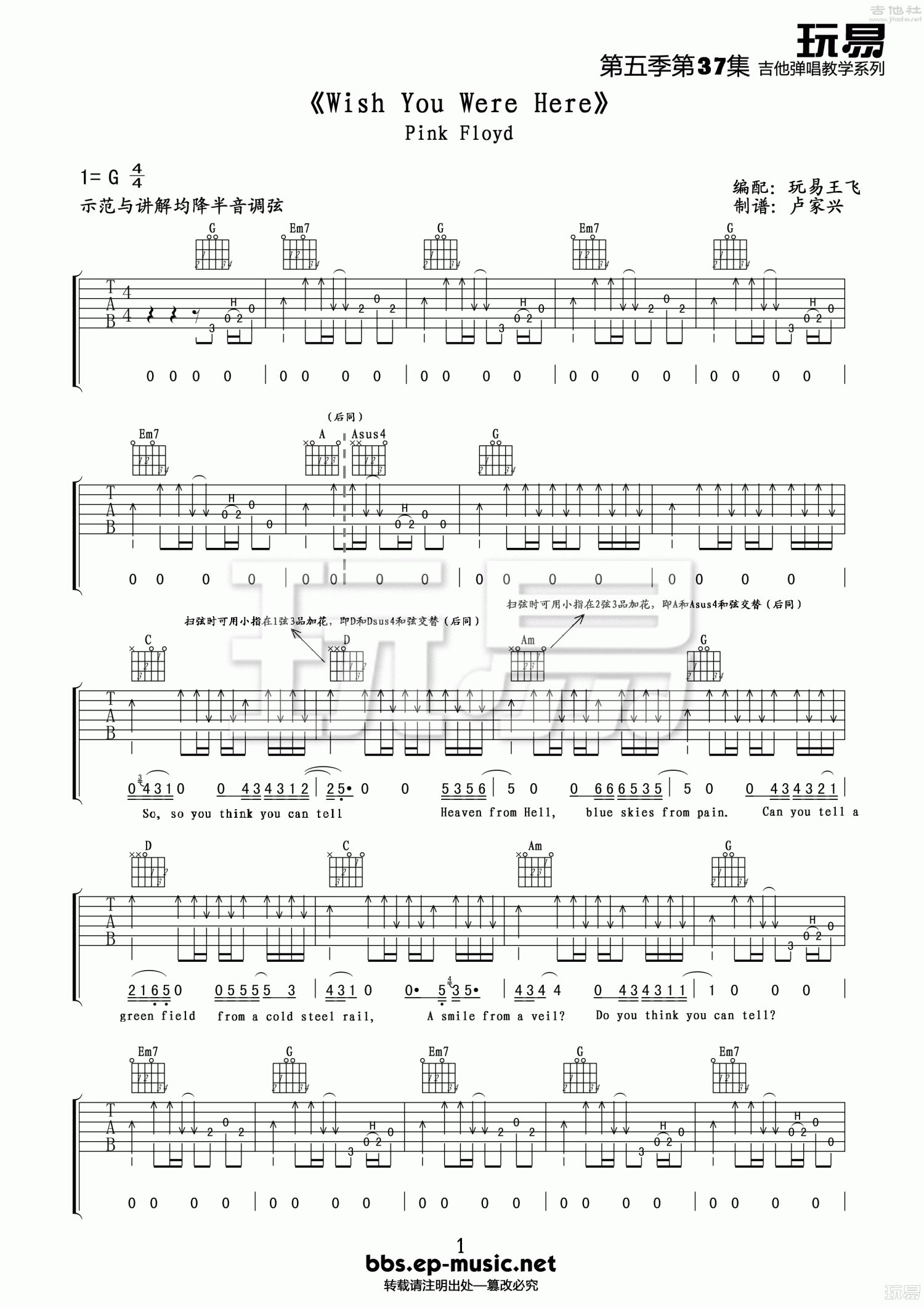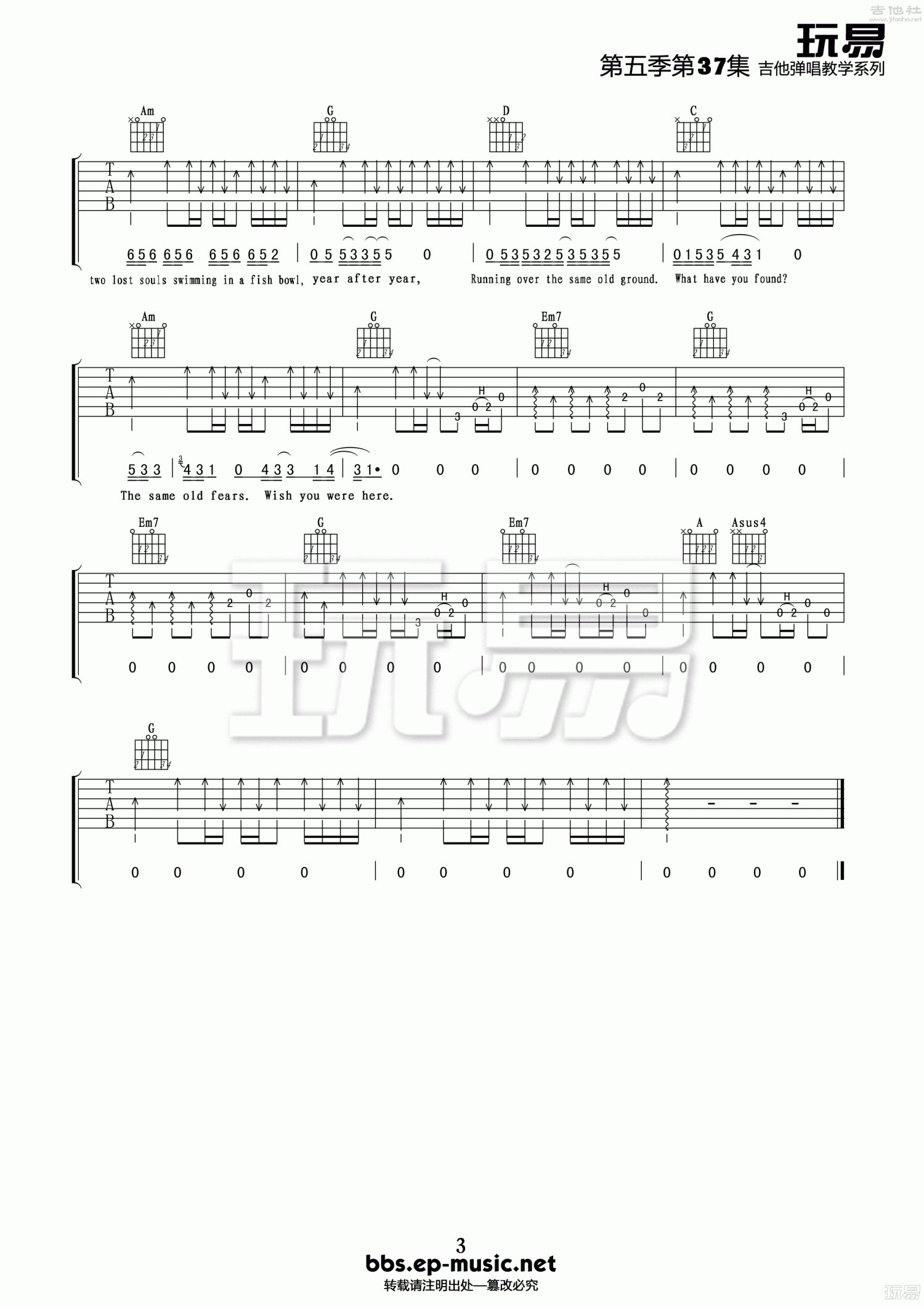 曲谱介绍: G调版《Wishyouwerehere》吉他弹唱六线谱