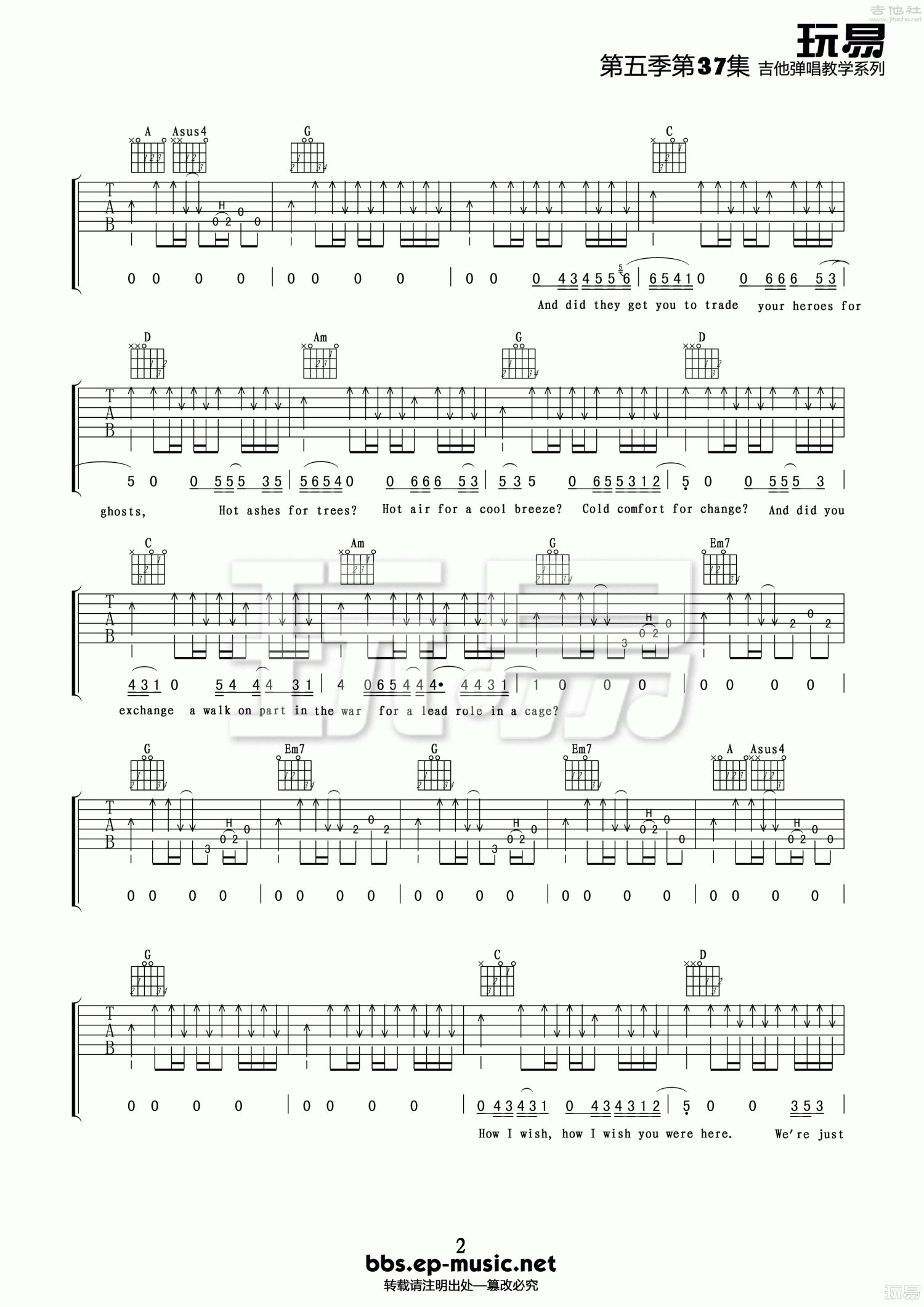 当前位置:琴谱网>吉他弹唱>Wish you were here