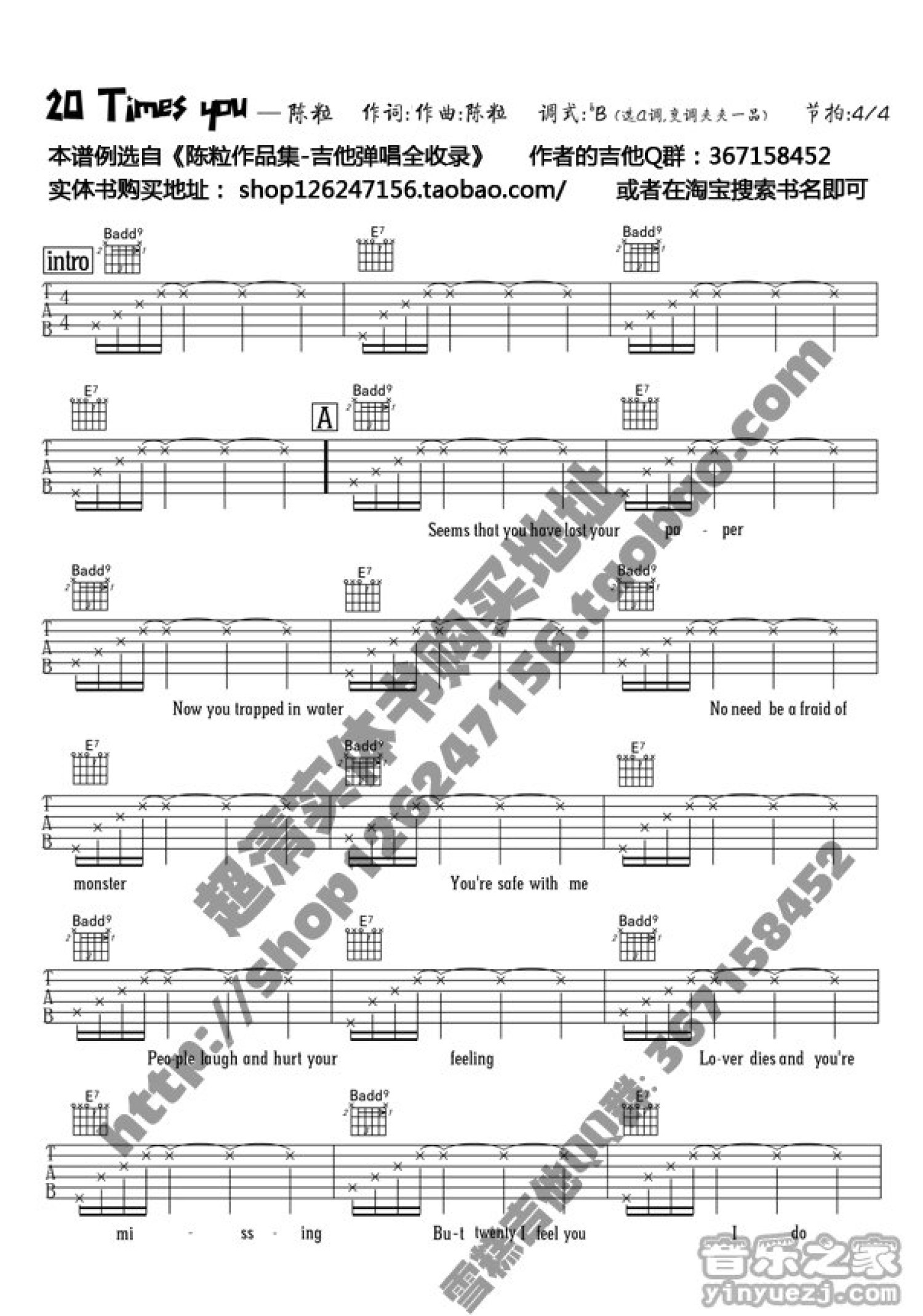 曲谱介绍: 十万A调版《20timesyou》吉他弹唱六线谱