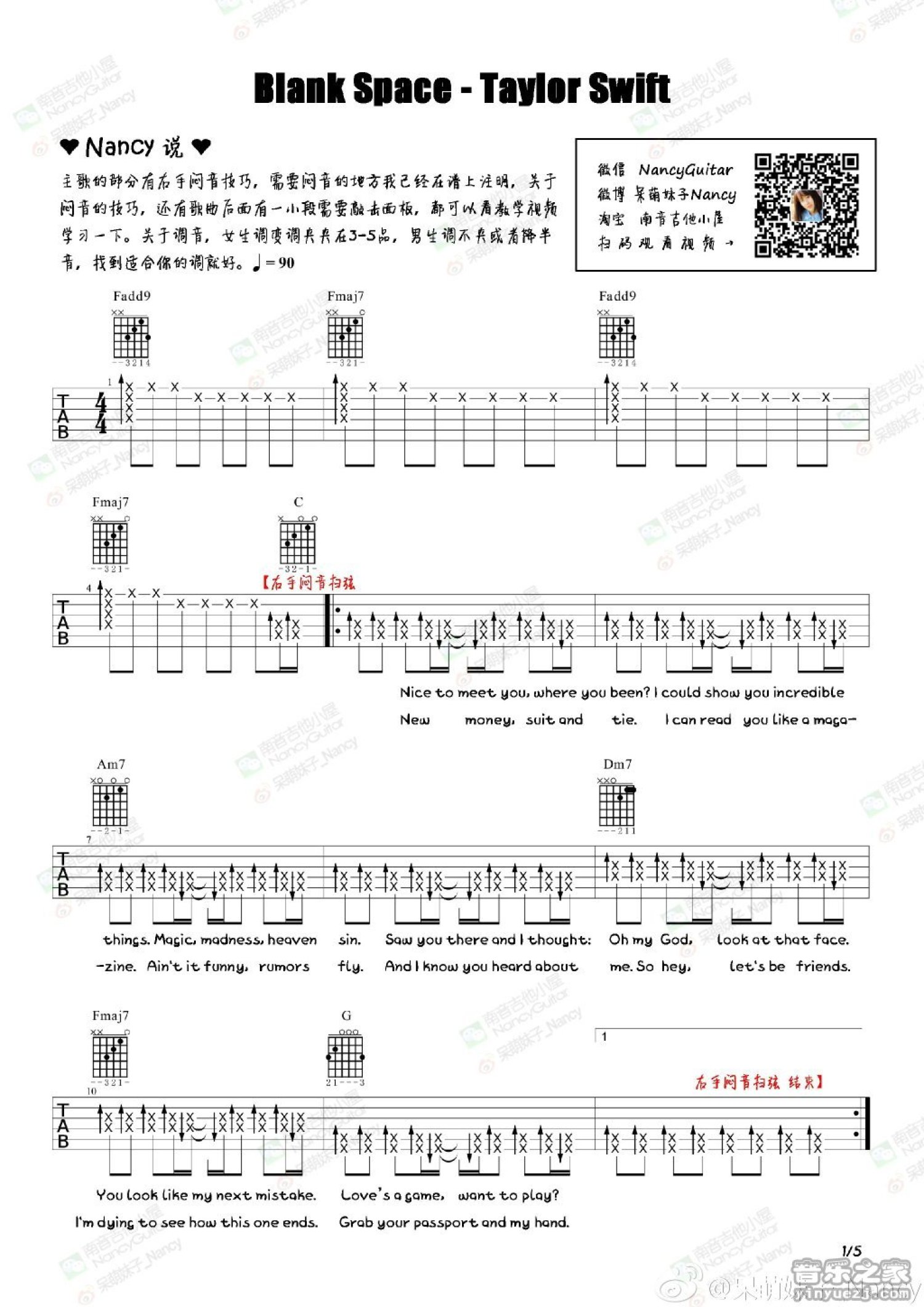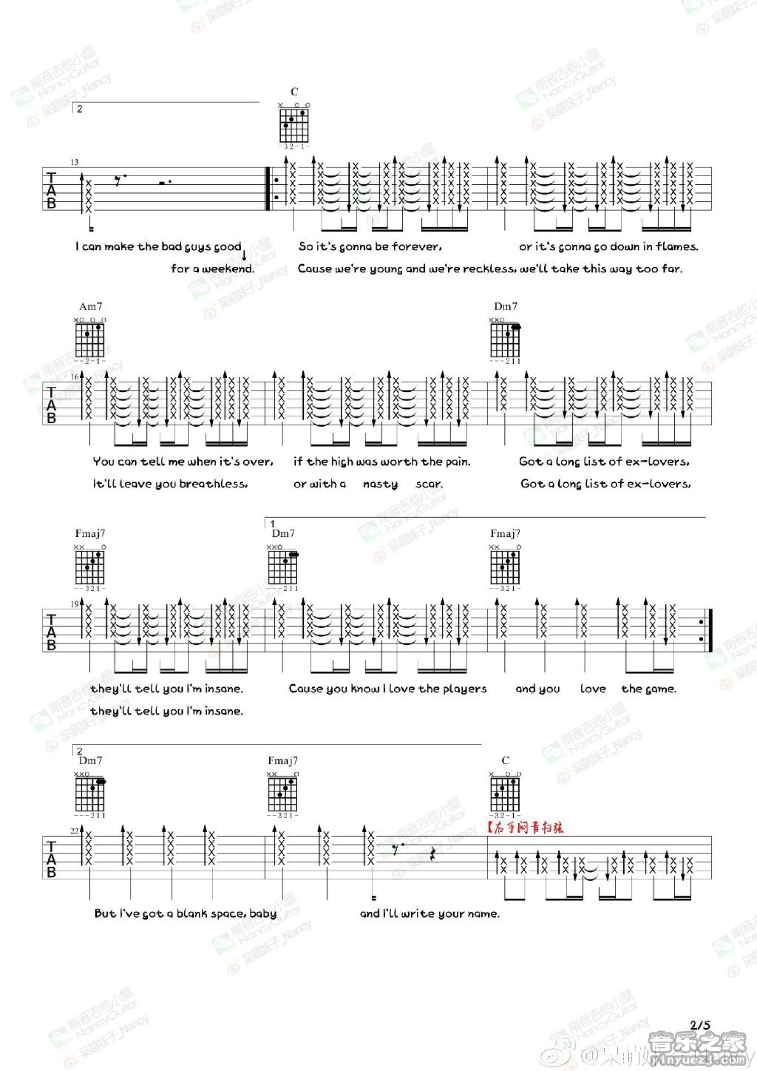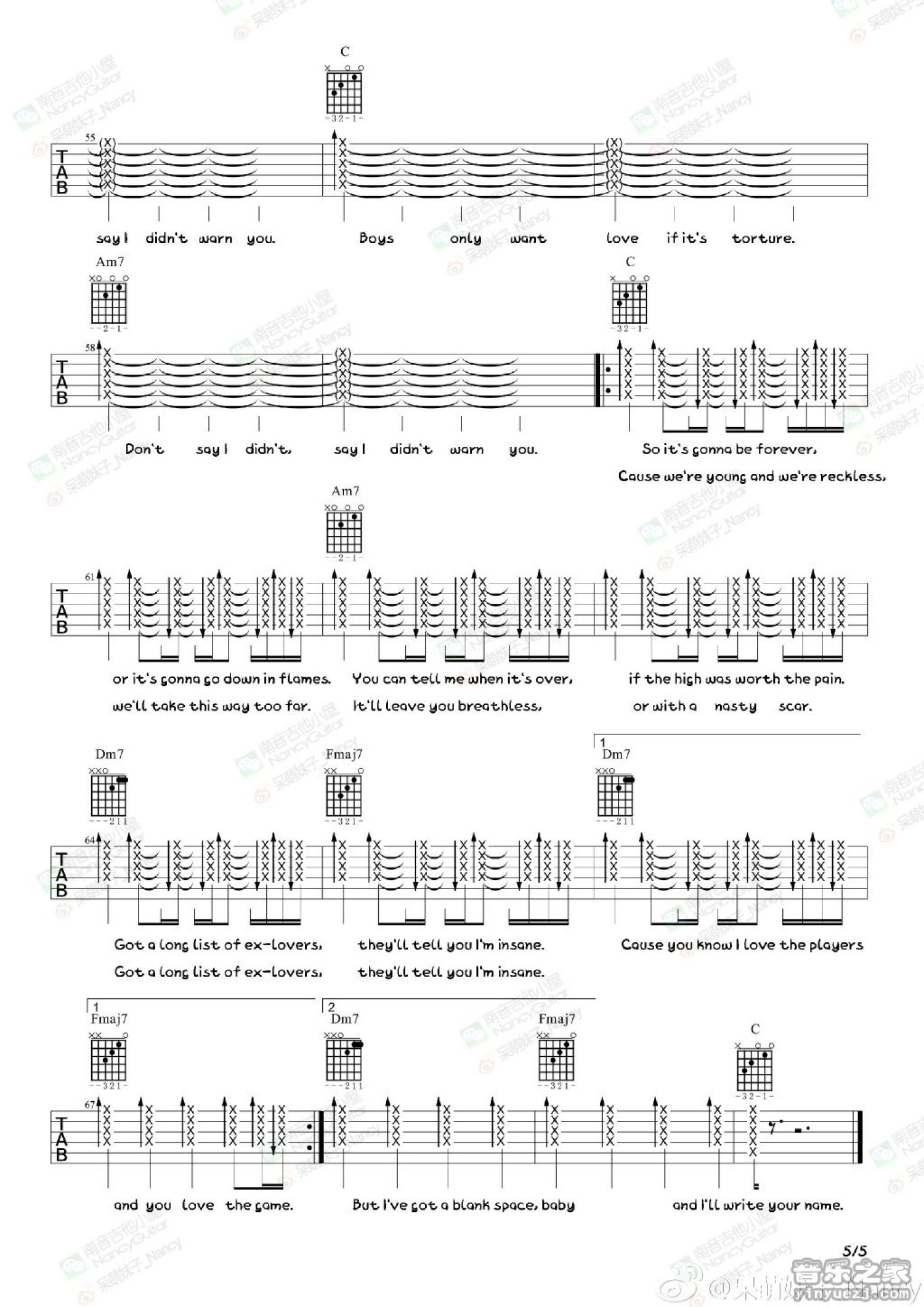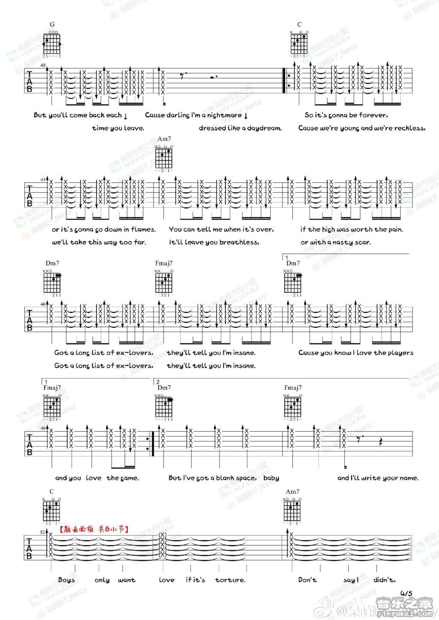 曲谱介绍: taylor swift《blank space》吉他谱_吉他弹唱谱