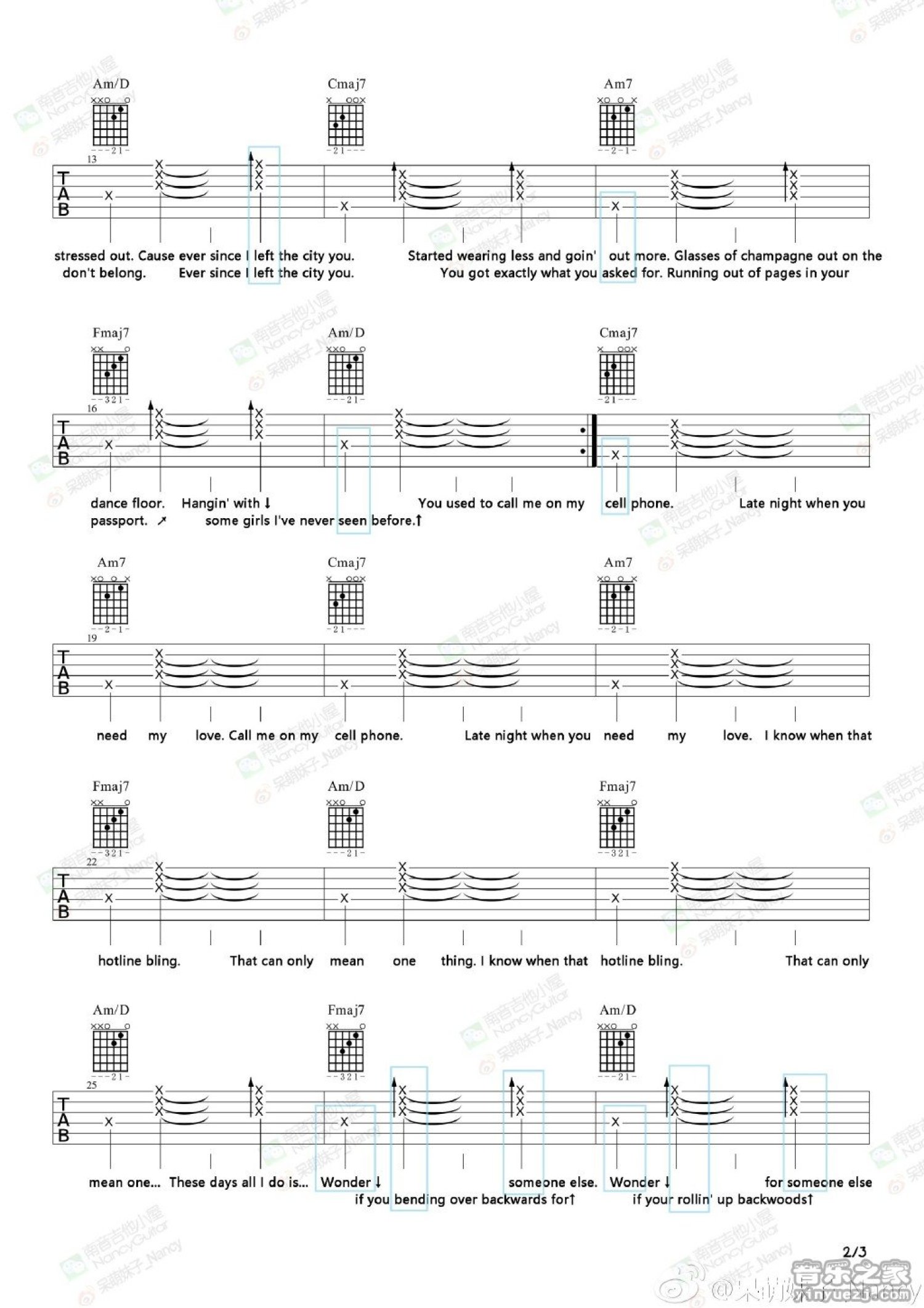 曲谱介绍: Drake《hotline bling》吉他谱_吉他弹唱谱