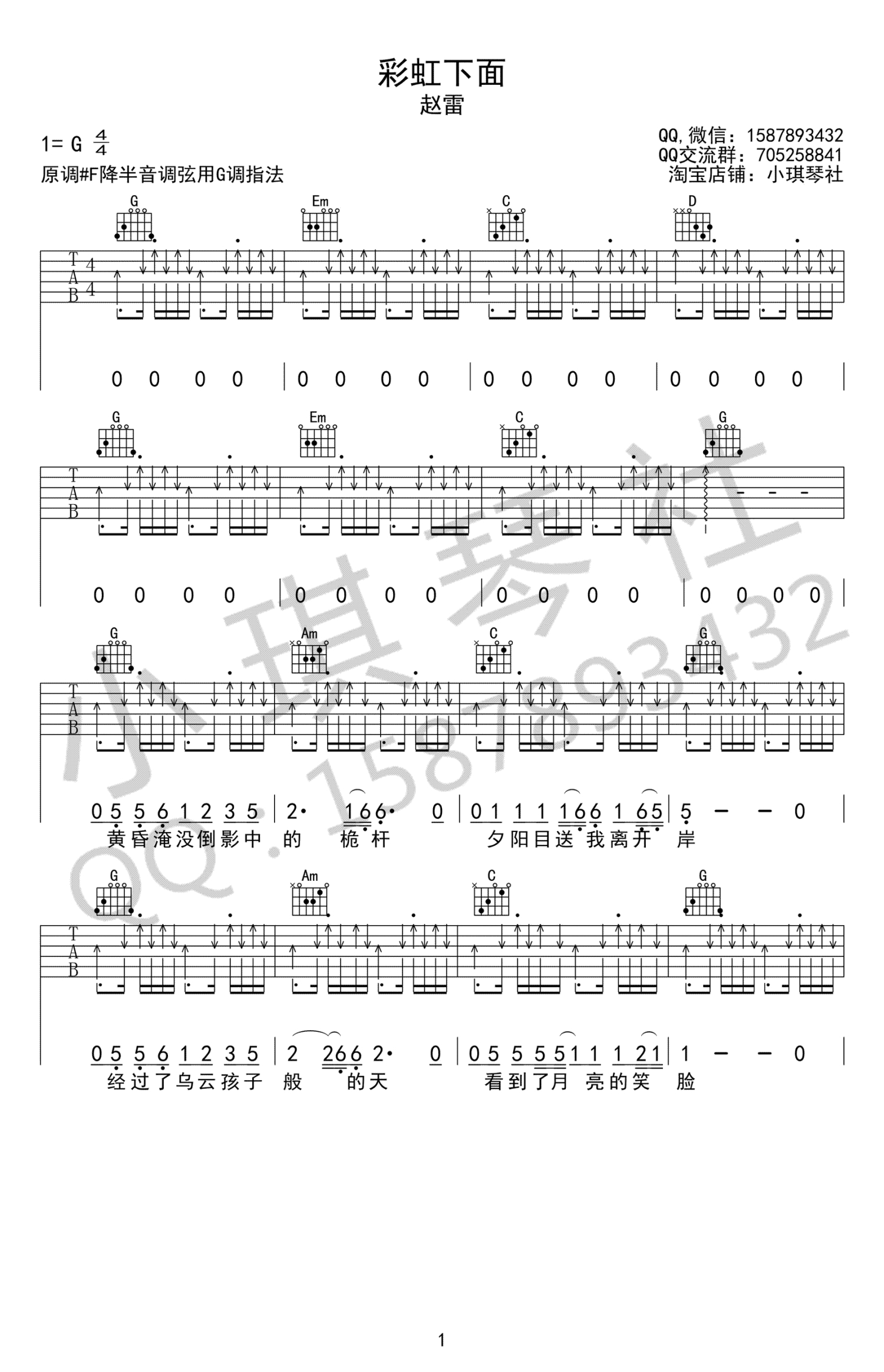 琴谱网为您精心推荐 彩虹下面 高清图谱