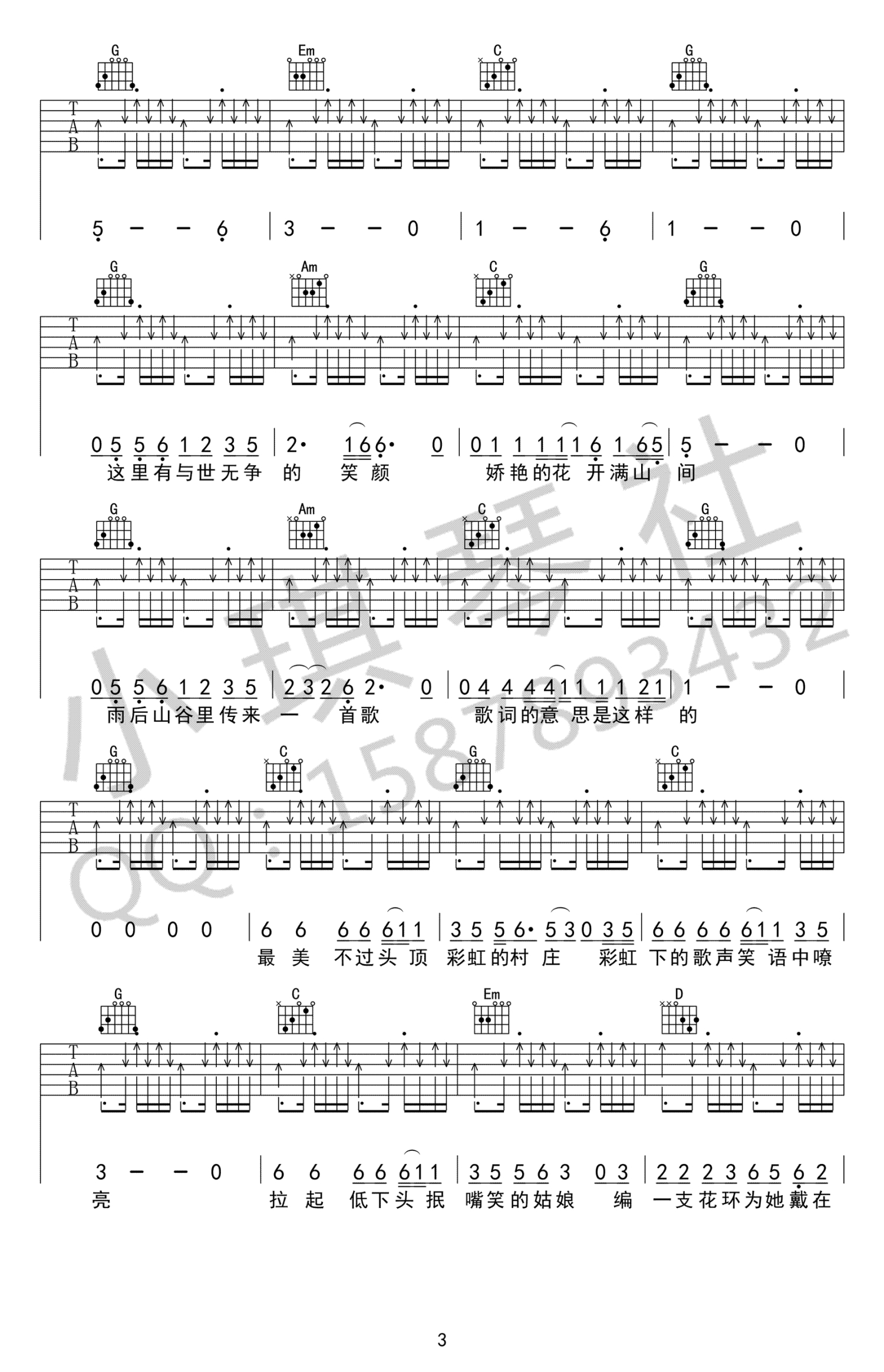 当前位置:琴谱网>吉他弹唱>彩虹下面