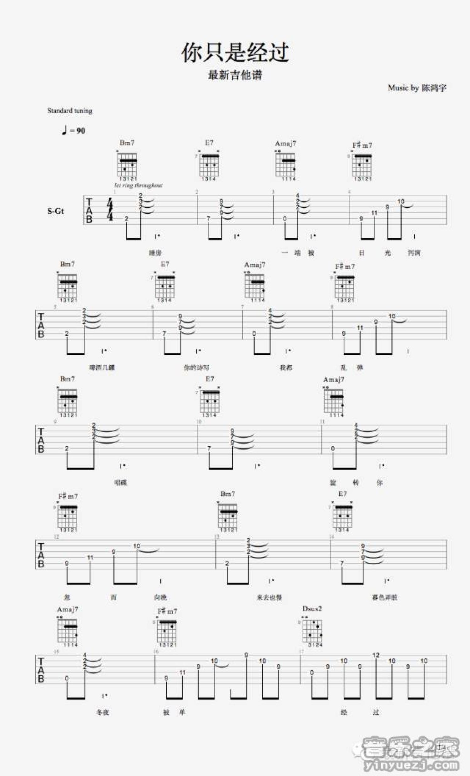 你只是经过吉他谱 - 陈鸿宇 - 吉他弹唱谱