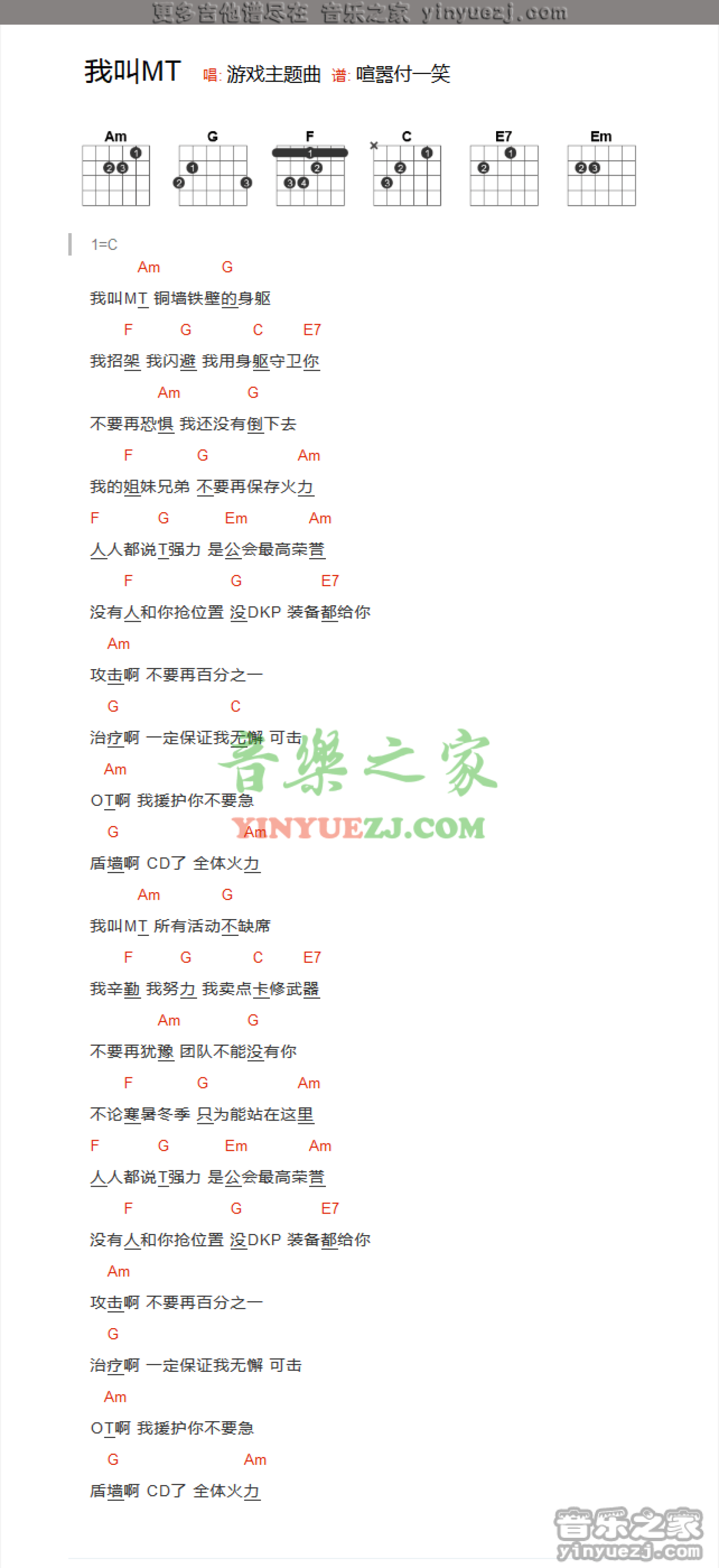 我叫mt吉他谱 - 吉他弹唱谱 - 和弦谱