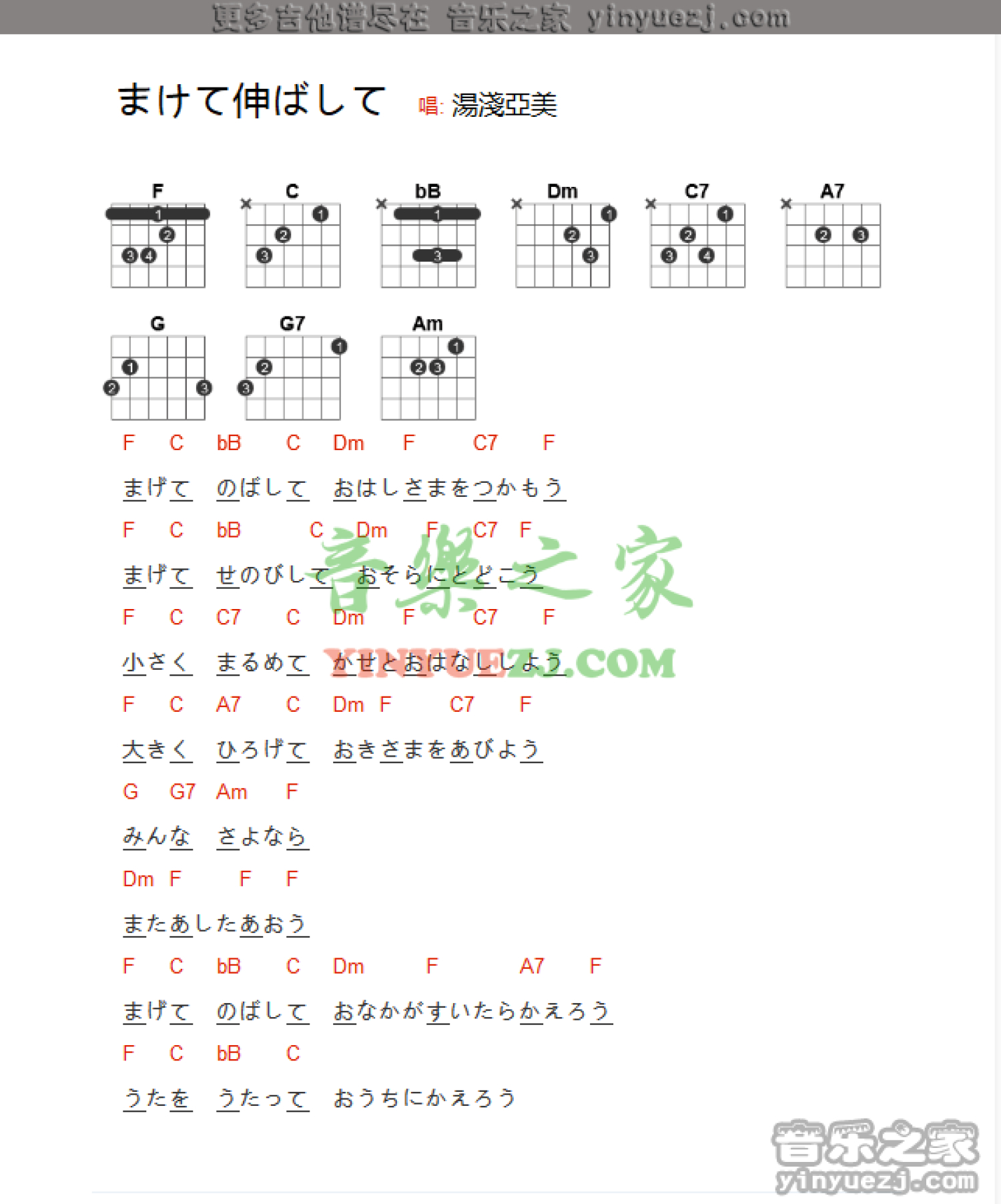 曲谱介绍: 汤浅美《まげてのばして》吉他谱_吉他弹唱谱_和弦谱