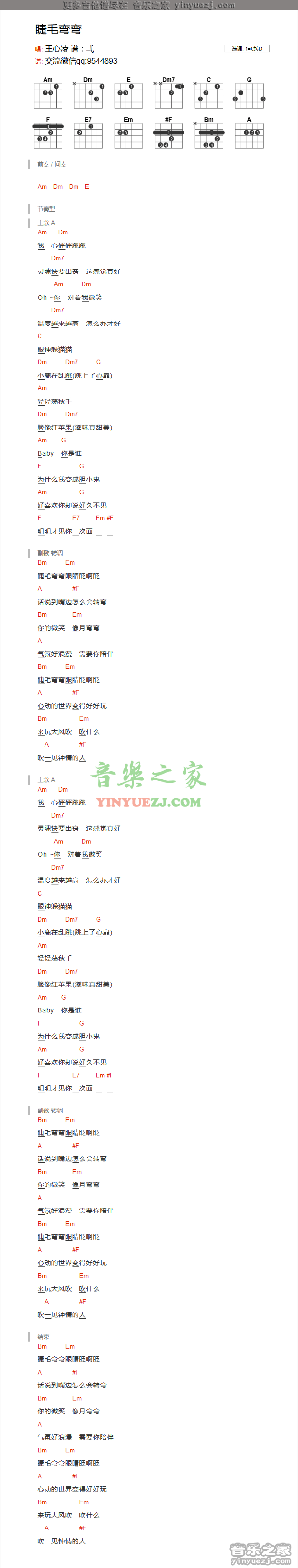 曲谱介绍: 王心凌《睫毛弯弯》吉他谱txt
