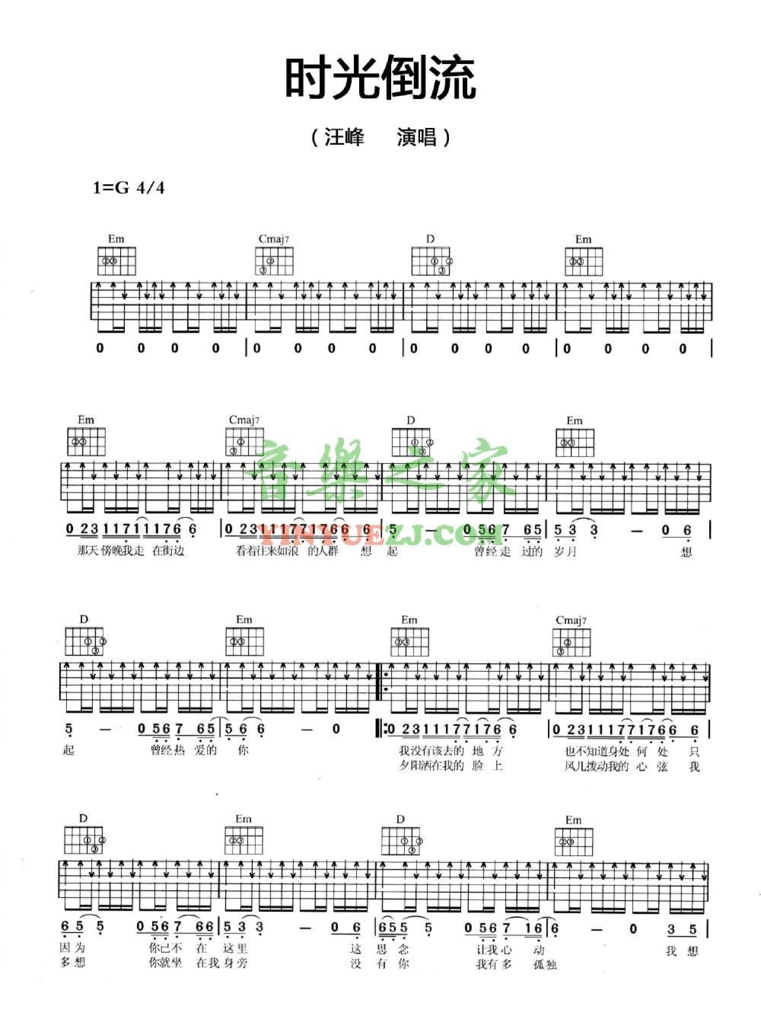 曲谱介绍: 汪峰《时光倒流》吉他谱