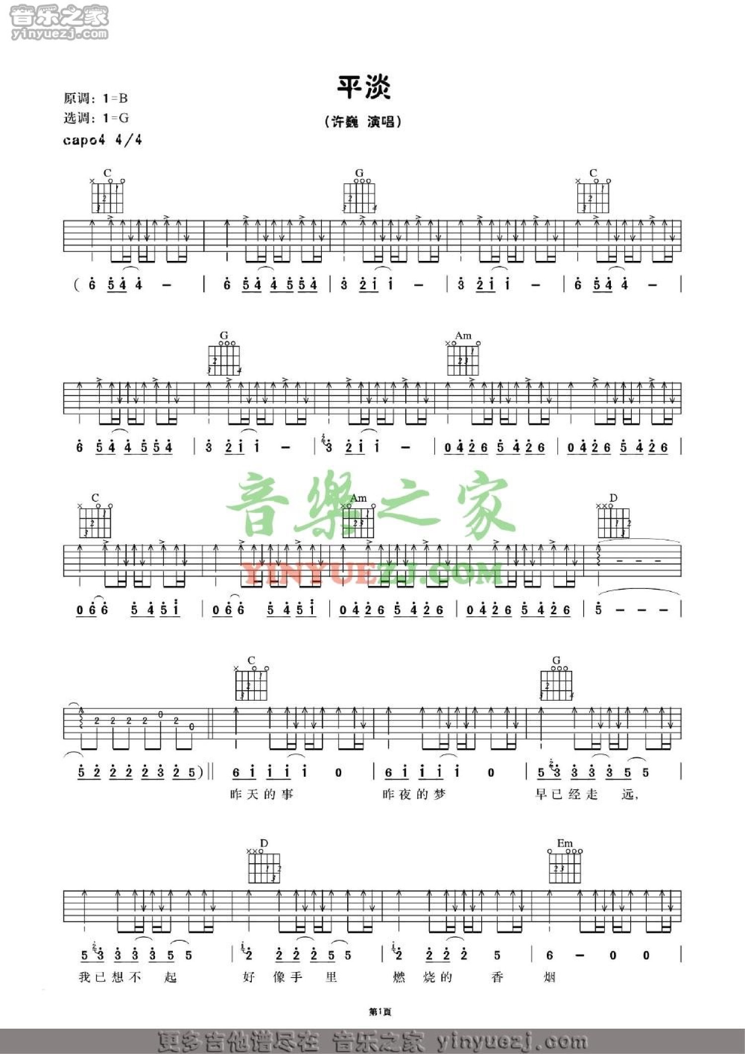 平淡吉他谱 - 许巍 - G调吉他弹唱谱